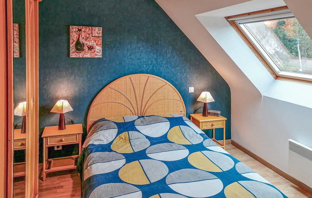 Dieses moderne Ferienhaus genießt eine erhöhte Lage nur einen Katzensprung von Pléneuf-Val-André entfernt. Neben einem Kasino wartet der große Badeort ebenfalls mit einem herrlichen Bade- und Erholungszentrum auf, in dem Sie es sich beim Blick auf die Bucht gut gehen lassen können. Das Wohnzimmer im Erdgeschoss dieses gemütlich eingerichteten Ferienobjekts öffnet sich zu einer weitläufigen Terrasse hin, und oben im offenen Dachgeschoss erwartet Sie ein weiterer Wohnbereich. In der Nähe befinden sich der Strand von Le Port Morvan, eine Golfanlage und ein Reiterhof. Entdecken Sie bei Ihren Ausflügen das kleine Zöllnerhaus am Meer, den an einem Fjord gelegenen Hafenort Port Dahouët und das Cap Fréhel mit dem Fort la Latte und einem atemberaubenden Panorama. Dieses charmante Feriendomizil ist ideal für einen gelungenen Urlaub im Departement Côtes-d’Armor. Auf der offenen Galerie steht ein Fallbett zur Verfügung.