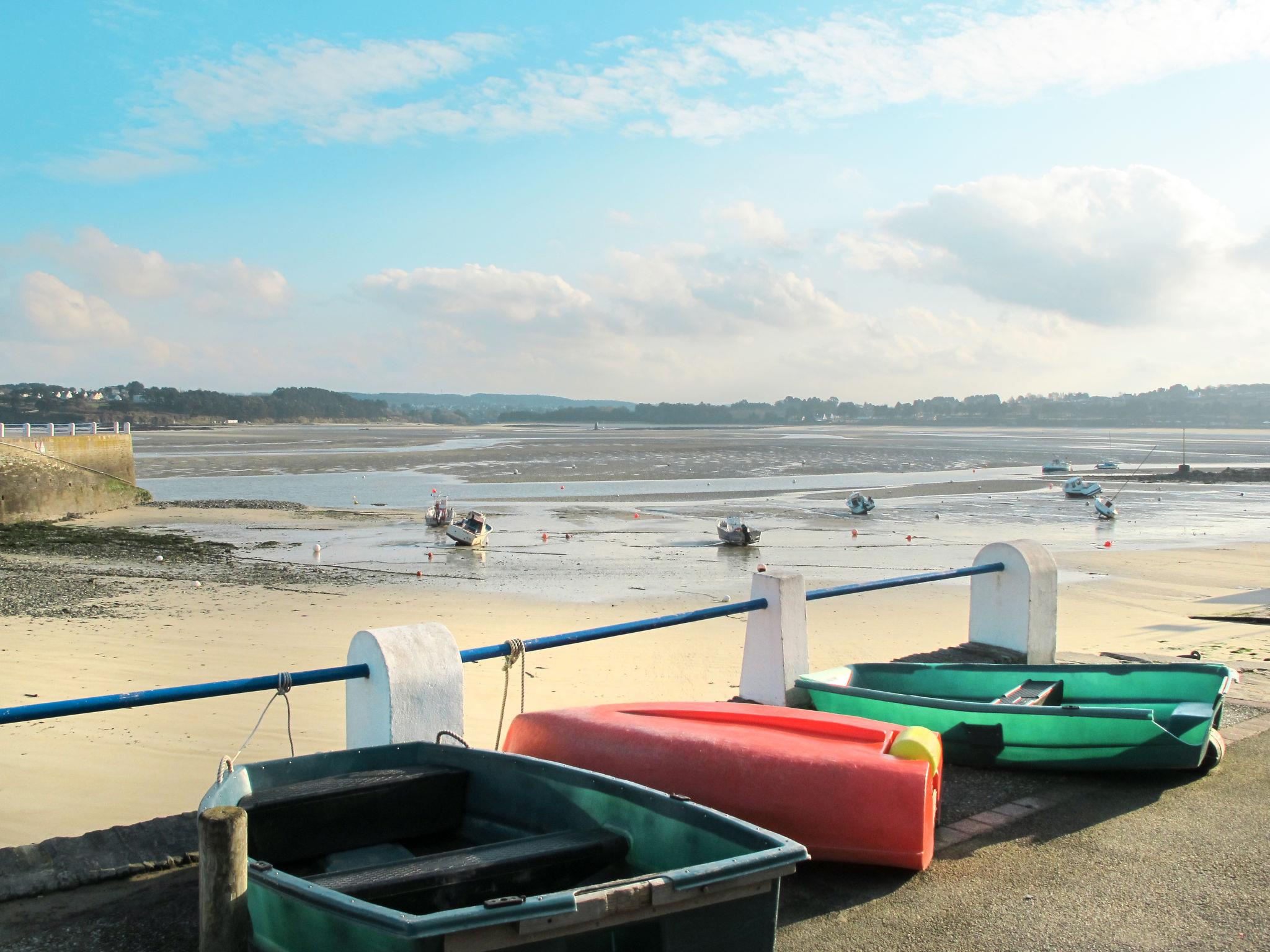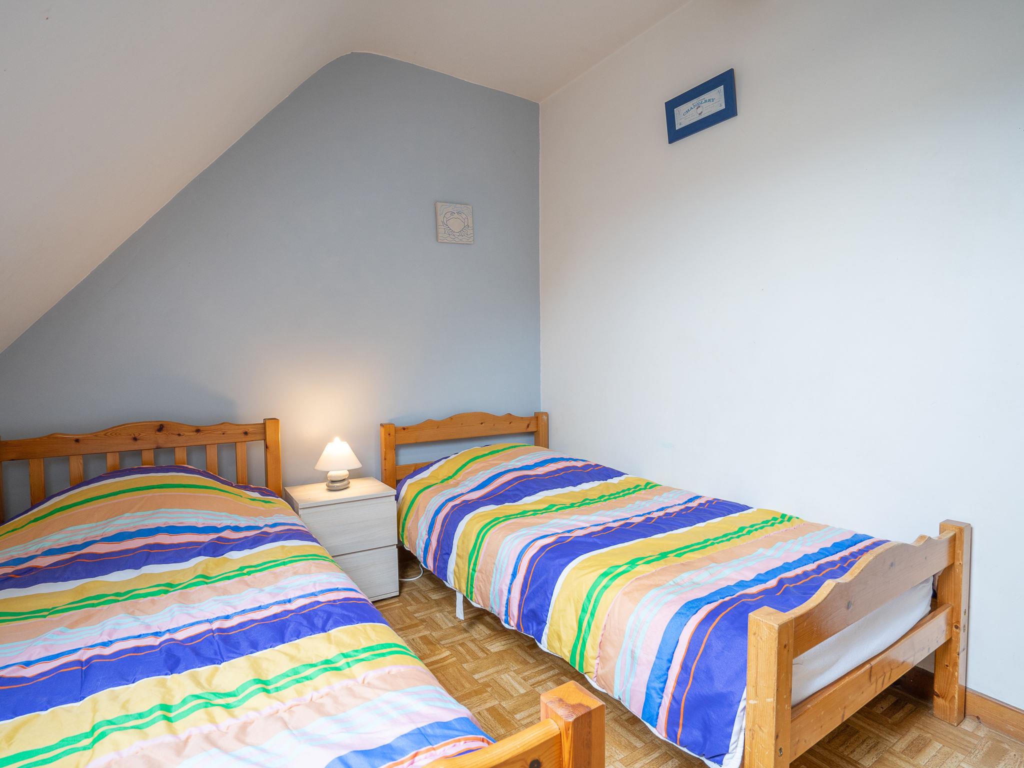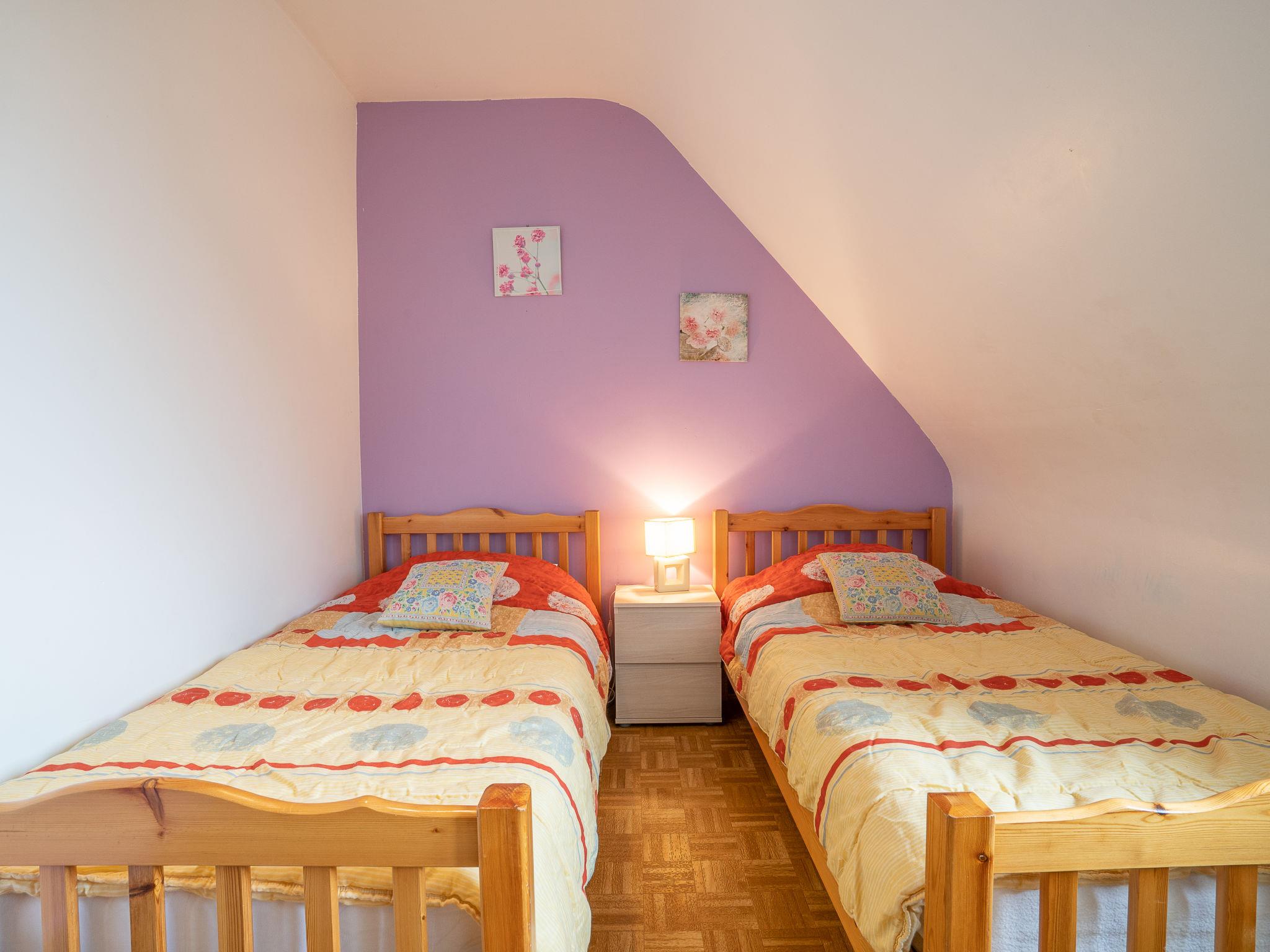 "Pors Ar Goff", 6-room semi-detached house 170 m2 on 2 levels. Simple and rustic furnishings: living/dining room with open-hearth fireplace, dining table and satellite TV. Exit to the garden. 1 room with 1 french bed (140 cm, length 180 cm), shower/WC. Open kitchen (1 hot plate, oven, dishwasher, 3 gas rings, toaster, kettle, microwave, freezer, electric coffee machine) with small dining table. Sep. WC. Electric heating. Upper floor: 3 rooms with sloping ceilings, each room with 2 beds (90 cm, length 180 cm). 1 room with sloping ceilings with 1 bed (90 cm, length 180 cm), 1 french bed (140 cm, length 180 cm). Shower, sep. WC. Electric heating. Terrace. Terrace furniture, barbecue (portable), deck chairs (4). Facilities: washing machine, dryer, children's high chair, baby cot. Internet (WiFi, free). Please note: non-smoking house. Maximum 2 pets/ dogs allowed. Smoke alarm.