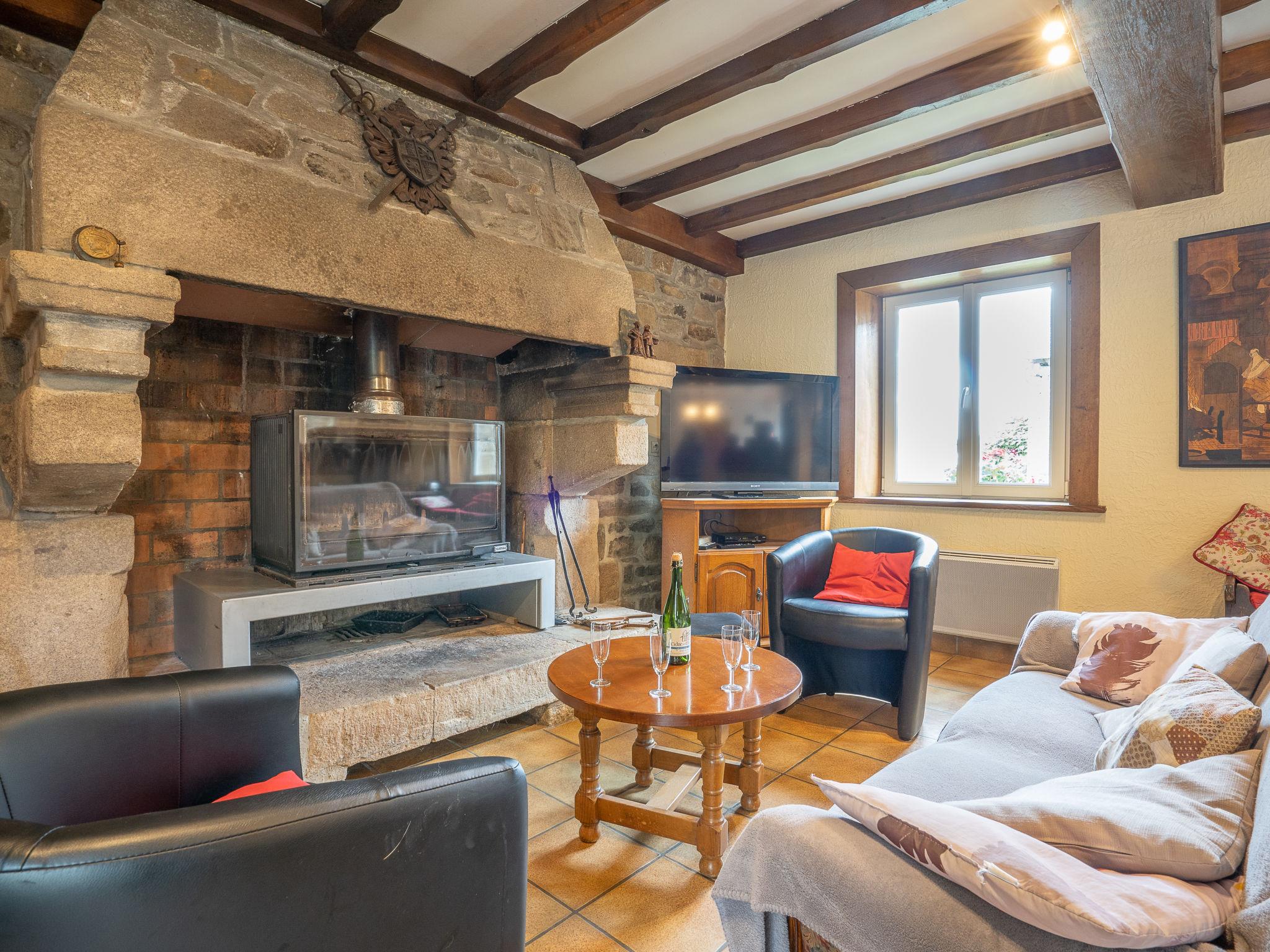 Beautiful, rustic country house "Pors Ar Goff", surrounded by trees and fields. In the hamlet Pors Ar Goff 6 km from the centre of Plestin-les-Grèves, 20 km from the centre of Lannion, 20 km from the centre of Morlaix, 8 km from the sea. Private: garden 1'000 m2 with trees, meadow, roofed, parking (for 4 cars) on the premises. Grocery 6 km, restaurant 6 km, bus stop 6 km, sandy beach "St. Efflam" 8 km.