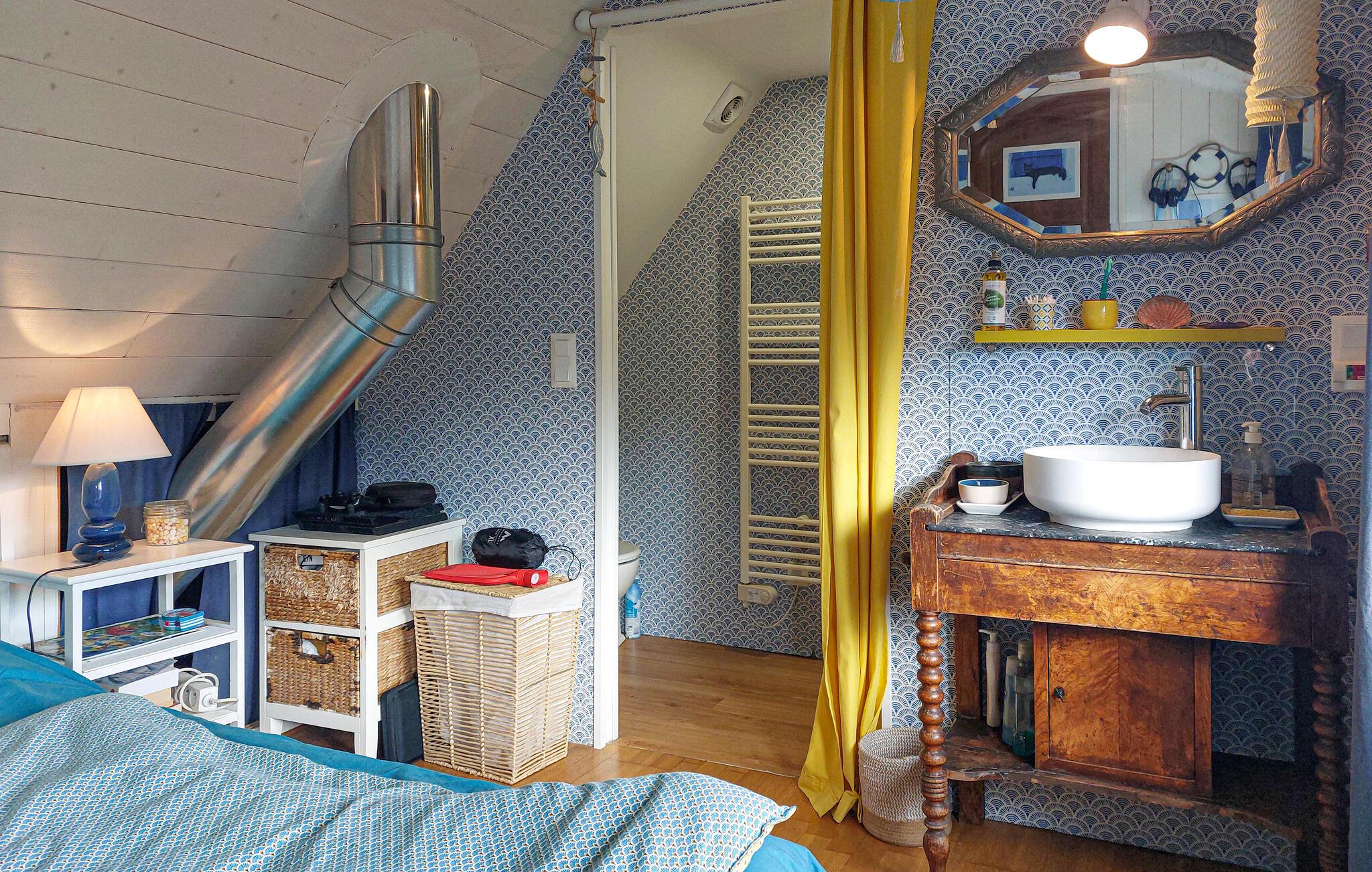 Willkommen in diesem historischen bretonischen Steinhaus, das Sie in kurzer Entfernung vom Strand empfängt. Das Haus ist wohnlich und individuell eingerichtet und ist der ideale Ort, um einen abwechslungsreichen Urlaub zu genießen. Machen Sie es sich abends in der Wohnküche mit bequemen Sesseln und Sofa so richtig gemütlich und schmieden Sie schon einmal Pläne für den nächsten Tag, während die Flammen im Kaminofen behaglich knistern.