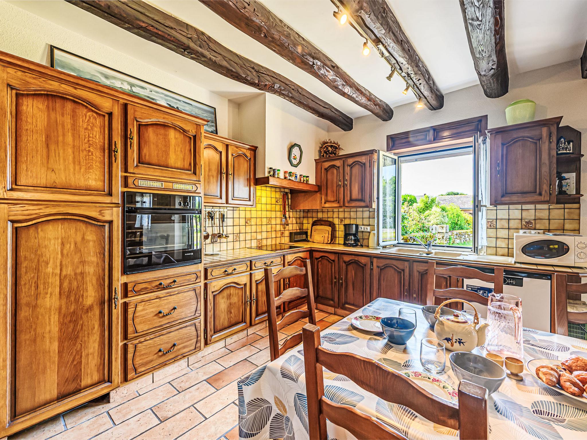 "Maison de Kerbarh", 5-room terraced house 105 m2. Comfortable furnishings: living/dining room with TV (flat screen). 1 room with 1 french bed (1 x 140 cm, length 190 cm). Kitchen (oven, 3 induction hot plates, toaster, kettle, electric coffee machine). Shower/WC. Electric heating. Upper floor: 1 room with 1 french bed (1 x 140 cm, length 190 cm). 1 room with 2 beds (90 cm, length 190 cm). 1 room with 1 x 2 bunk beds (90 cm, length 190 cm). Bath/WC. Large garden. Terrace furniture. Facilities: washing machine. Please note: non-smokers only. Maximum 1 pet/ dog allowed. Smoke alarm. Offer by a private individual according to Art. 155, IV of CGI. 56161 000036 QB