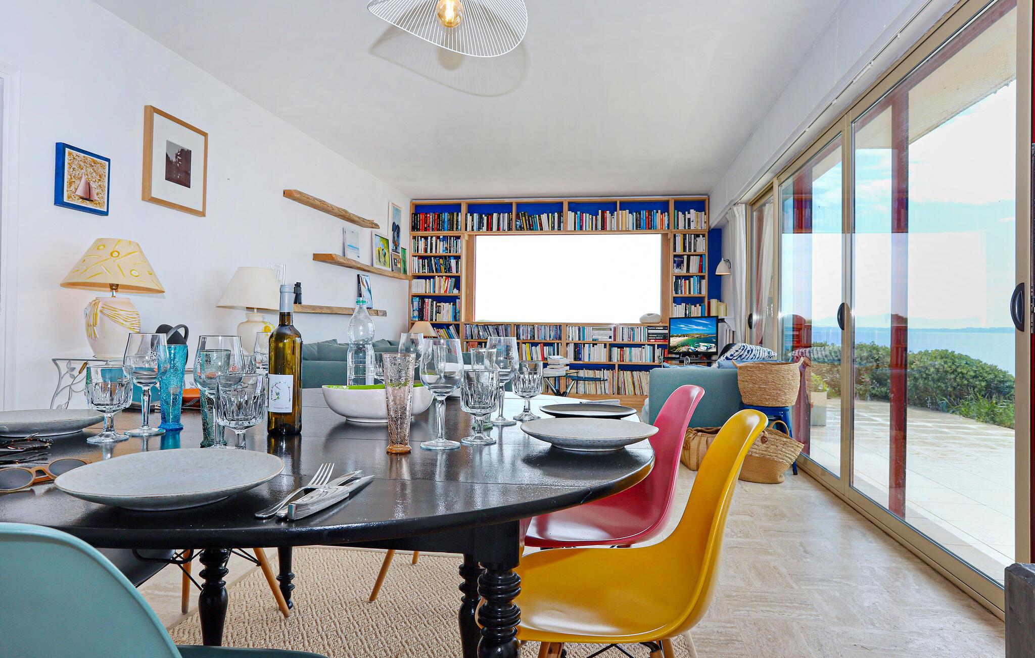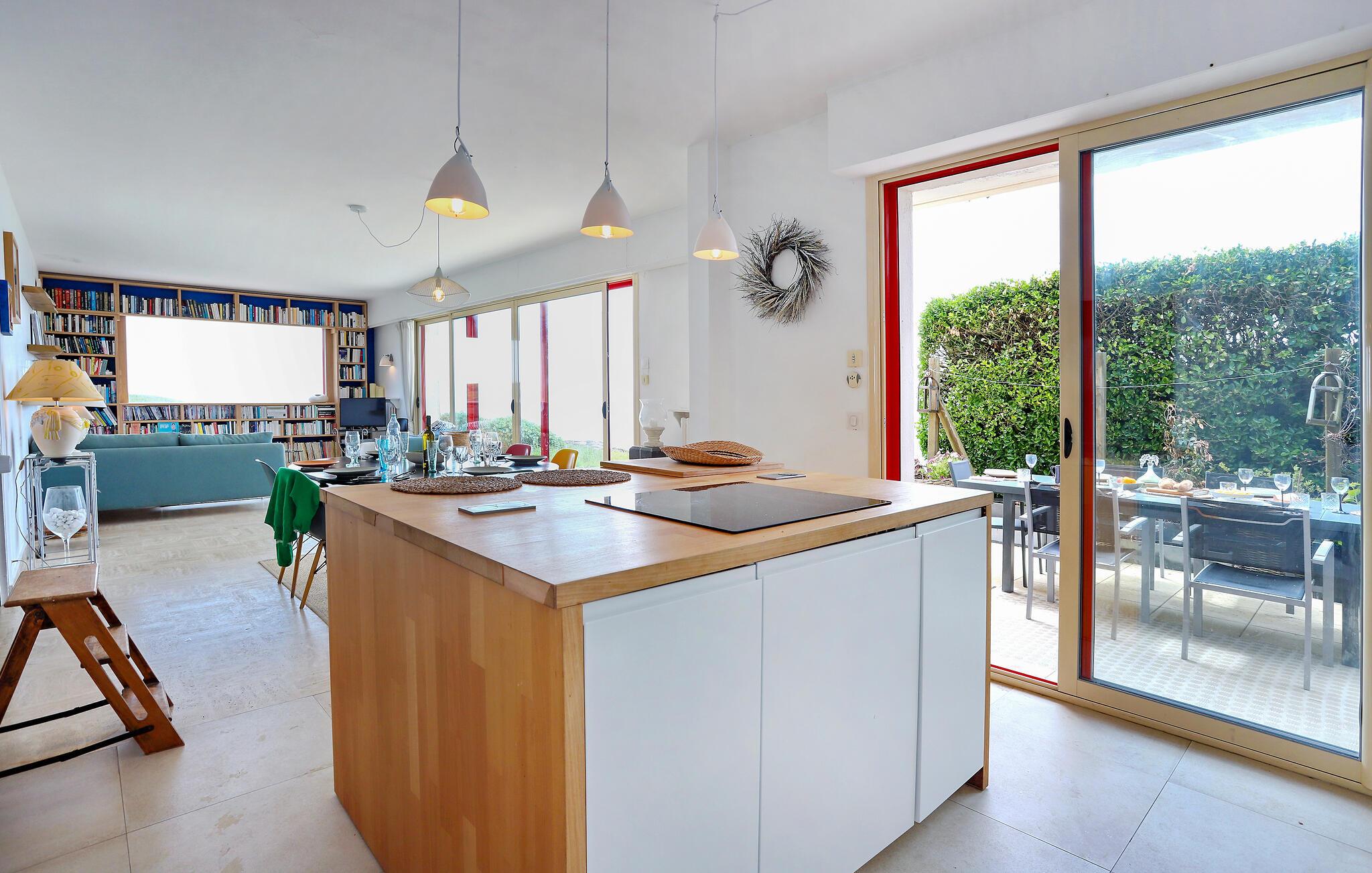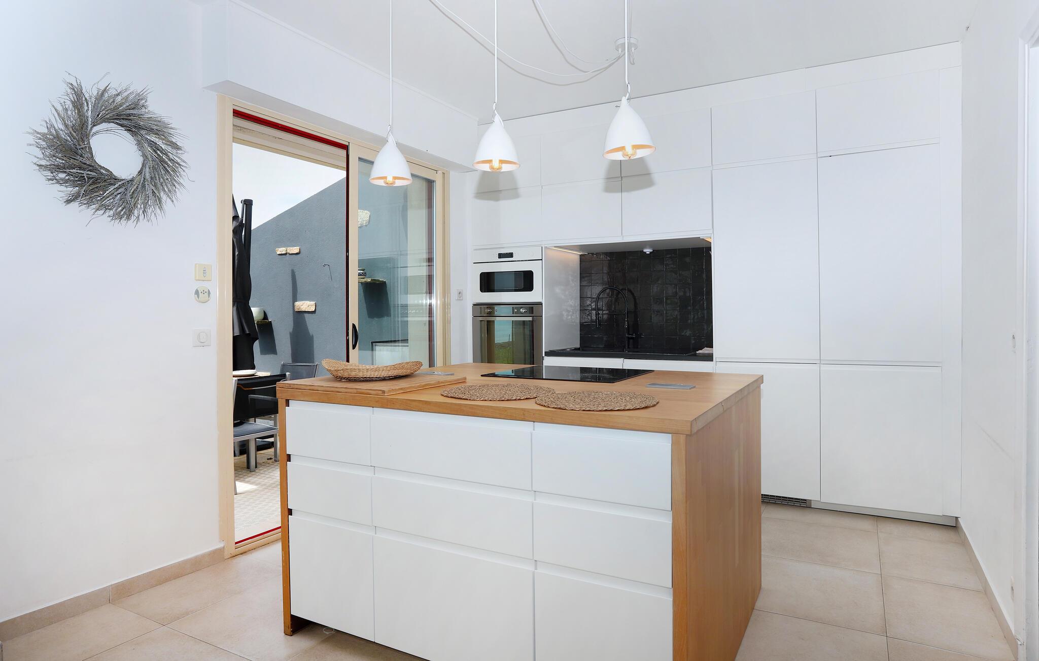 Willkommen in diesem großzügigen Urlaubsdomizil, in dem Sie von sämtlichen Zimmern aus auf das Meer blicken können. Zaubern Sie köstliche Mahlzeiten in der modernen, offenen Küche und nehmen Sie im hellen und geschmackvoll eingerichteten Wohnbereich Platz. Schmökern Sie in der hauseigenen Bibliothek und freuen Sie sich auf gemütliche Abende sowie gute Gespräche bei einem Glas Wein auf dem Sofa.