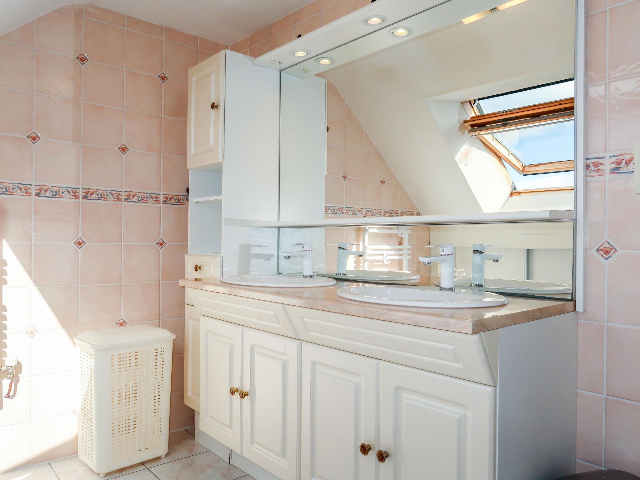 "Ty Breiz", 3-room house 90 m2 on 2 levels. Practical and cosy furnishings: living/dining room with Scandinavian wood stove, dining table, satellite TV and international TV channels. Exit to the garden. Open kitchen (1 hot plate, oven, 3 gas rings, toaster, kettle, microwave, freezer, electric coffee machine, Capsules for coffee machine (Senseo) extra). Exit to the garden. Sep. WC. Upper floor: 1 room with sloping ceilings with 1 french bed (140 cm, length 190 cm). 1 room with sloping ceilings with 2 beds (90 cm, length 190 cm). Bath/shower, sep. WC, double hand-basin. Gas heating. Parquet floors. Terrace furniture, barbecue (portable), deck chairs (2). Facilities: washing machine, hair dryer. Please note: non-smoking house. Maximum 1 small pet/ dog allowed. Smoke alarm.