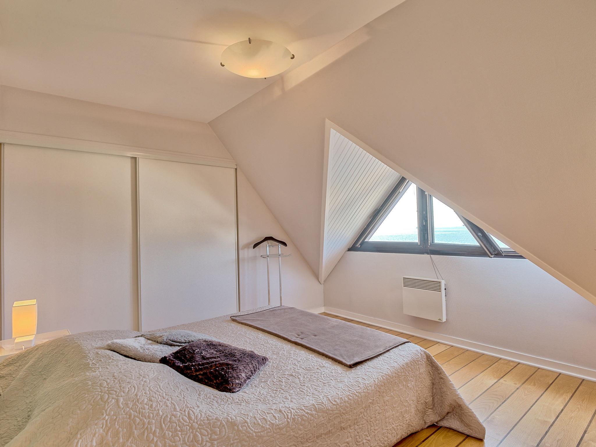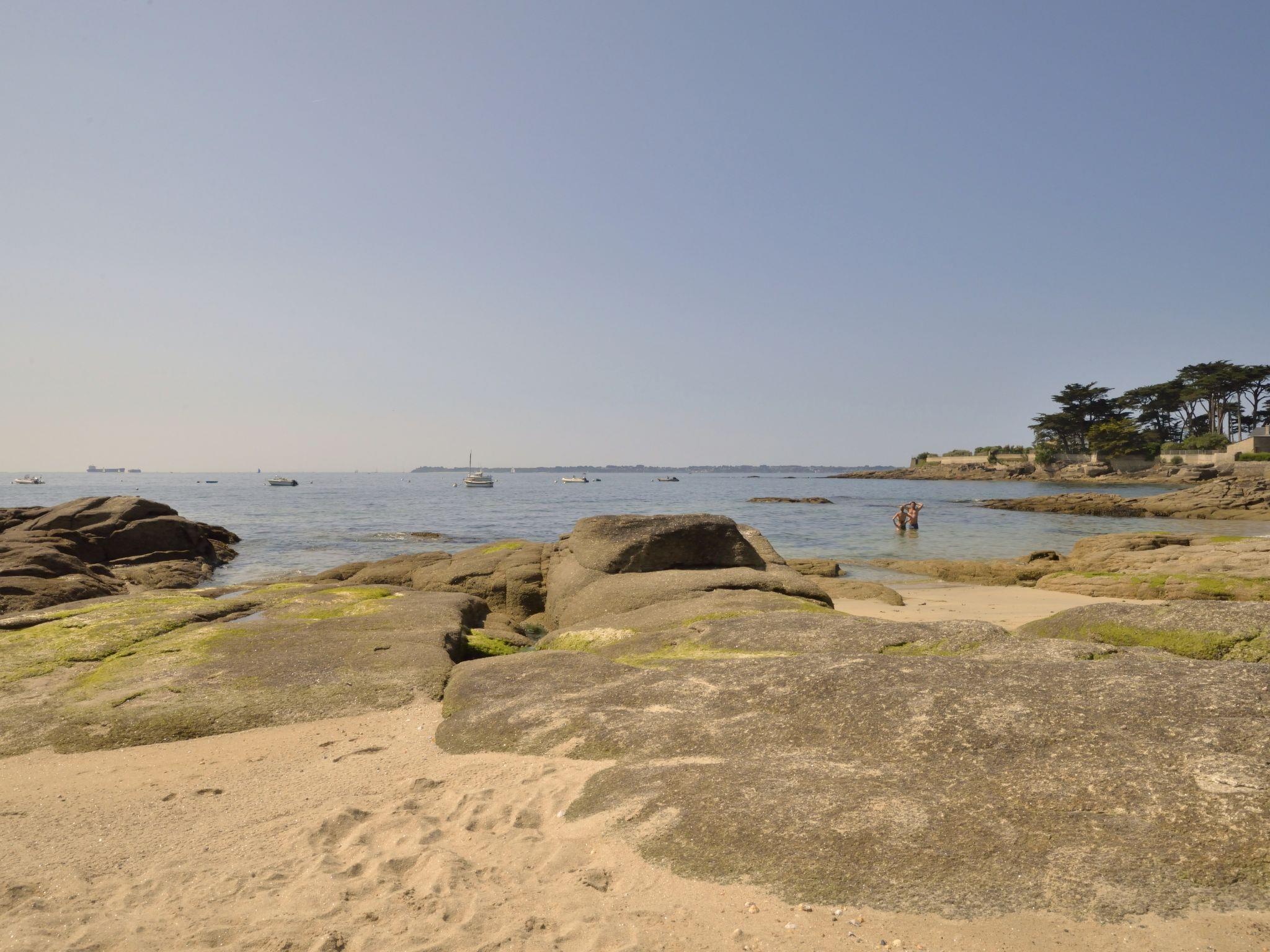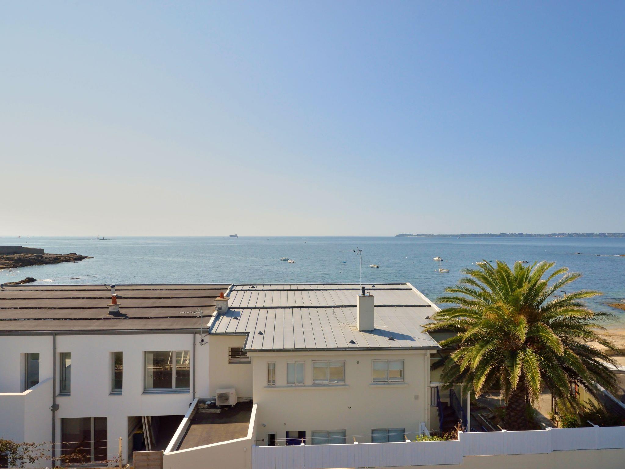 "Belle Vue Mer et Groix", 3-room apartment 70 m2 on 2 levels on 2nd floor. Bright, renovated in 2025: living/dining room with dining nook, TV, international TV channels and hi-fi system. Exit to the balcony. 1 room with sloping ceilings with 1 french bed (160 cm, length 200 cm). 1 room with sloping ceilings with 2 beds (90 cm, length 190 cm). Kitchen (oven, dishwasher, 4 ceramic glass hob hotplates, toaster, kettle, microwave, freezer, electric coffee machine). Shower/WC, sep. WC. Electric heating. Balcony 12 m2. Balcony furniture. View of the sea. Facilities: washing machine, iron, children's high chair, baby cot. Internet (WiFi, free). Please note: smoke alarm.