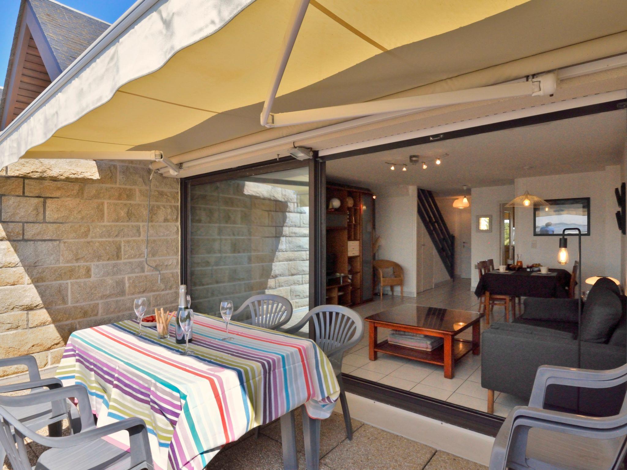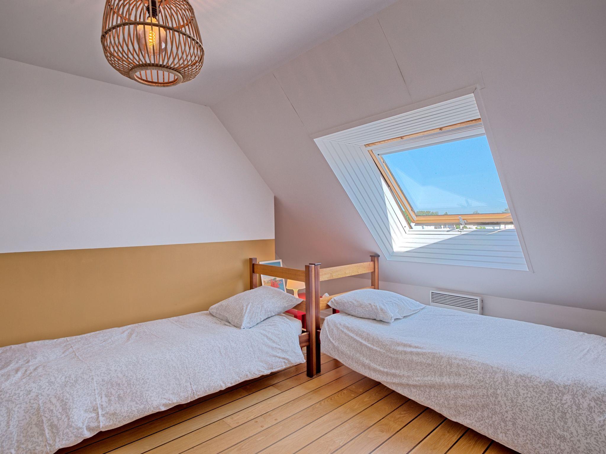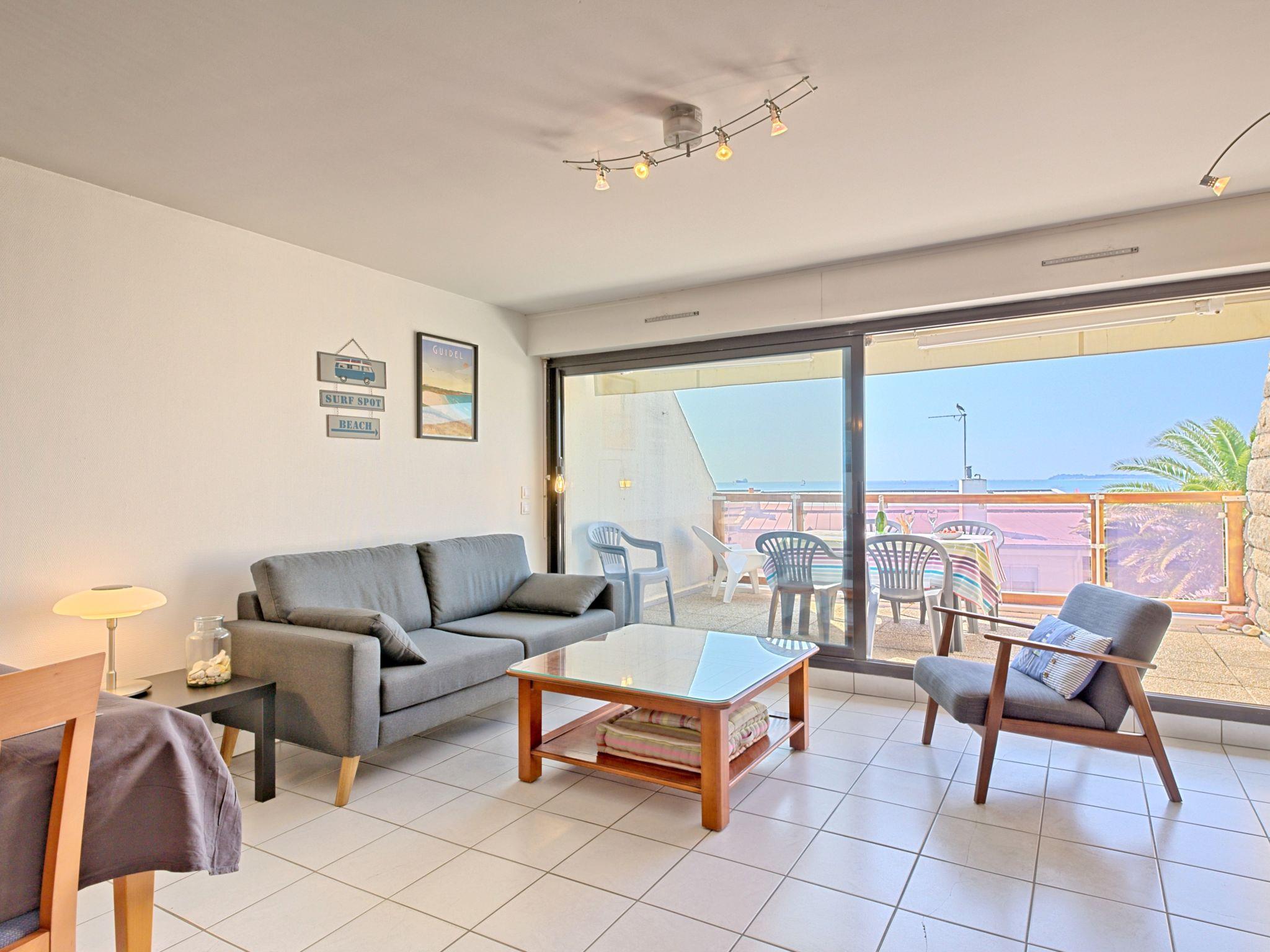 "Belle Vue Mer et Groix", 3-room apartment 70 m2 on 2 levels on 2nd floor. Bright, renovated in 2025: living/dining room with dining nook, TV, international TV channels and hi-fi system. Exit to the balcony. 1 room with sloping ceilings with 1 french bed (160 cm, length 200 cm). 1 room with sloping ceilings with 2 beds (90 cm, length 190 cm). Kitchen (oven, dishwasher, 4 ceramic glass hob hotplates, toaster, kettle, microwave, freezer, electric coffee machine). Shower/WC, sep. WC. Electric heating. Balcony 12 m2. Balcony furniture. View of the sea. Facilities: washing machine, iron, children's high chair, baby cot. Internet (WiFi, free). Please note: smoke alarm.
