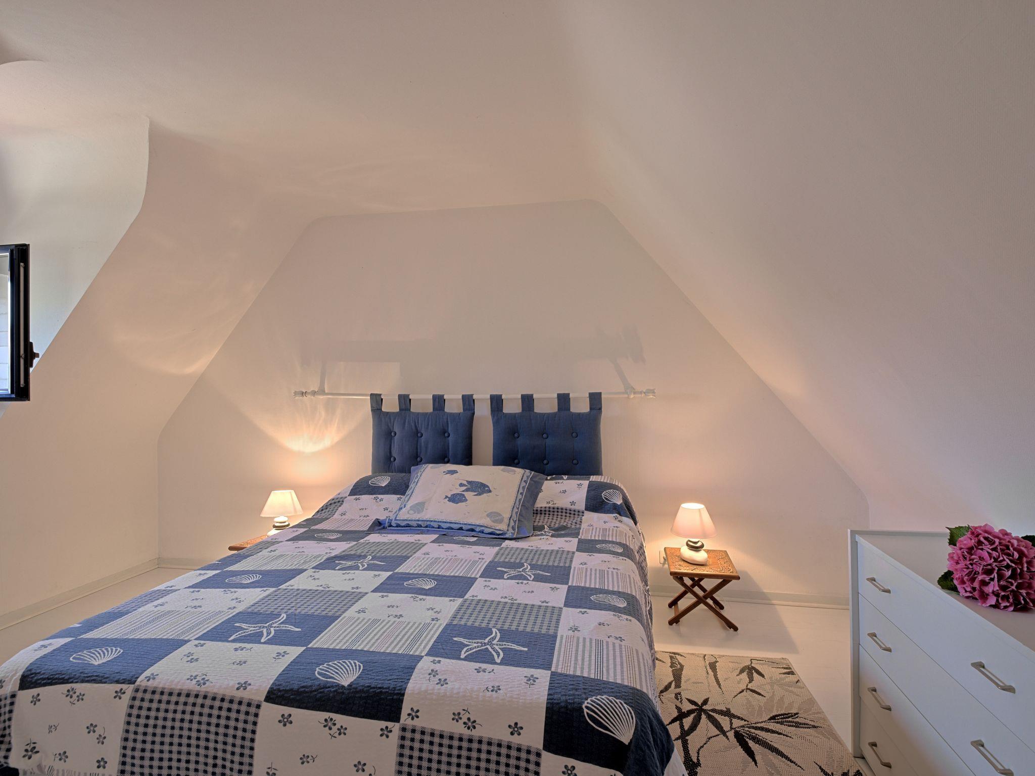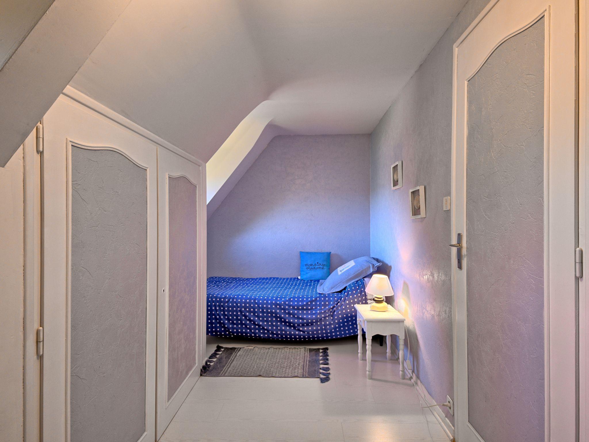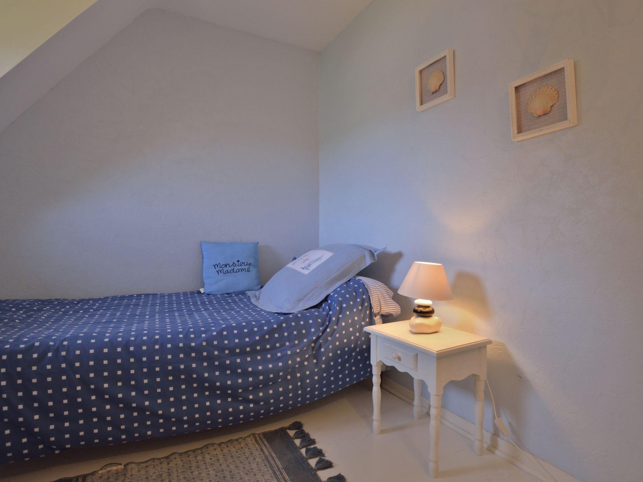 3-room house 100 m2 on 2 levels. Beautiful and cosy furnishings: living/dining room 75 m2 with TV (flat screen). Exit to the terrace. Open kitchen (oven, dishwasher, 4 ceramic glass hob hotplates, toaster, kettle, microwave, electric coffee machine) with dining table. Shower/WC. Upper floor: 1 room with sloping ceilings with 1 french bed (1 x 160 cm, length 190 cm). 1 room with sloping ceilings with 2 beds (90 cm, length 190 cm). Electric heating. Terrace 20 m2, south facing position. Terrace furniture, barbecue, deck chairs (3). Facilities: washing machine, iron, baby cot for up to 2 year olds, hair dryer. Internet (WiFi, free). Please note: non-smoking house. Smoke alarm.
