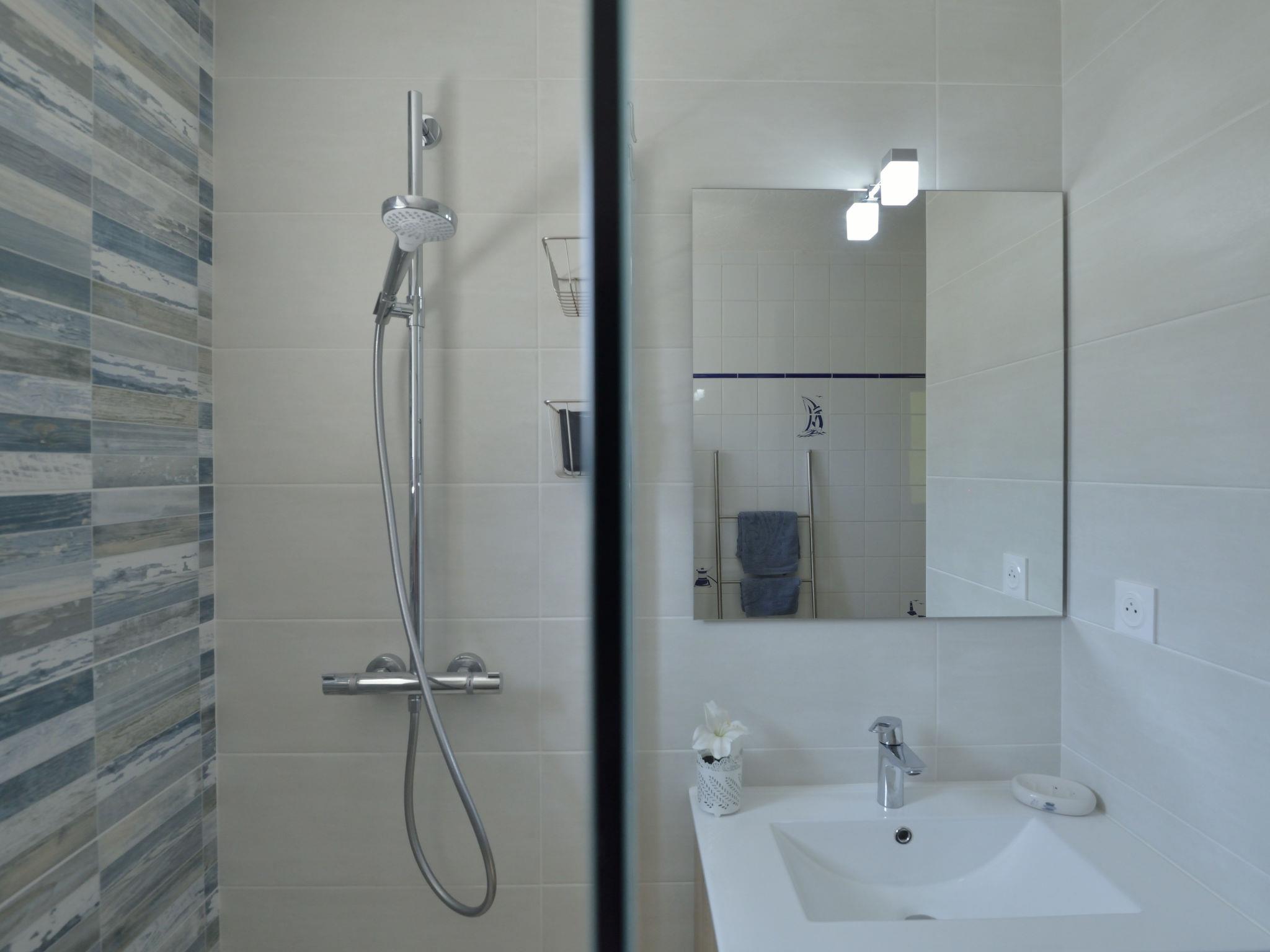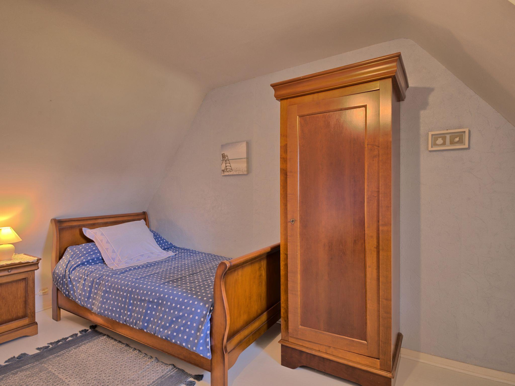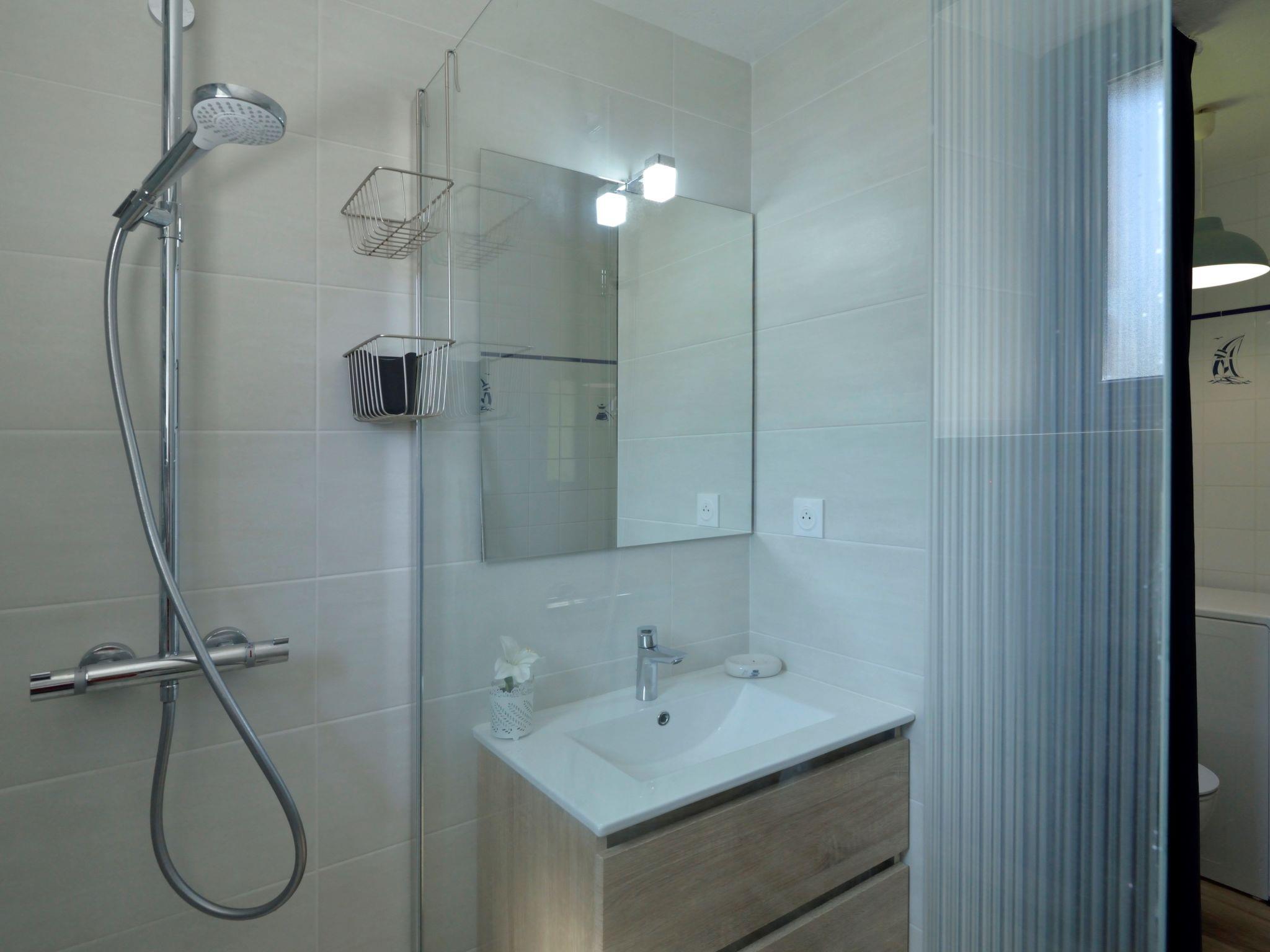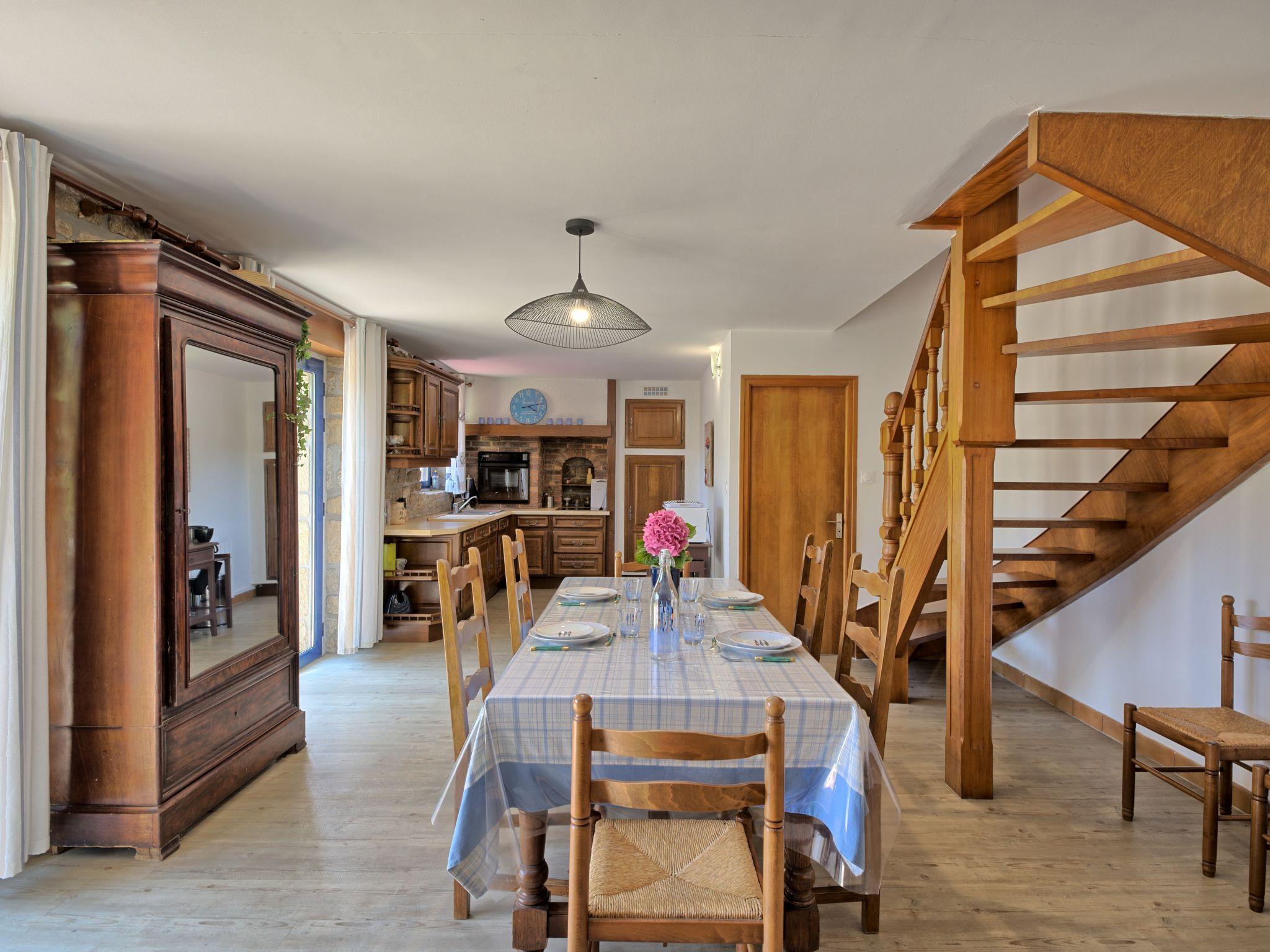 3-room house 100 m2 on 2 levels. Beautiful and cosy furnishings: living/dining room 75 m2 with TV (flat screen). Exit to the terrace. Open kitchen (oven, dishwasher, 4 ceramic glass hob hotplates, toaster, kettle, microwave, electric coffee machine) with dining table. Shower/WC. Upper floor: 1 room with sloping ceilings with 1 french bed (1 x 160 cm, length 190 cm). 1 room with sloping ceilings with 2 beds (90 cm, length 190 cm). Electric heating. Terrace 20 m2, south facing position. Terrace furniture, barbecue, deck chairs (3). Facilities: washing machine, iron, baby cot for up to 2 year olds, hair dryer. Internet (WiFi, free). Please note: non-smoking house. Smoke alarm.