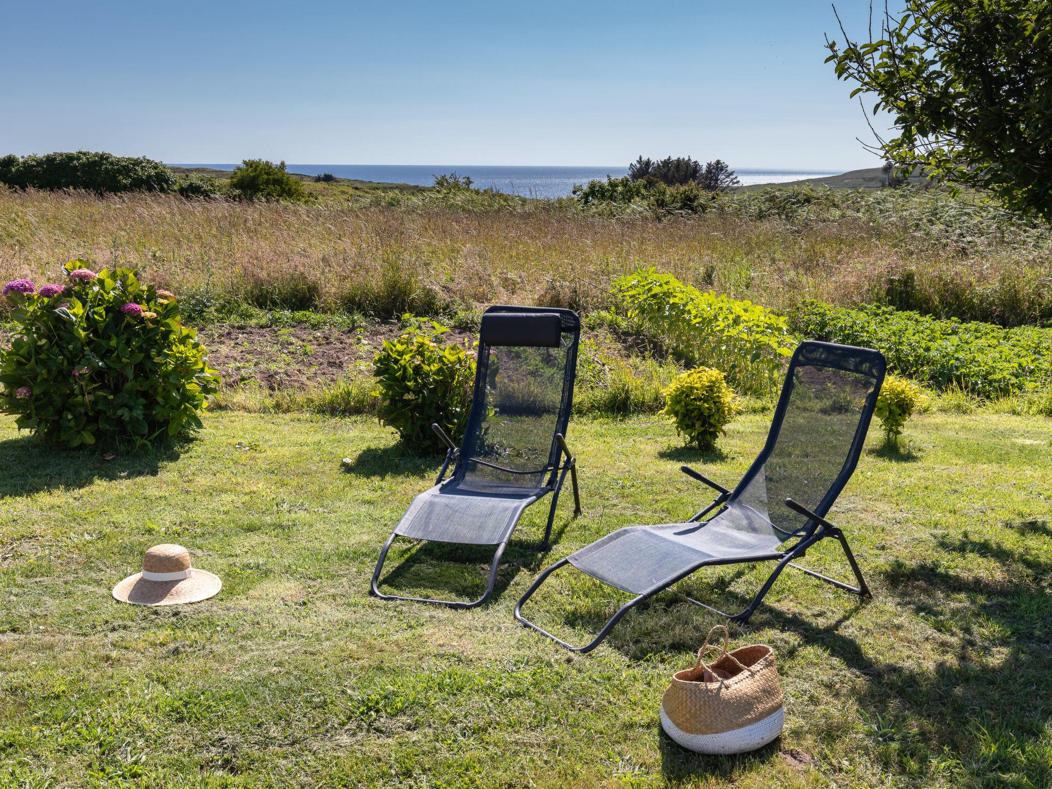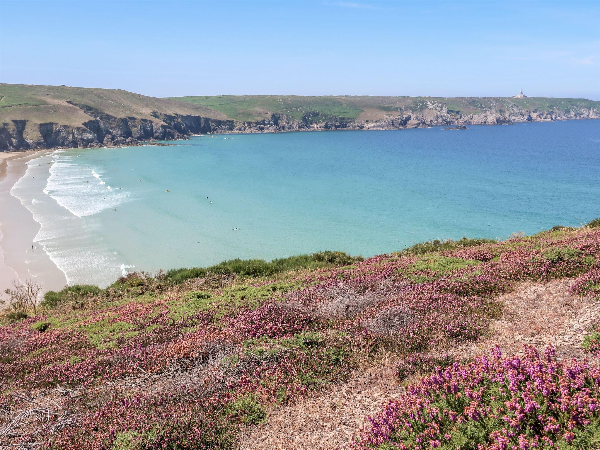 Kerlédec 3 km from Plogoff: Cosy single-family house "Les Hortensias", surrounded by meadows. In the hamlet Kerlédec 3 km from the centre of Plogoff, 10 km from the centre of Audierne, 60 km from the centre of Quimper, 700 m from the sea, 1.8 km from the beach. Private: garden 2'500 m2 (not fenced) with wildlife garden, parking at the house. Shop 3 km, supermarket 6 km, bus stop 3 km, sandy beach "Baie des Trépassés" 1.8 km. Marina 10 km, surf school 1.8 km. Nearby attractions: Pointe du Raz 2.8 km. Hiking paths: GR34 1 km.