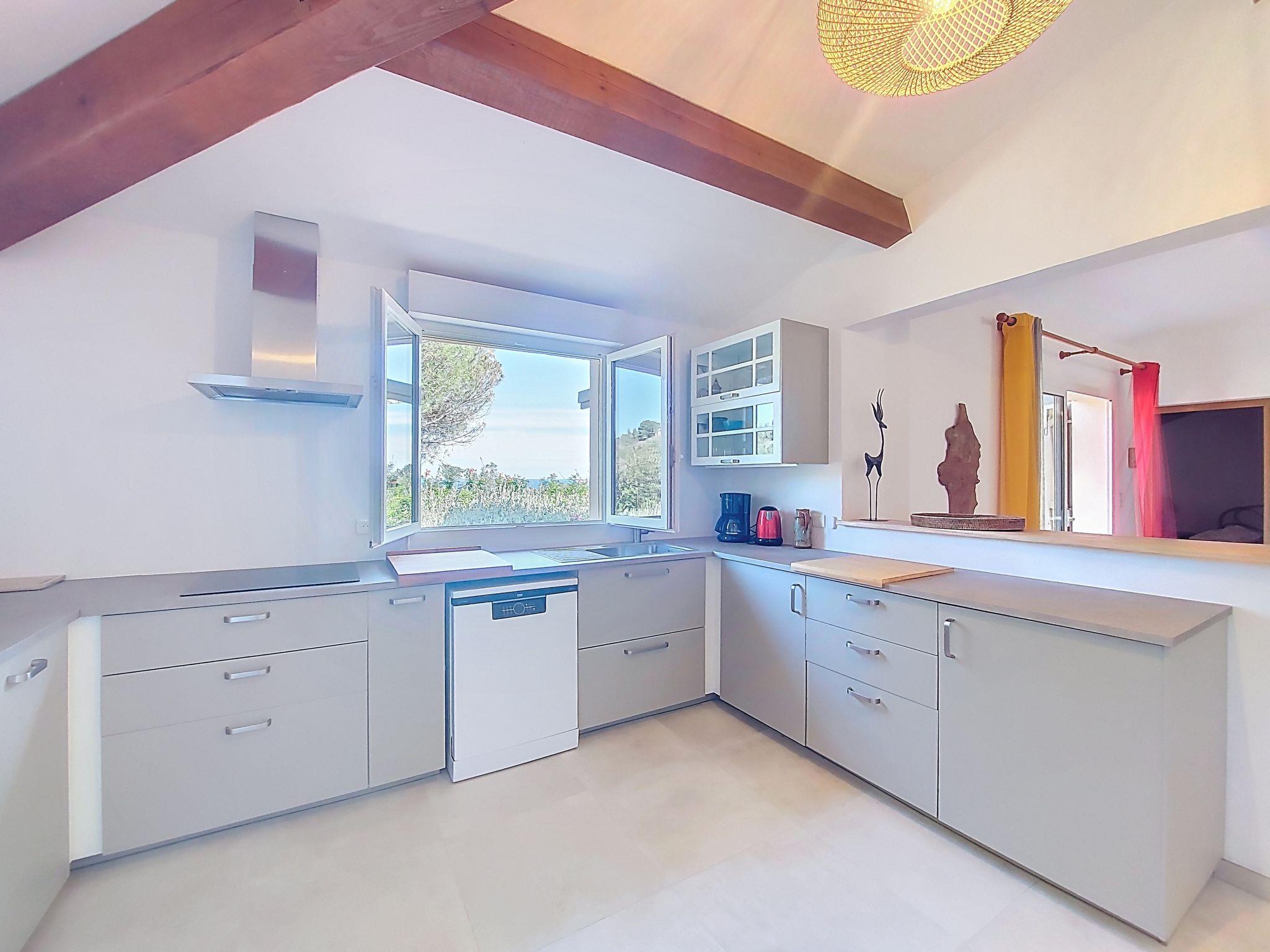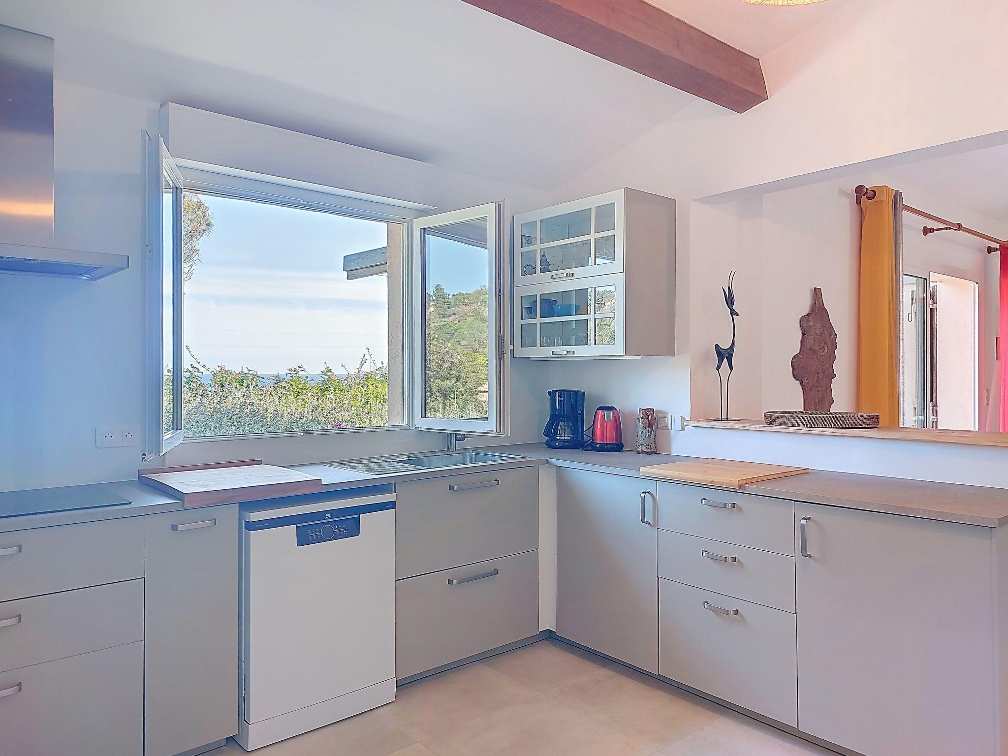 "La Girelle", 4-room house 90 m2, south-east facing position. Living/dining room with panoramic window with TV (flat screen). Exit to the terrace. 2 rooms, each room with 1 french bed (140 cm, length 190 cm), bath/WC and air conditioning. 1 children's room with 1 bed (90 cm, length 190 cm), 1 x 2 bunk beds (90 cm, length 190 cm), shower/WC and air conditioning. Kitchen (dishwasher, 4 induction hot plates, kettle, electric coffee machine, combination microwave). Sep. WC. Electric heating, air-conditioning. Terrace 50 m2, south-east facing position. Terrace furniture. Very beautiful view of the sea. Facilities: washing machine. Internet (WiFi, free). Please note: non-smokers only. Maximum 1 pet/ dog allowed. Smoke alarm. Offer by a private individual according to Art. 155, IV of CGI. 2A2470010525B