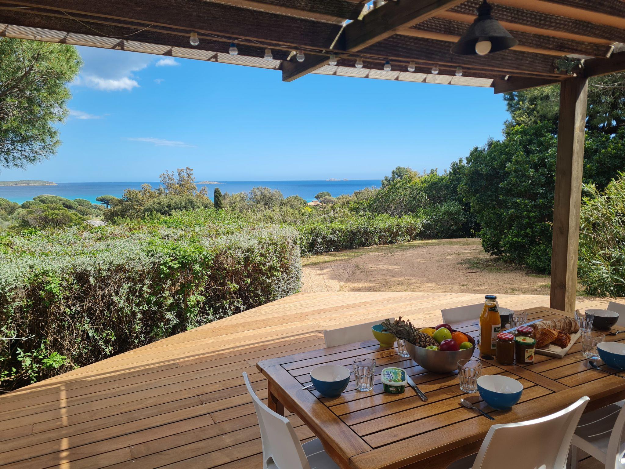 Single-family house. In the resort 10 km from the centre of Porto-Vecchio, on top of a hill, 500 m from the sea, 500 m from the beach, road to cross. Private: property 1'400 m2 (fenced), parking (for 2 cars) on the premises. Supermarket 6 km, shopping centre 11 km, restaurant 500 m, bus stop 6.5 km, sandy beach "Plage de Palombaggia" 500 m. Sports harbour 9 km. Nearby attractions: Centre ville de Porto-Vecchio 10 km, Plage de Santa Giulia 8 km, Bonifacio 26 km. Well-known lakes can easily be reached: Lac de l'Ospédale 20 km. Hiking paths: Aiguilles de Bavella 48 km. Please note: car recommended.