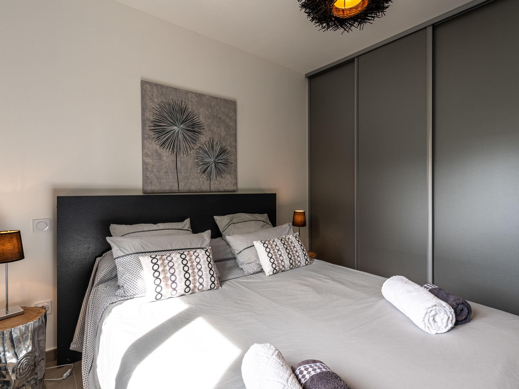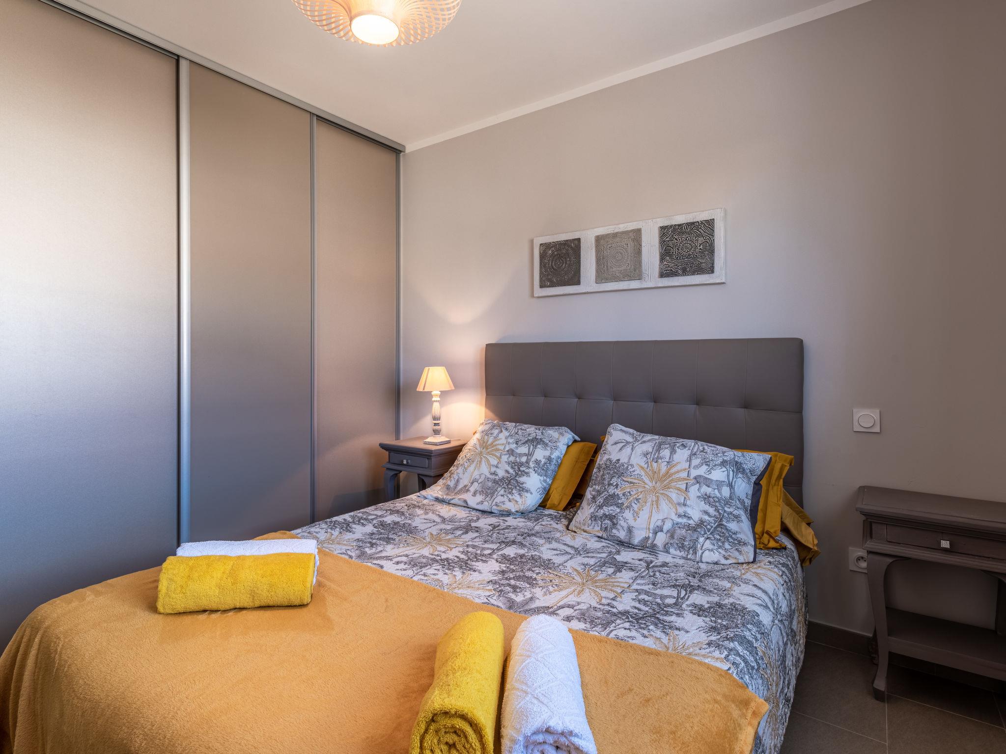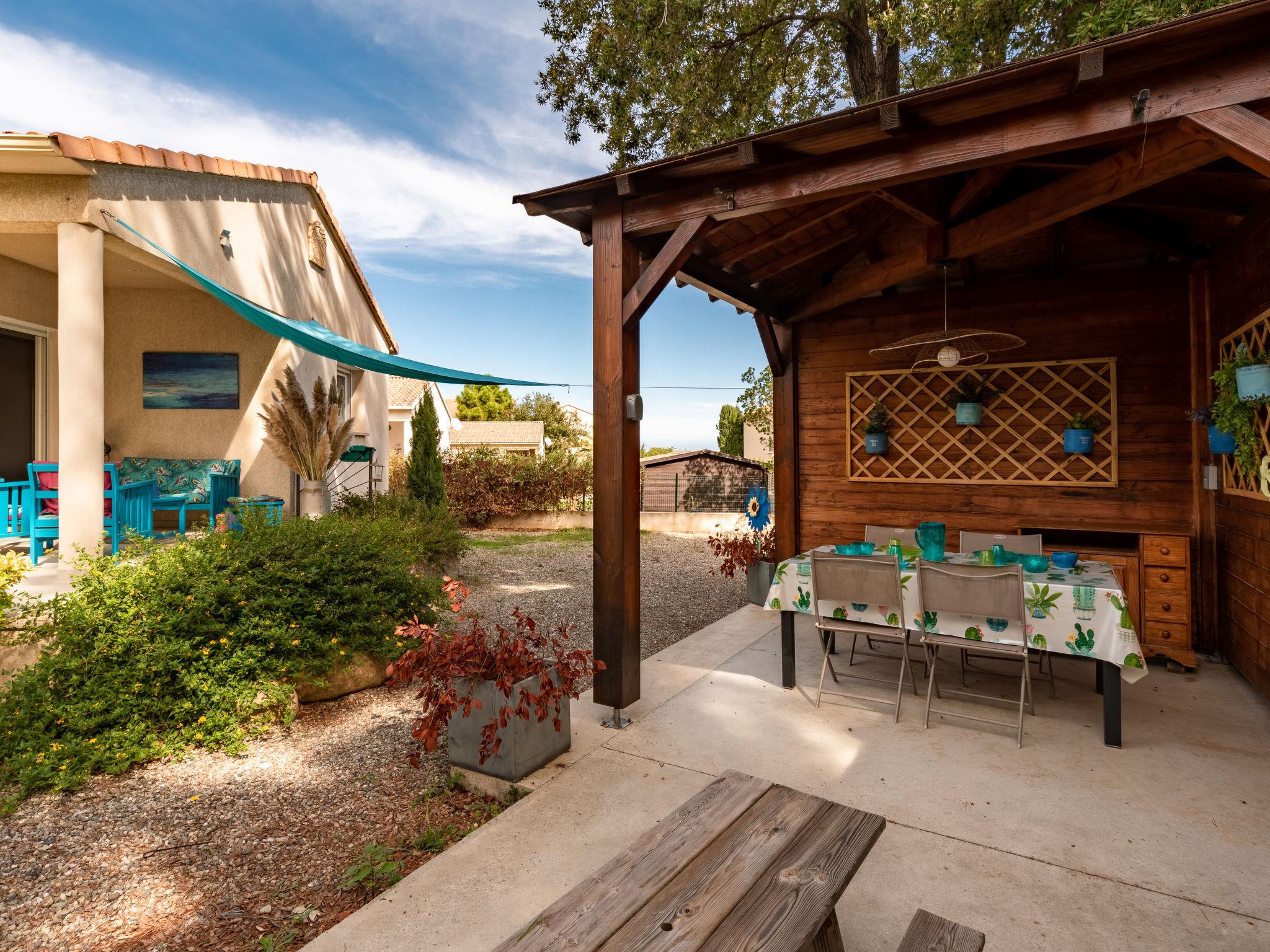 "Defendini", 4-room house 82 m2. Bright, comfortable and beautiful furnishings: living/dining room with dining table and satellite TV. Exit to the terrace. 2 rooms, each room with 1 french bed. 1 room with 2 beds. Open kitchen (oven, dishwasher, 3 ceramic glass hob hotplates, toaster, kettle, microwave, freezer, electric coffee machine). Shower/WC, sep. WC. Electric heating, air-conditioning. Terrace roofed terrace partly roofed, porch. Terrace furniture, barbecue, deck chairs (4). Facilities: washing machine, iron, children's high chair, baby cot for up to 2 year olds. Internet (WiFi, free). Parking (fenced 2 cars). Please note: non-smoking house.