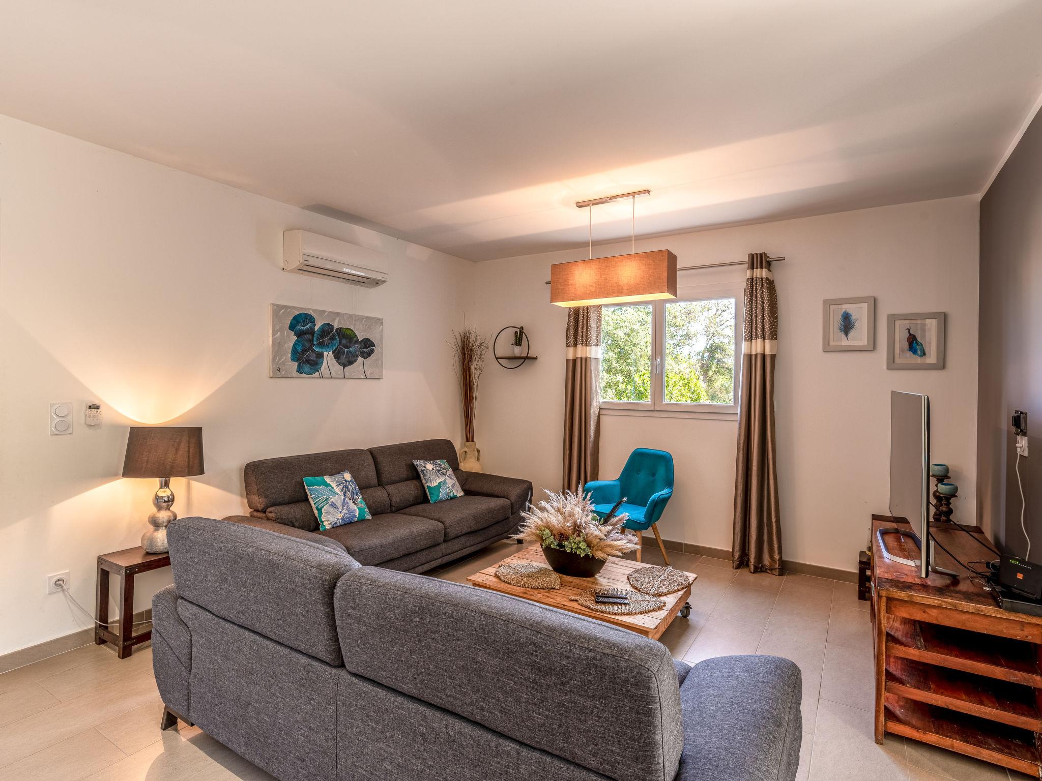 Residence "Villa Marie-Jo". 1 km from the centre of Prunete, 6 km from the centre of Moriani-Plage, 45 km from the centre of Bastia, 350 m from the sea, in the countryside. For shared use: swimming pool (15 x 5 m, seasonal availability: 15.May. - 30.Sep.). Tennis. Private: well-kept garden 600 m2 (fenced) with lawn. Outdoor shower, parking on the premises. Supermarket 1.2 km, restaurant 350 m, bus stop 1.6 km, sandy beach 350 m. Please note: car recommended.