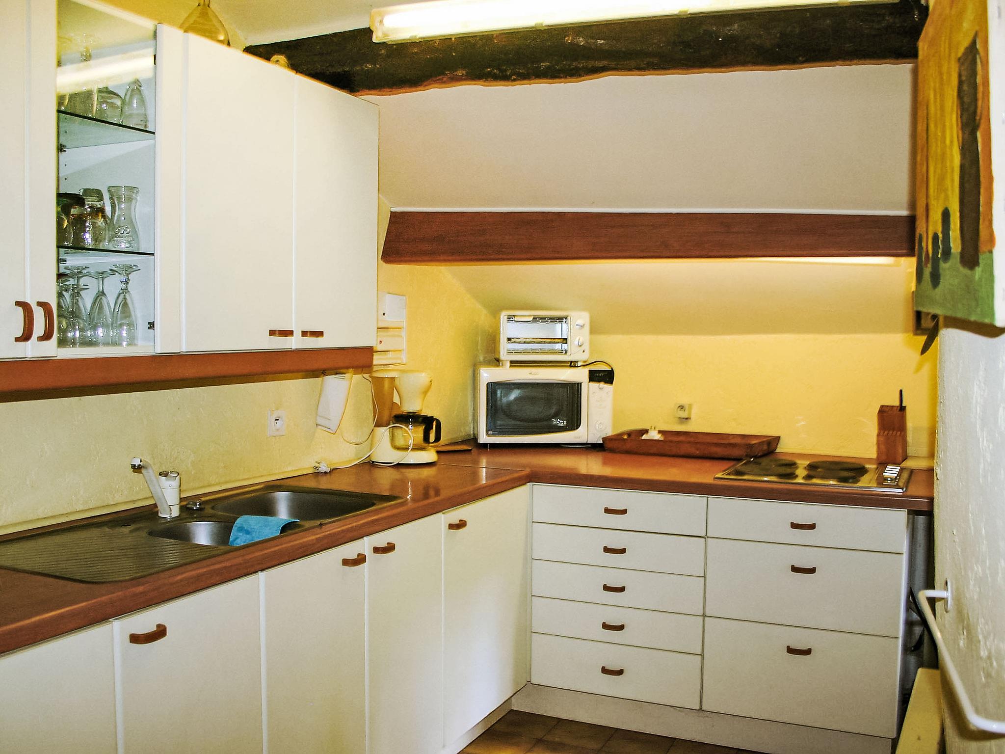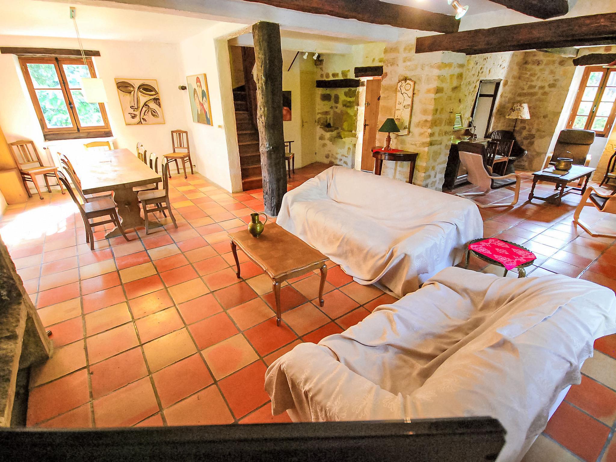 "Ensemble de 3 maisons Lavit", 8-room house 230 m2 on 3 levels. Practical and rustic furnishings: living/dining room with open-hearth fireplace and TV (flat screen). Exit to the garden. Kitchen (dishwasher, 4 ceramic glass hob hotplates, toaster, kettle, microwave, electric coffee machine). On the lower ground floor: large living/dining room with open-hearth fireplace. Exit to the terrace. 1 room with 2 beds (90 cm, length 190 cm), shower. 1 room with sloping ceilings, ceiling height 80 - 220 cm with rooflight with 1 french bed (140 cm, length 190 cm). Gallery. 1 open room with 1 french bed (140 cm, length 190 cm), shower/WC and TV. 1 room with 1 french bed (140 cm, length 190 cm). Open kitchen (oven, dishwasher, 4 ceramic glass hob hotplates, toaster, kettle, microwave, electric coffee machine). Shower/WC, 2 sep. WC's. Upper floor: 1 room with 2 beds (90 cm, length 190 cm). 1 room with 1 french bed (160 cm, length 200 cm). 1 room with 2 beds (90 cm, length 190 cm). Bathroom, shower, sep. WC. Facilities: washing machine, iron. Internet (WiFi, free). Please note: non-smoking house. Maximum 1 pet/ dog allowed. Smoke alarm. Instead of an enclosed bedroom, some sleeping areas are located in an open-plan area (gallery, alcove, etc.). Route de la Vallée 2345