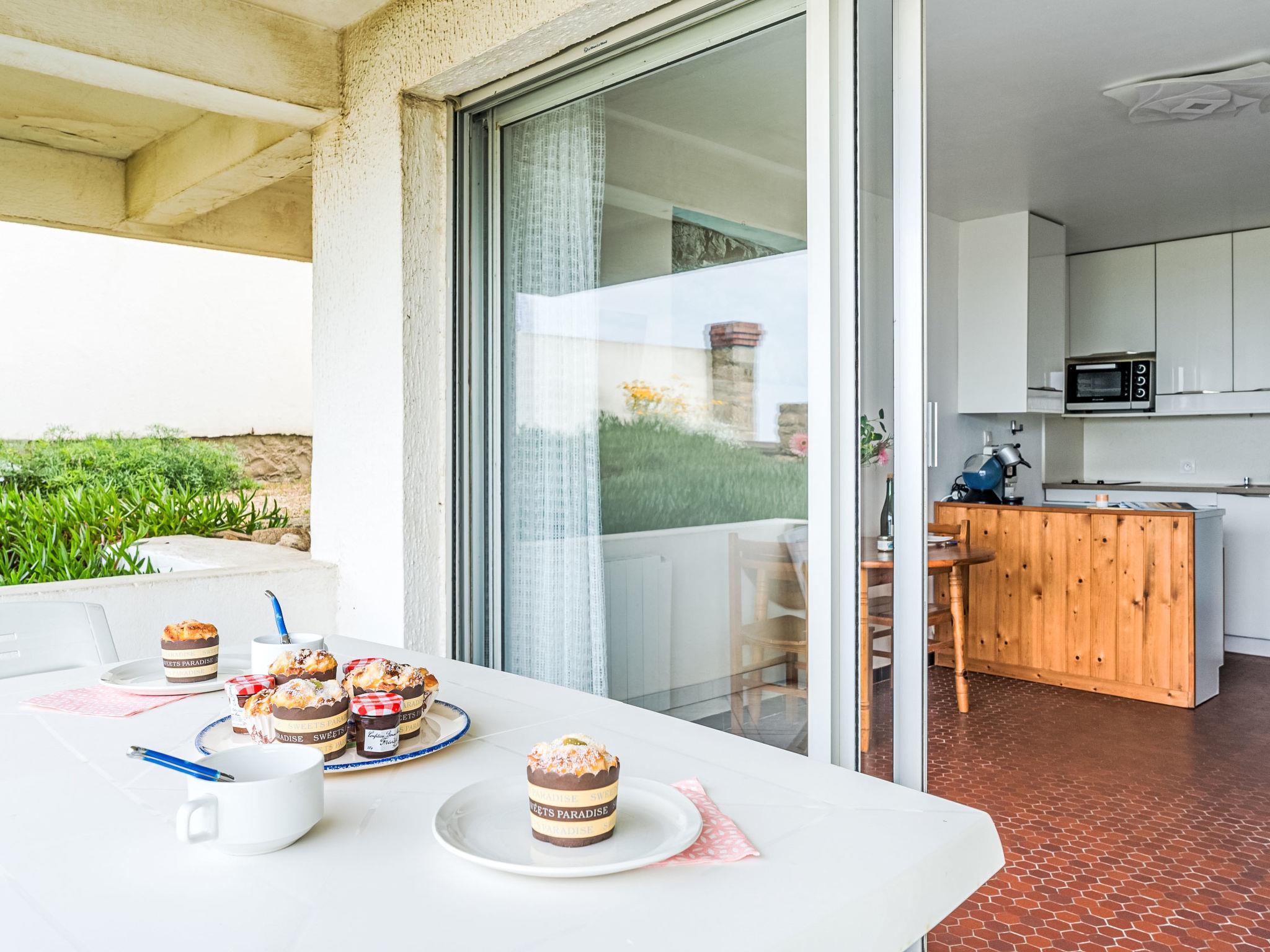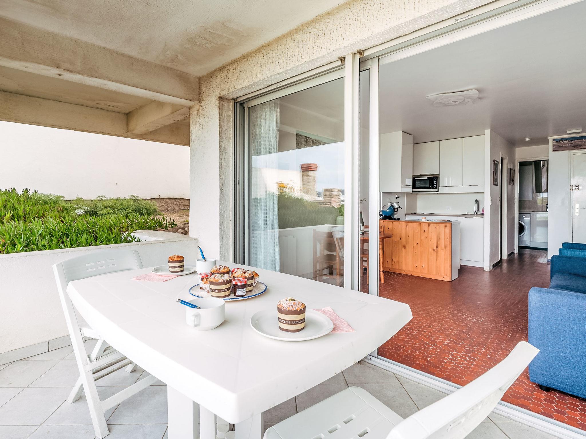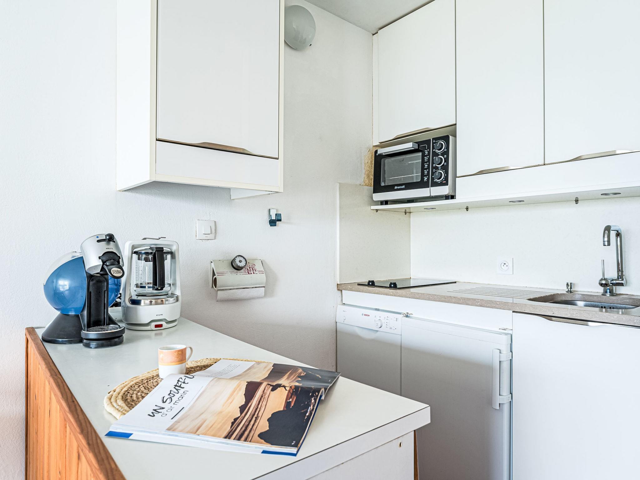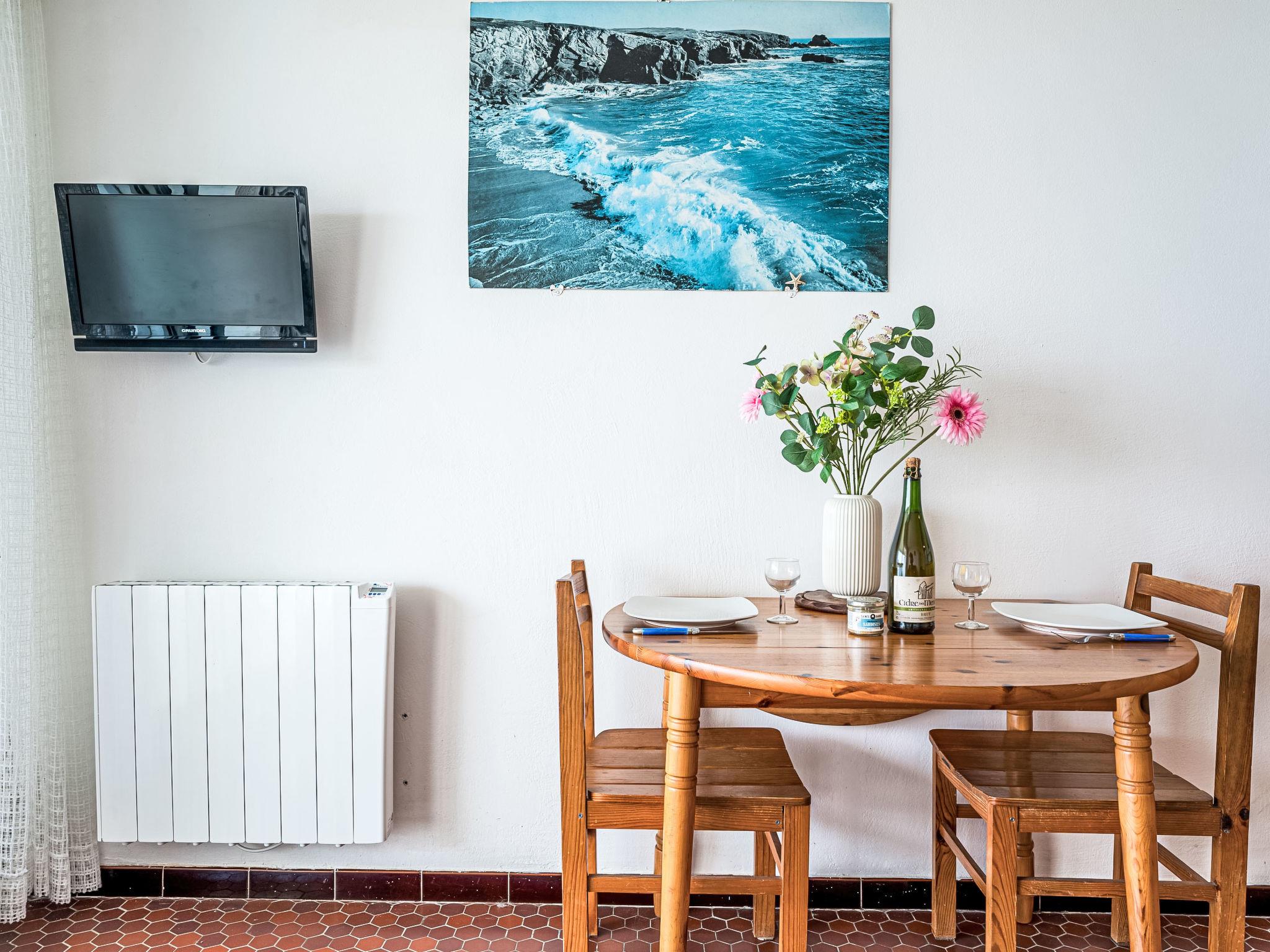 "Penduick", 1-room studio 20 m2, on the ground floor. Comfortable furnishings: living/dining room with 1 double sofabed (140 cm, length 190 cm), TV (flat screen). Exit to the terrace. Kitchen (2 hot plates, mini-oven, dishwasher, toaster, electric coffee machine). Shower/WC. Electric heating. Terrace 10 m2. View of the sea. Facilities: washing machine. Internet (WiFi, extra). Parking space n 11. Please note: maximum 1 small pet/ dog allowed. Smoke alarm. Offer by a private individual according to Art. 155, IV of CGI. 56186 000342 2W