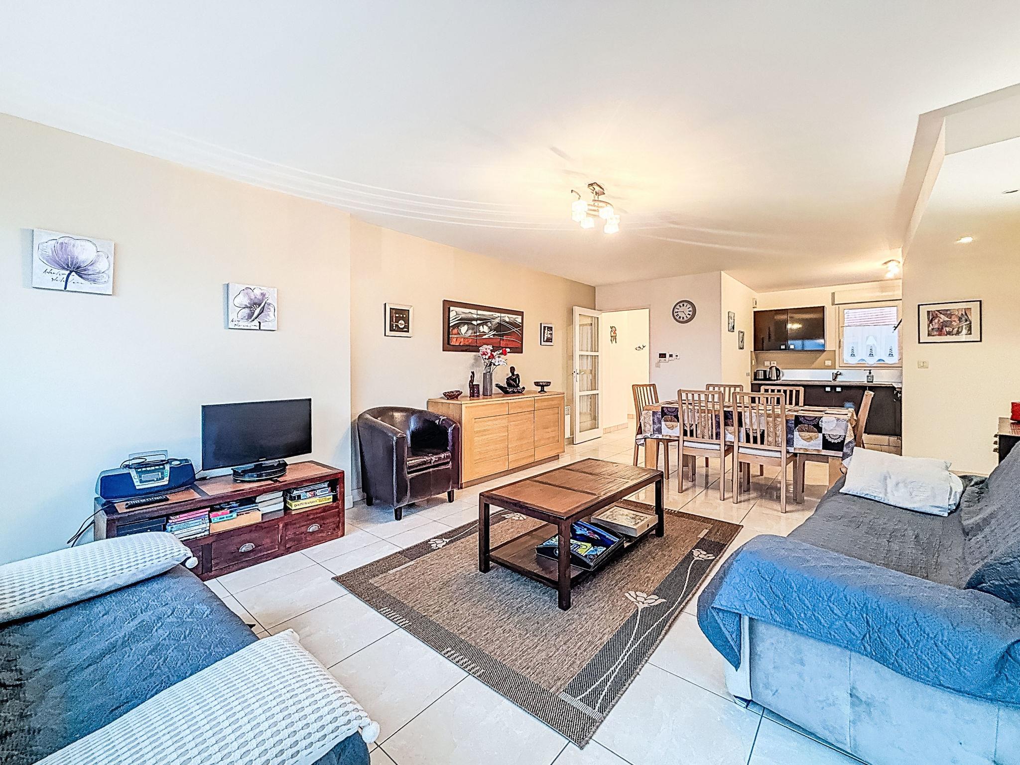 3-room apartment 78 m2 on 2nd floor. Comfortable furnishings: living/dining room with TV (flat screen). Exit to the balcony. 1 room with 1 french bed (1 x 140 cm, length 190 cm), bathroom. 1 room with 1 french bed (1 x 140 cm, length 190 cm). Exit to the balcony. Kitchen (3 hot plates, toaster, kettle, microwave, electric coffee machine). Shower, sep. WC. Terrace 10 m2, south facing position. Balcony furniture. Facilities: washing machine. Internet (WiFi, extra). Garage (2 cars). Please note: 1 pet/ dog allowed. Smoke alarm. Offer by a private individual according to Art. 155, IV of CGI.