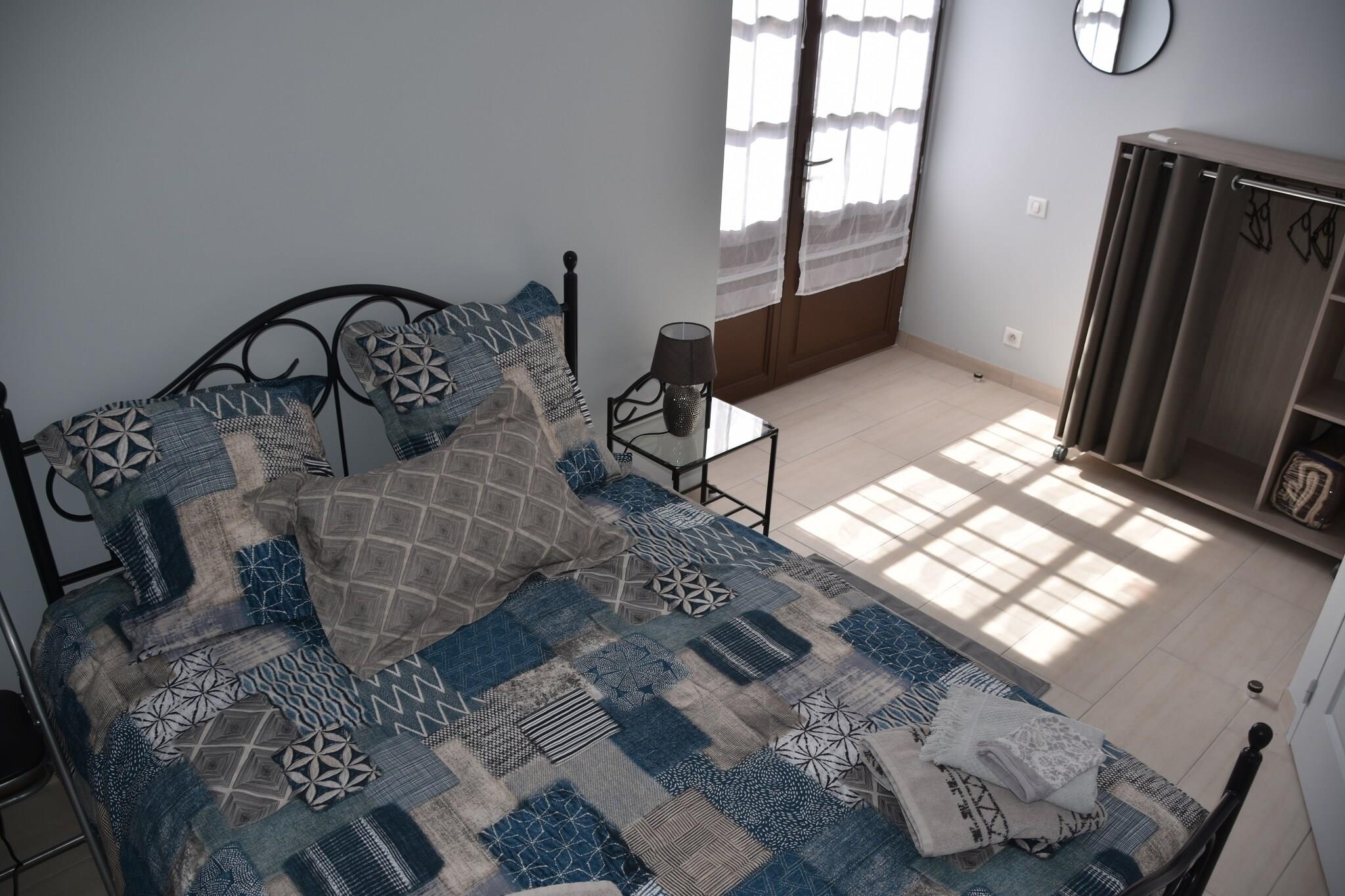 Ground floor: (Kitchen(dining table, cooker, hood, coffee machine, espresso machine, grill, combination microwave, fridge-freezer, washing machine, high chair, Blender)) On the 1st floor: (Living room(TV, seating area), bedroom(double king size bed), bedroom(double king size bed), bedroom(double bed), bedroom(double king size bed), bathroom(bathtub or shower, washbasin, toilet, bidet)) courtyard, terrace, garden furniture, BBQ, parking lot(public), deckchairs