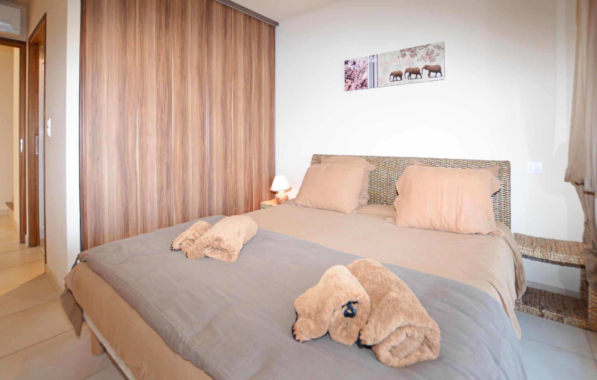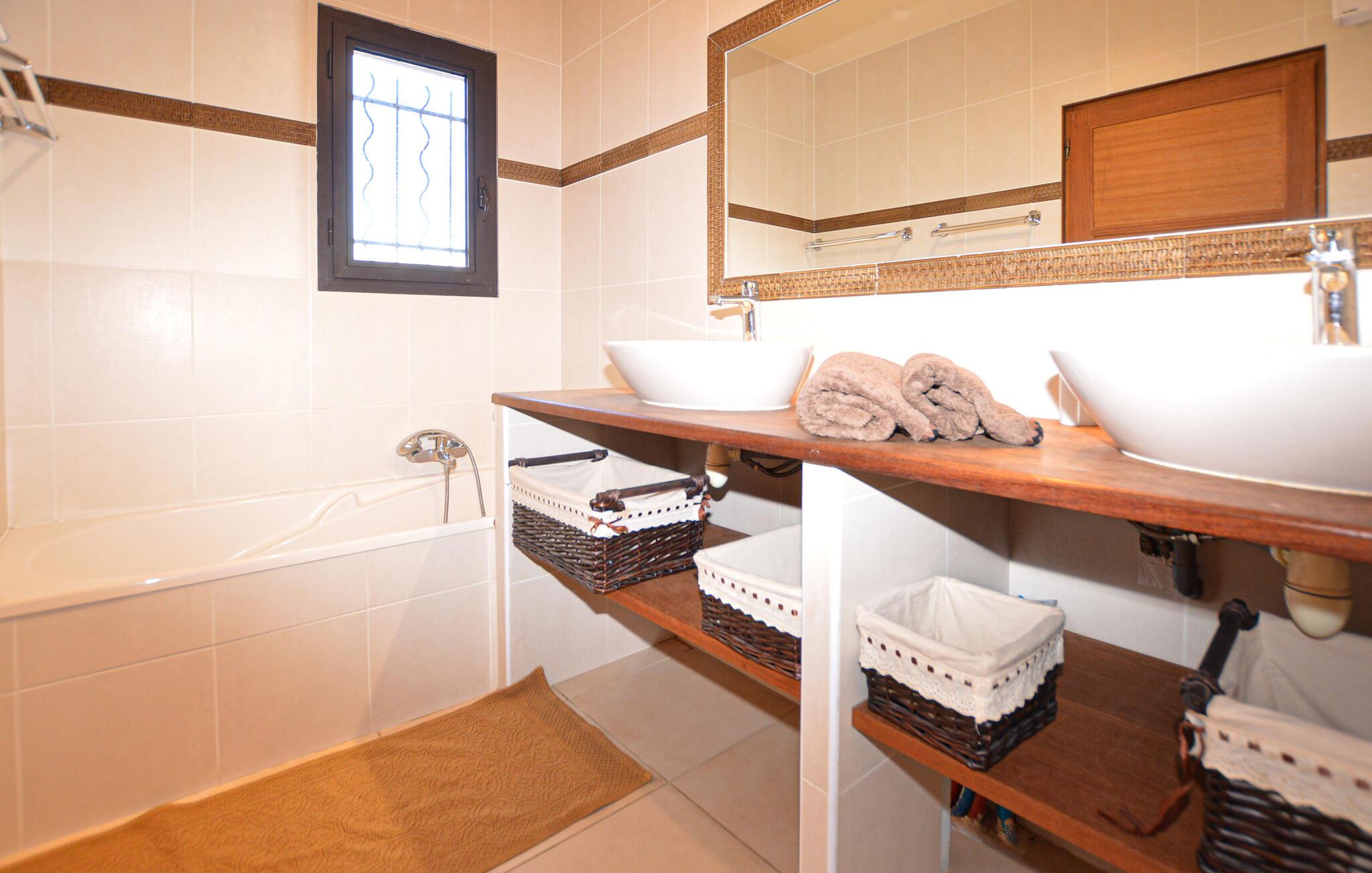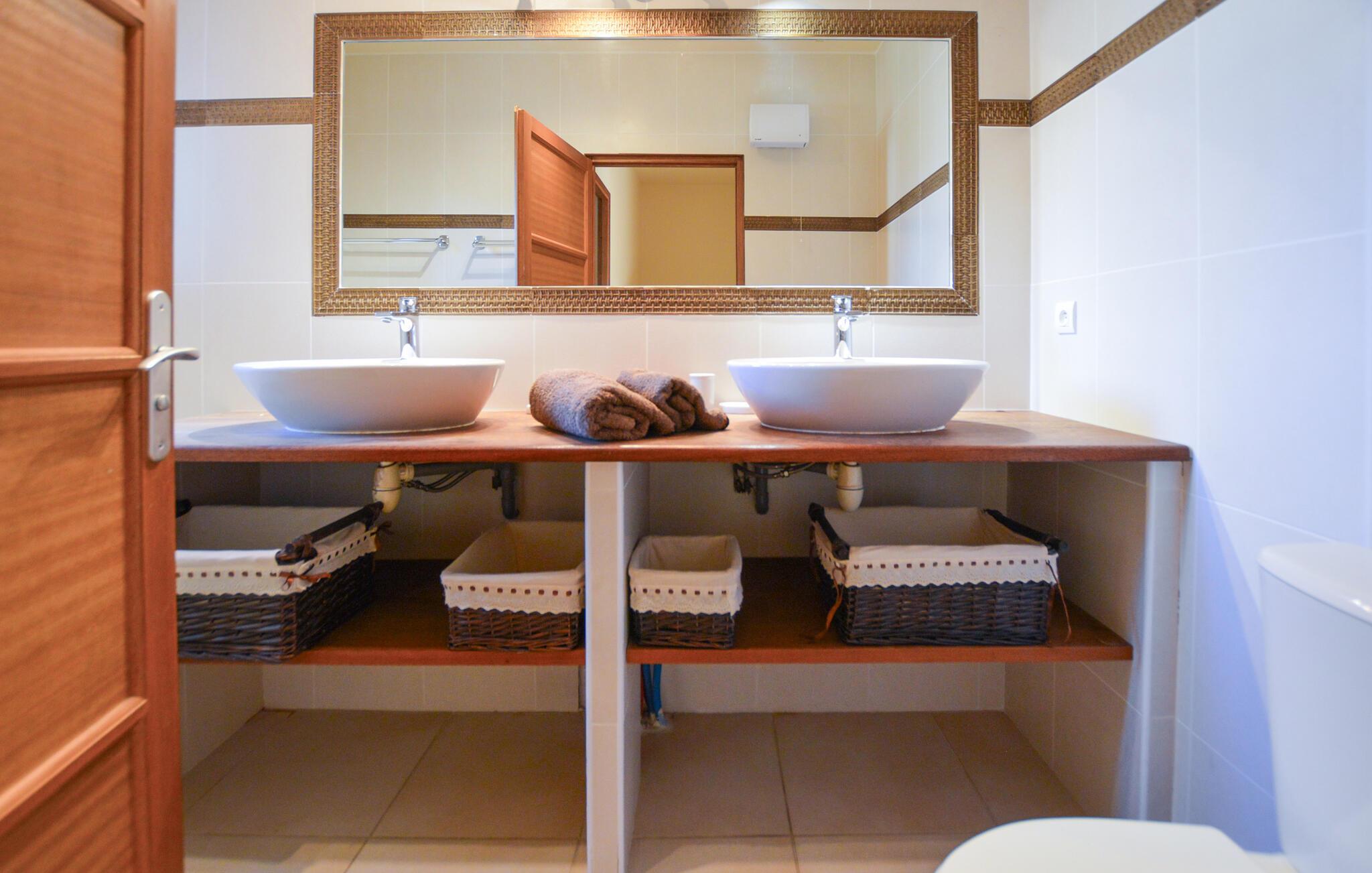 Gönnen Sie sich mit Ihrer Familie oder befreundeten Paaren eine Auszeit vom Alltag und entspannen sich in diesem komfortablen und einladenden Doppelhaus. Helle Farben und eine ansprechende Einrichtung und Ausstattung laden Sie ein Ihren Ferienalltag zum Faulenzen und Erholen zu nutzen. Hier finden Sie nicht nur große Räume vor, sondern auch Terrassen mit einem grünen Garten mit Meerblick. Wenn Sie mit der Großfamilie oder mehreren befreundeten verreisen wollen, können Sie je nach Verfügbarkeit, die andere Doppelhaushälfte hinzubuchen.
