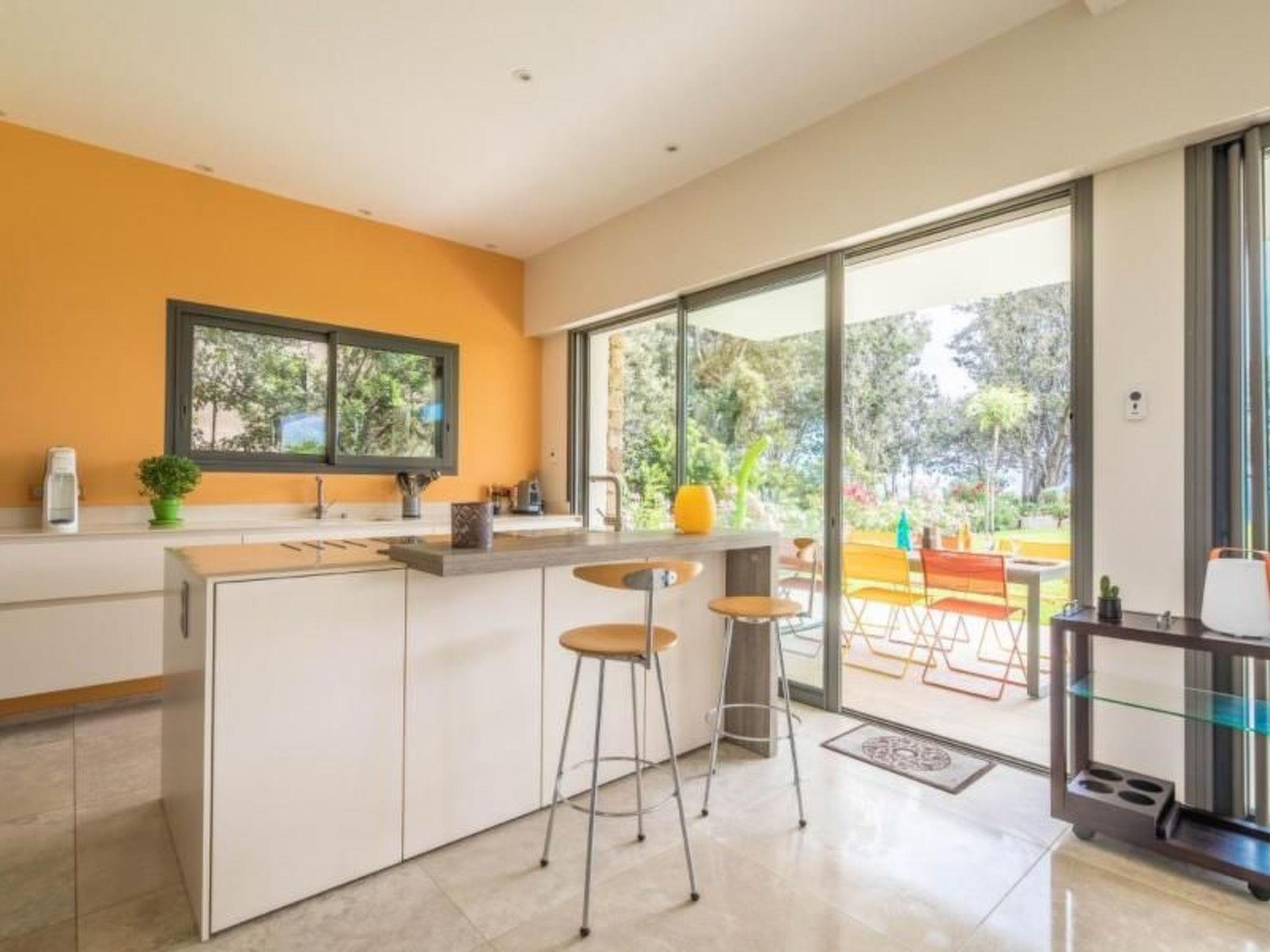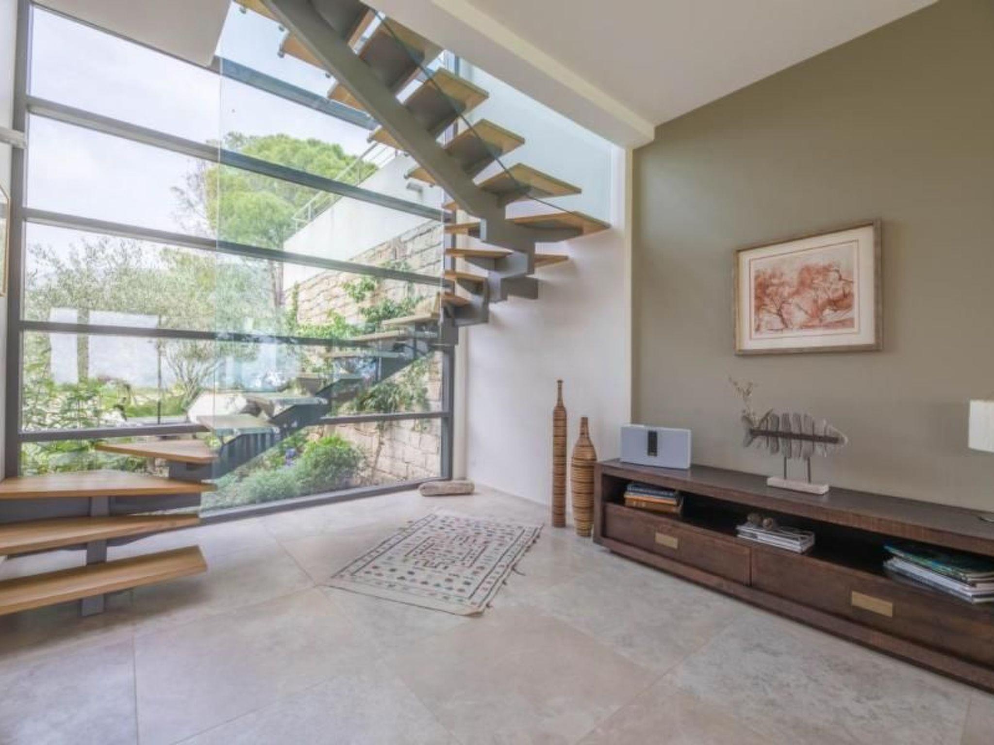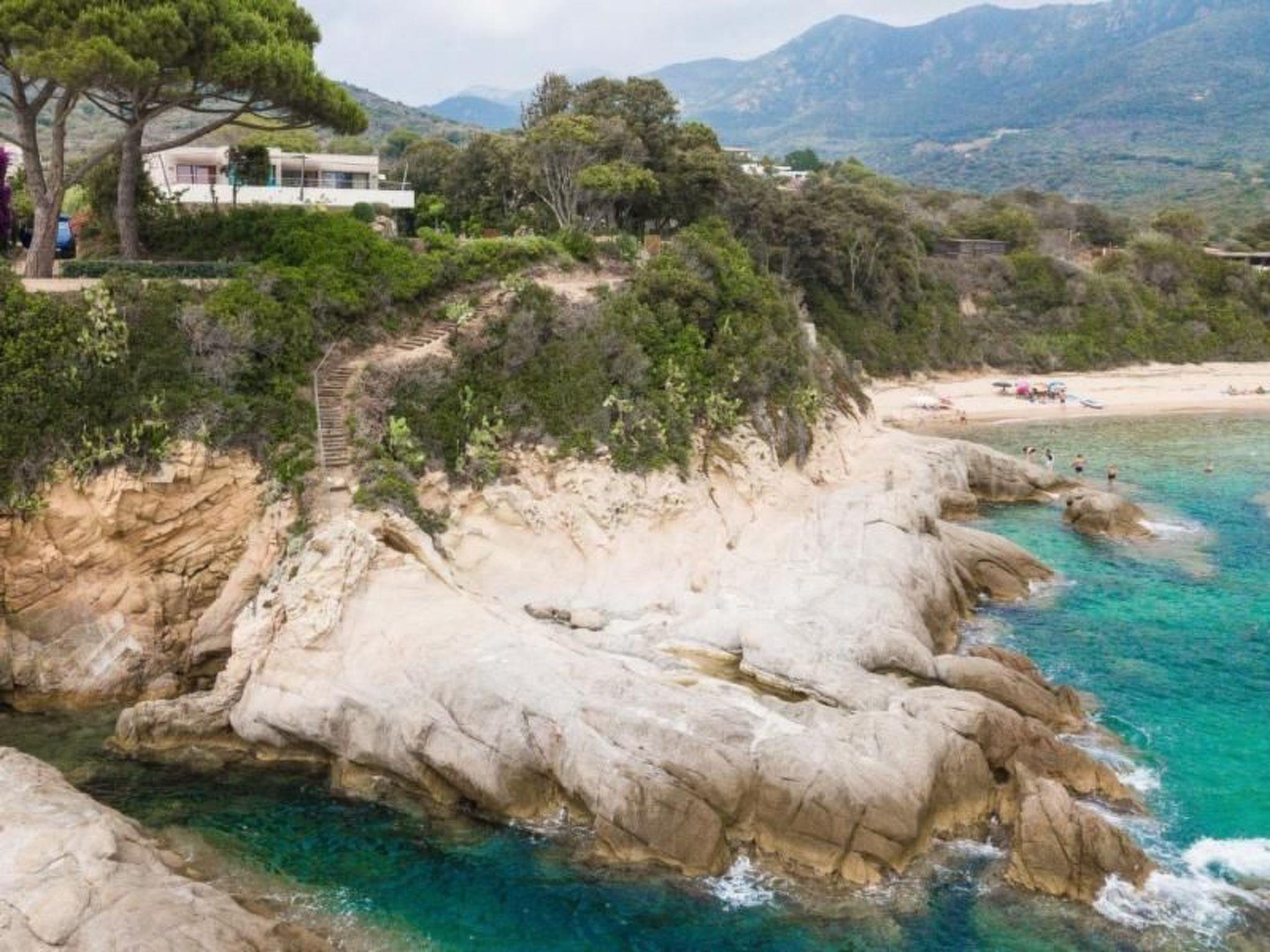 From the garden a path descends directly to the rocks and the beach. By road, the beach is 200m, shops 1 km.