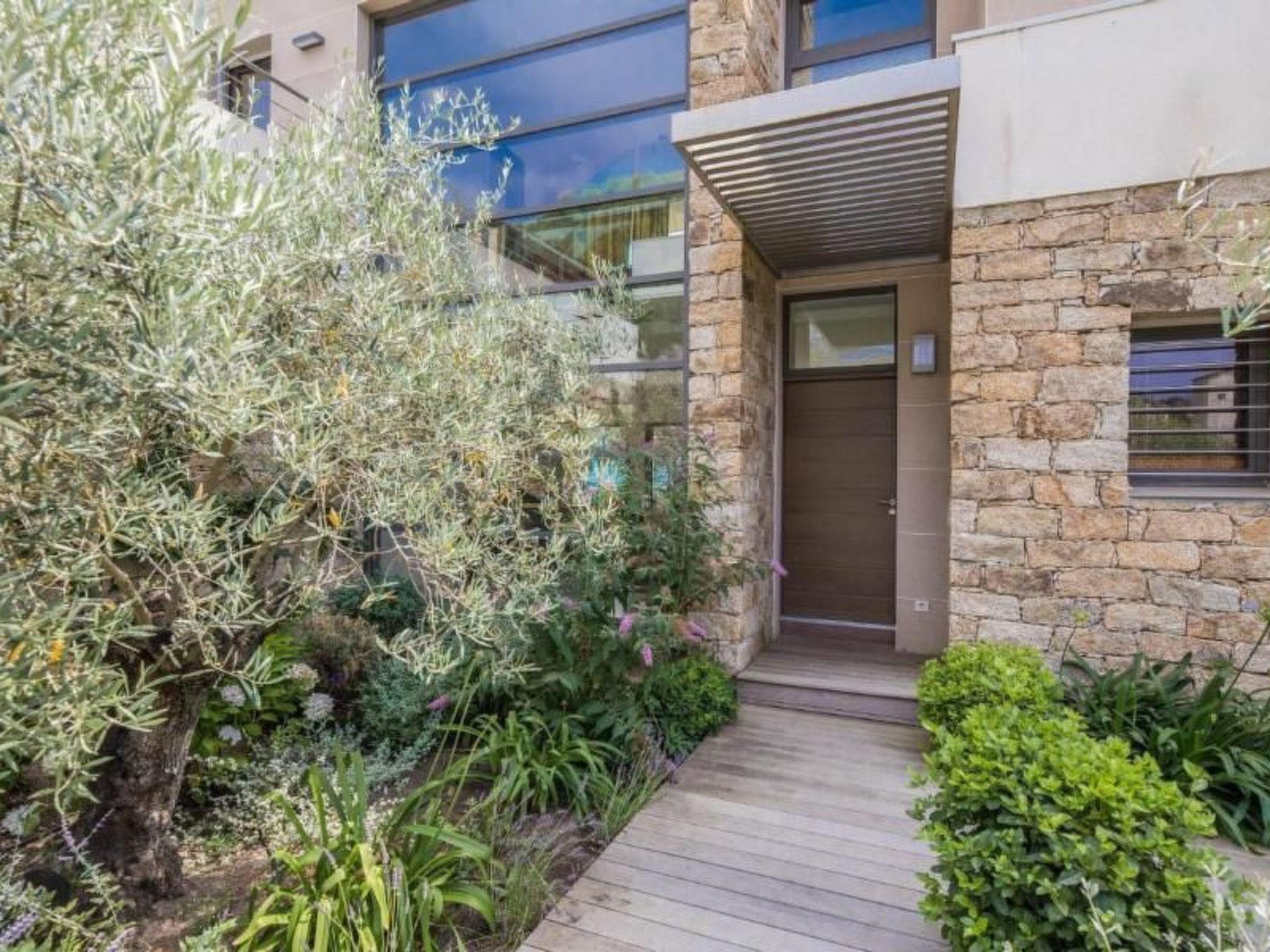 - upstairs: a TV corner, three bedrooms, each with wardrobes, bathroom, toilet and access to a large terrace (85 m²) to the south, a second private terrace to the north.