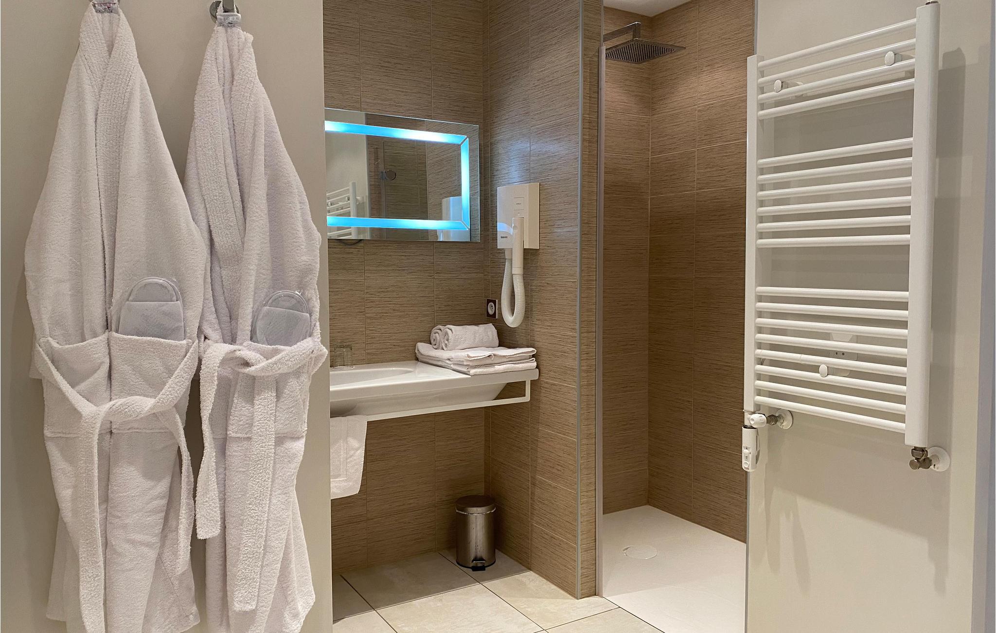 - WC mit warmem und kaltem Wasser, Dusche