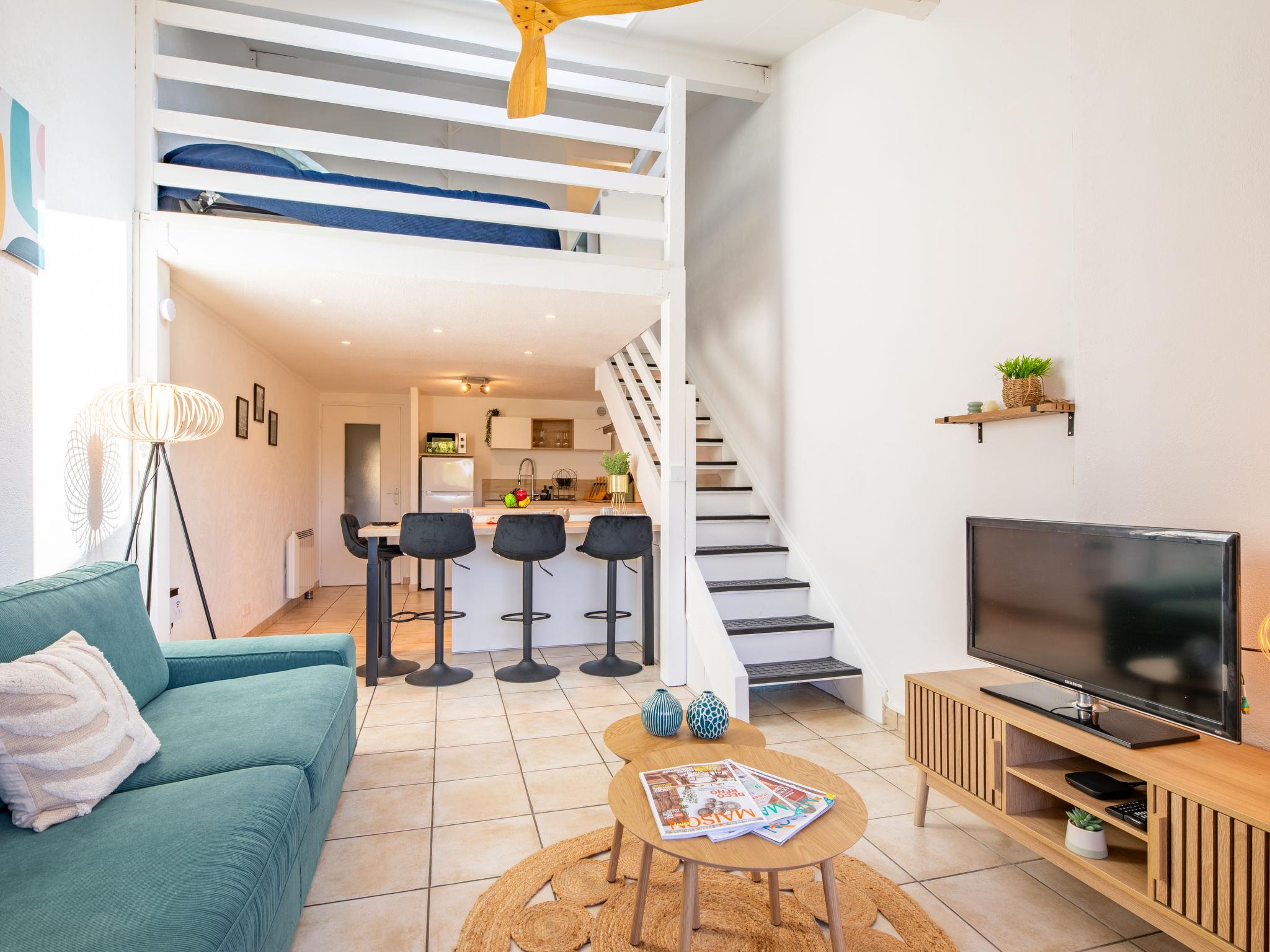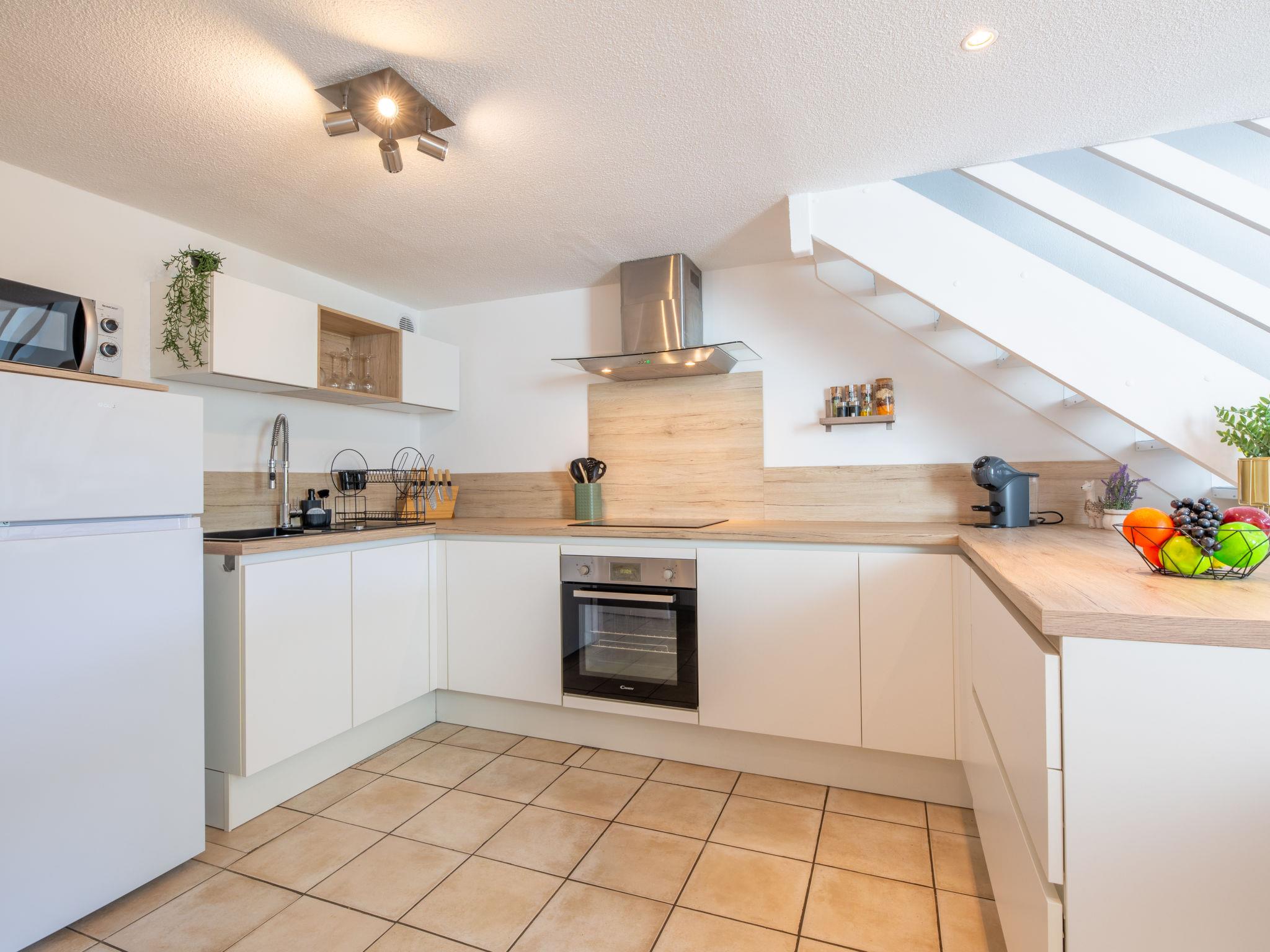 2-room apartment 54 m2 on 3rd floor. Fully renovated in 2025, modern furnishings: lounge with TV and international TV channels (flat screen), fan. Exit to the balcony. Large, open kitchen (oven, dishwasher, 3 induction hot plates, toaster, kettle, microwave, freezer, electric coffee machine, Capsules for coffee machine (Dolce gusto) extra) with dining nook. Sep. WC. Upper floor: gallery with 1 double sofabed (1 x 140 cm, length 190 cm), fan. 1 room with 1 french bed (1 x 160 cm, length 200 cm). Shower/WC. Electric heating. Balcony 8 m2, west facing position. Balcony furniture. Partial view of the sea. Facilities: washing machine, iron, hair dryer. Internet (WiFi, free). Please note: maximum 1 pet/ dog allowed. TV only FR. Smoke alarm. Offer by a private individual according to Art. 155, IV of CGI. F0LBU1