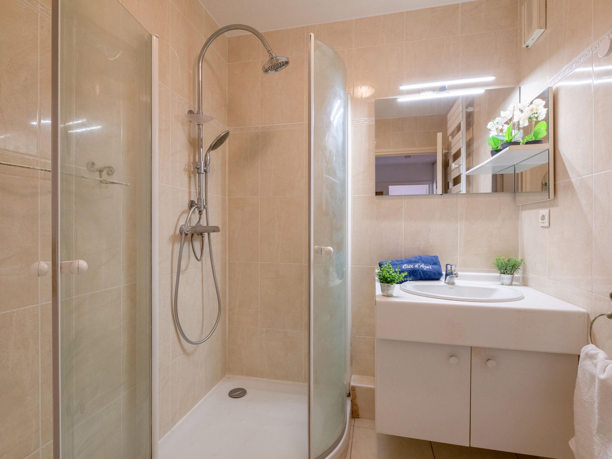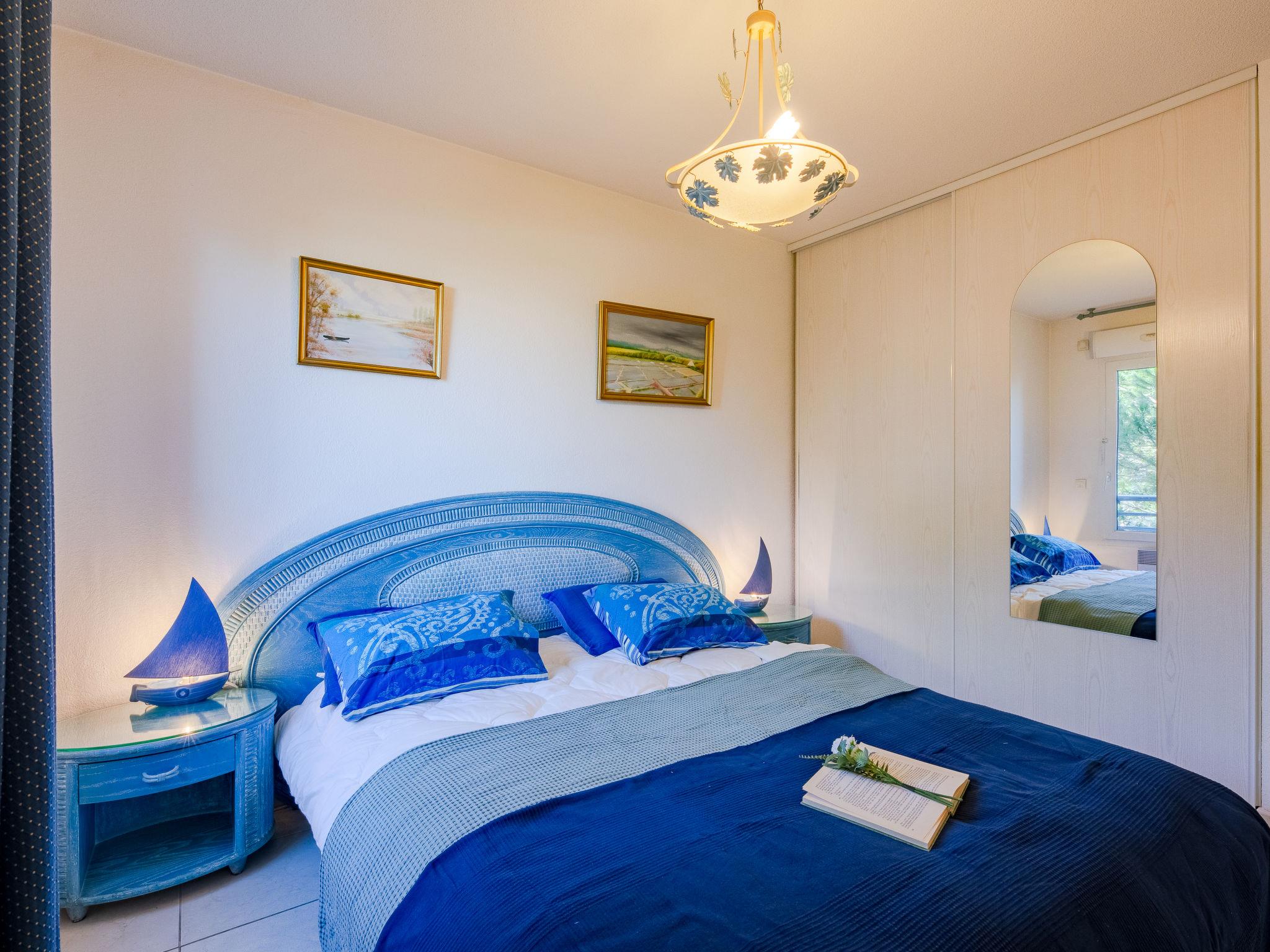 2-room apartment 53 m2 on 2nd floor, east facing position. Comfortable furnishings: living/dining room 22 m2 with 1 double sofabed (140 cm, length 190 cm), dining table and TV (flat screen), air conditioning and electric shutters. Exit to the terrace. 1 room 10 m2 with Dressing room with 1 french bed (160 cm, length 200 cm), air conditioning. Kitchen 8 m2 (oven, 4 ceramic glass hob hotplates, toaster, kettle, freezer, electric coffee machine, combination microwave). Exit to the terrace. Shower, sep. WC. Heating. Balcony 13 m2, south facing position and, east facing position. Balcony furniture. Beautiful view of the swimming pool. Facilities: washing machine, iron, hair dryer. Internet (WiFi, free). Garage space n 11 (1 car), height 190 cm, width 240 cm. Please note: non-smokers only. TV only FR. Smoke alarm. Offer by a private individual according to Art. 155, IV of CGI. RÉFG14NH6