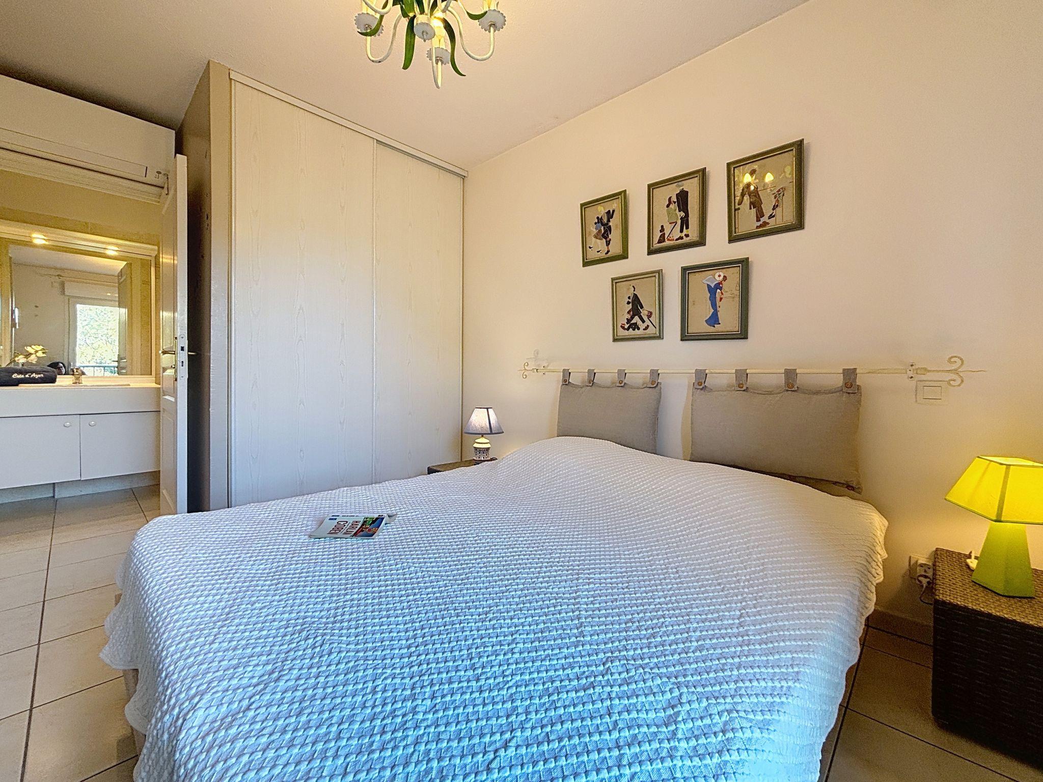 3-room apartment 79 m2 on 3rd floor. Comfortable and modern furnishings: living/dining room with panoramic window with TV (flat screen), DVD and electric shutters. Exit to the terrace. 1 room with 1 french bed (1 x 140 cm, length 190 cm), shower. 1 room with 2 beds (90 cm, length 190 cm). Large kitchen (dishwasher, 4 ceramic glass hob hotplates, toaster, kettle, freezer, electric coffee machine, Capsules for coffee machine (Nespresso), combination microwave). Exit to the balcony. Shower, sep. WC. Air-conditioning. Balcony 8 m2, north facing position terrace 12 m2, south-east facing position. Terrace furniture. Beautiful view of the sea, the swimming pool and the garden. Facilities: washing machine, iron, hair dryer. Internet (WiFi, extra). Garage space n 34, height 190 cm, width 230 cm. Please note: suitable for families. Maximum 1 pet/ dog allowed. TV only FR. Smoke alarm. Offer by a private individual according to Art. 155, IV of CGI. GOARHM