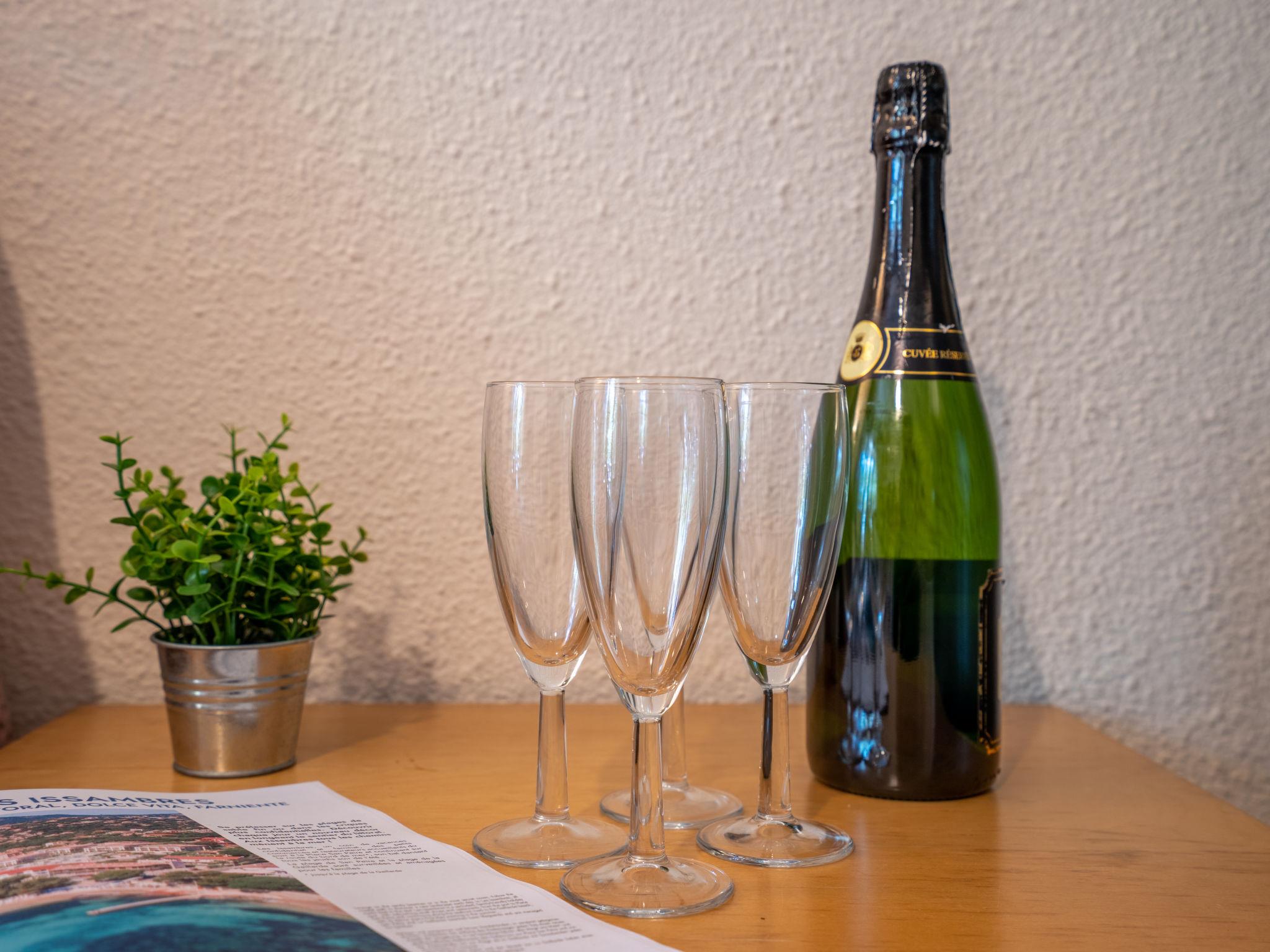 2-room apartment 40 m2, on the ground floor. Comfortable furnishings: living room with 1 double sofabed (1 x 140 cm, length 190 cm), TV (flat screen), fan. Exit to the terrace. 1 room with 1 french bed (1 x 140 cm, length 190 cm), fan. Sleeping alcove with 1 x 2 bunk beds (90 cm, length 190 cm), fan. Open kitchen in the entrance (dishwasher, 3 induction hot plates, toaster, kettle, freezer, electric coffee machine, combination microwave). Bathroom, sep. WC. Electric heating. Terrace 30 m2, south facing position, small patio. Terrace furniture, deck chairs (2). Facilities: washing machine, iron, hair dryer. Internet (WiFi, extra). Parking space n 30. Please note: maximum 1 pet/ dog allowed. TV only FR. Smoke alarm. Offer by a private individual according to Art. 155, IV of CGI. FJS1059HT
