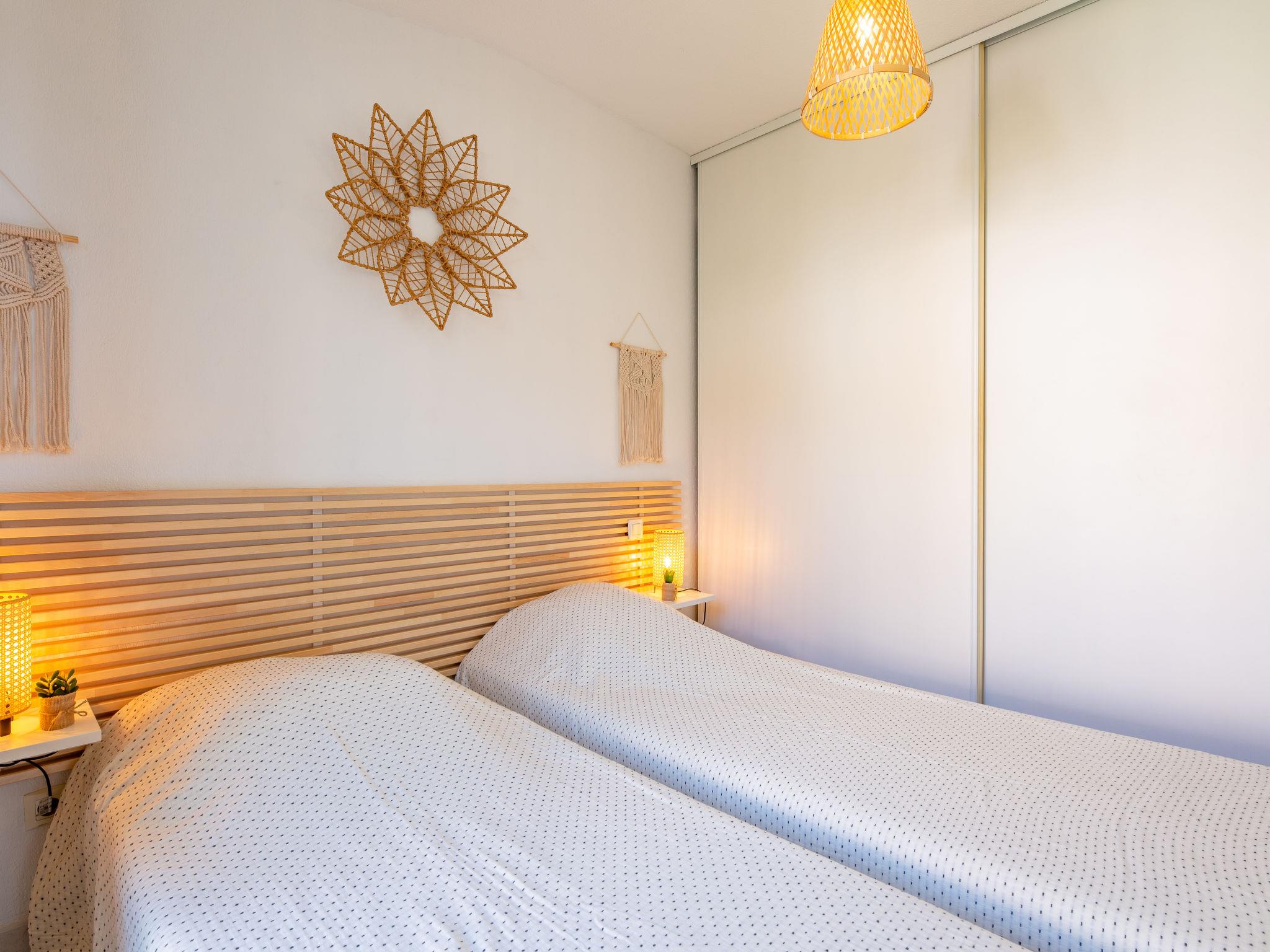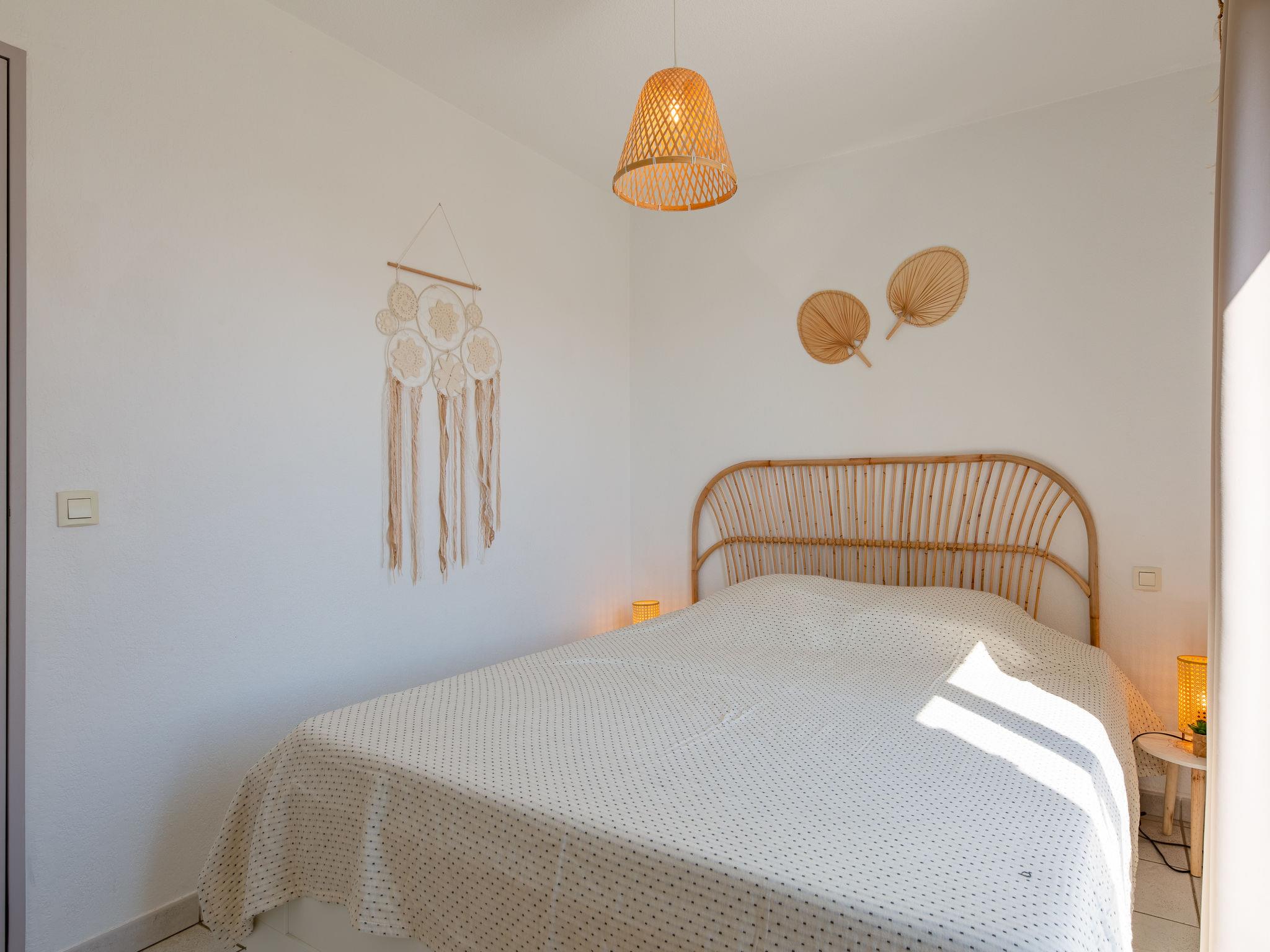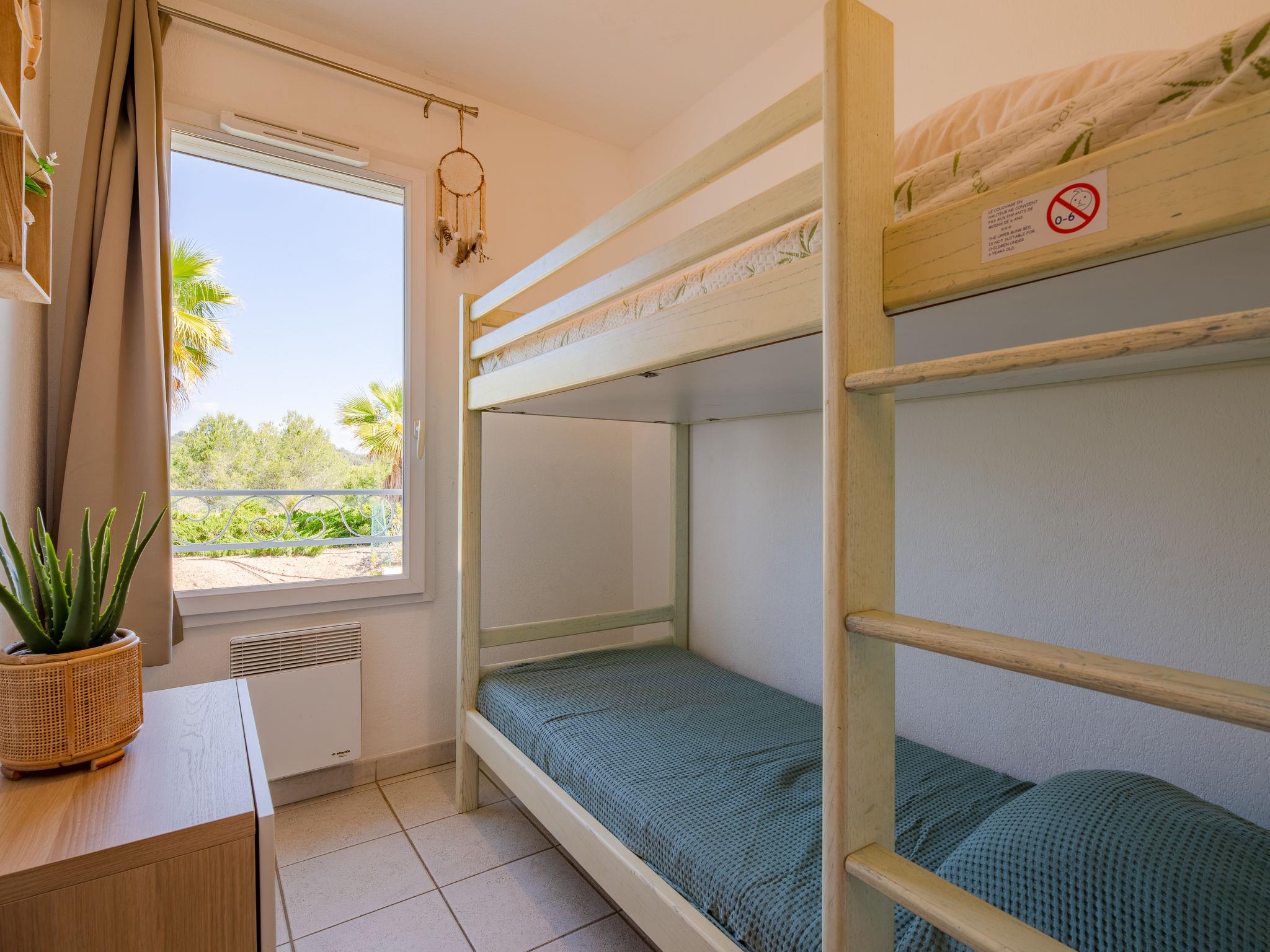 4-room apartment 56 m2 on 1st floor. Bright, beautiful furnishings: living/dining room with panoramic window with TV (flat screen), DVD and air conditioning. Exit to the garden, to the terrace. 1 room with 1 french bed (2 x 90 cm, length 200 cm), fan. Exit to the patio. 1 room with 1 french bed (1 x 160 cm, length 200 cm), fan. Exit to the balcony. 1 room with 1 x 2 bunk beds (90 cm, length 200 cm), fan. Open kitchen (oven, dishwasher, 4 ceramic glass hob hotplates, toaster, kettle, microwave, freezer, electric coffee machine, Capsules for coffee machine (Dolce Gusto)). Shower, sep. WC. Electric heating. Small balcony 4 m2, terrace 5 m2, patio 45 m2. Terrace furniture, balcony furniture. Facilities: iron, hair dryer. Internet (WiFi, extra). Parking. Please note: suitable for families. TV only FR. Smoke alarm. Offer by a private individual according to Art. 155, IV of CGI. FJS1855HT@