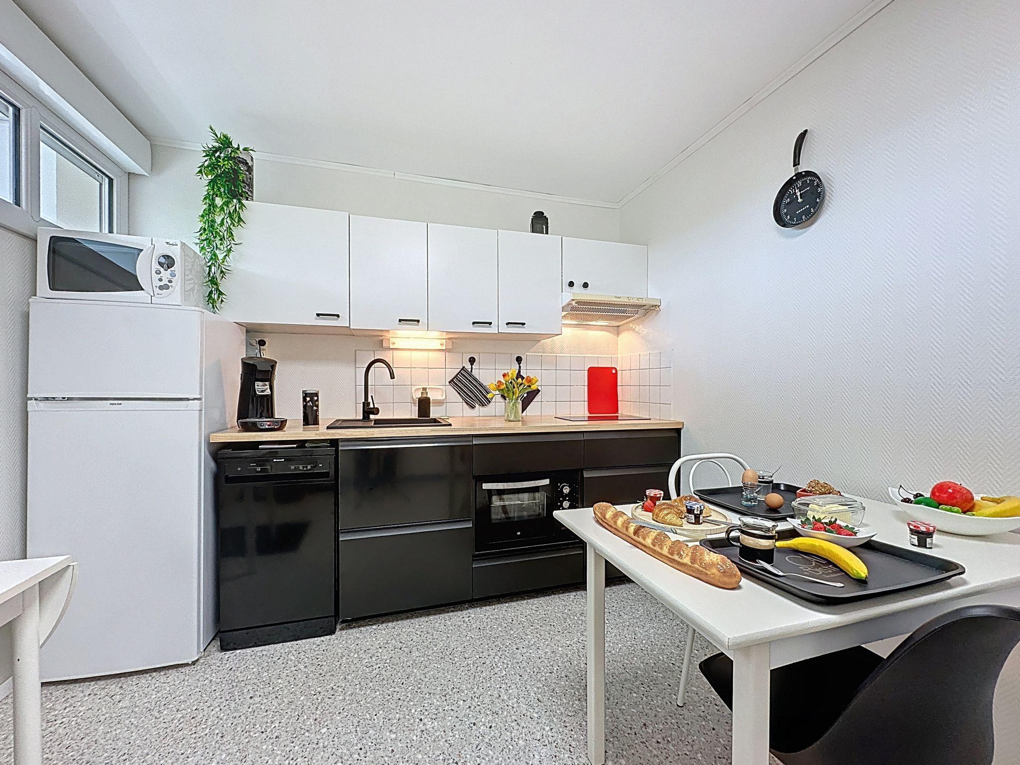 "L'Ermitage", 2-room apartment 46 m2 on 3rd floor, west facing position. Object suitable for 2 adults + 2 children. Living/sleeping room with 1 double sofabed (1 x 140 cm, length 190 cm), TV (flat screen). Exit to the balcony, west facing position. 1 room with 1 french bed (1 x 160 cm, length 200 cm). Exit to the balcony, west facing position. Kitchen (mini-oven, dishwasher, 2 induction hot plates, toaster, kettle, microwave, electric coffee machine, Capsules for coffee machine (Senseo) extra) with dining table. Shower/WC. Electric heating. Balcony 7 m2, west facing position. Balcony furniture. Partial view of the sea. Facilities: iron, hair dryer. Internet (WiFi, free). Parking space n 223 (1 car). Please note: non-smokers only. Smoke alarm, no lift. Offer by a private individual according to Art. 155, IV of CGI.