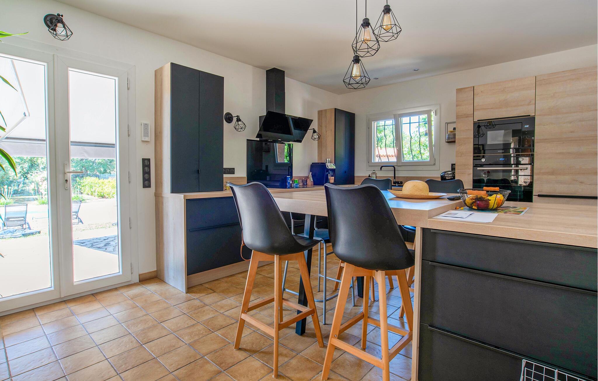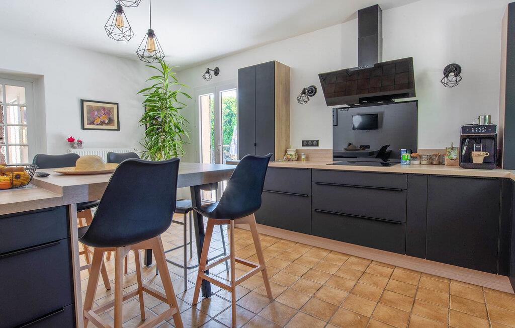 Dieses großzügige Ferienhaus vereint rustikalen Charme mit modernen Annehmlichkeiten und bietet Ihnen und Ihren Liebsten ein schönes Zuhause, während Sie die reizvolle Region zwischen Mittelmeer und Gebirge entdecken. Zaubern Sie gemeinsam köstliche Mahlzeiten in der offenen Küche, planen Sie Ihre Unternehmungen auf dem gemütlichen Sofa und lassen Sie einen langen Tag bei einem Spieleabend ausklingen.