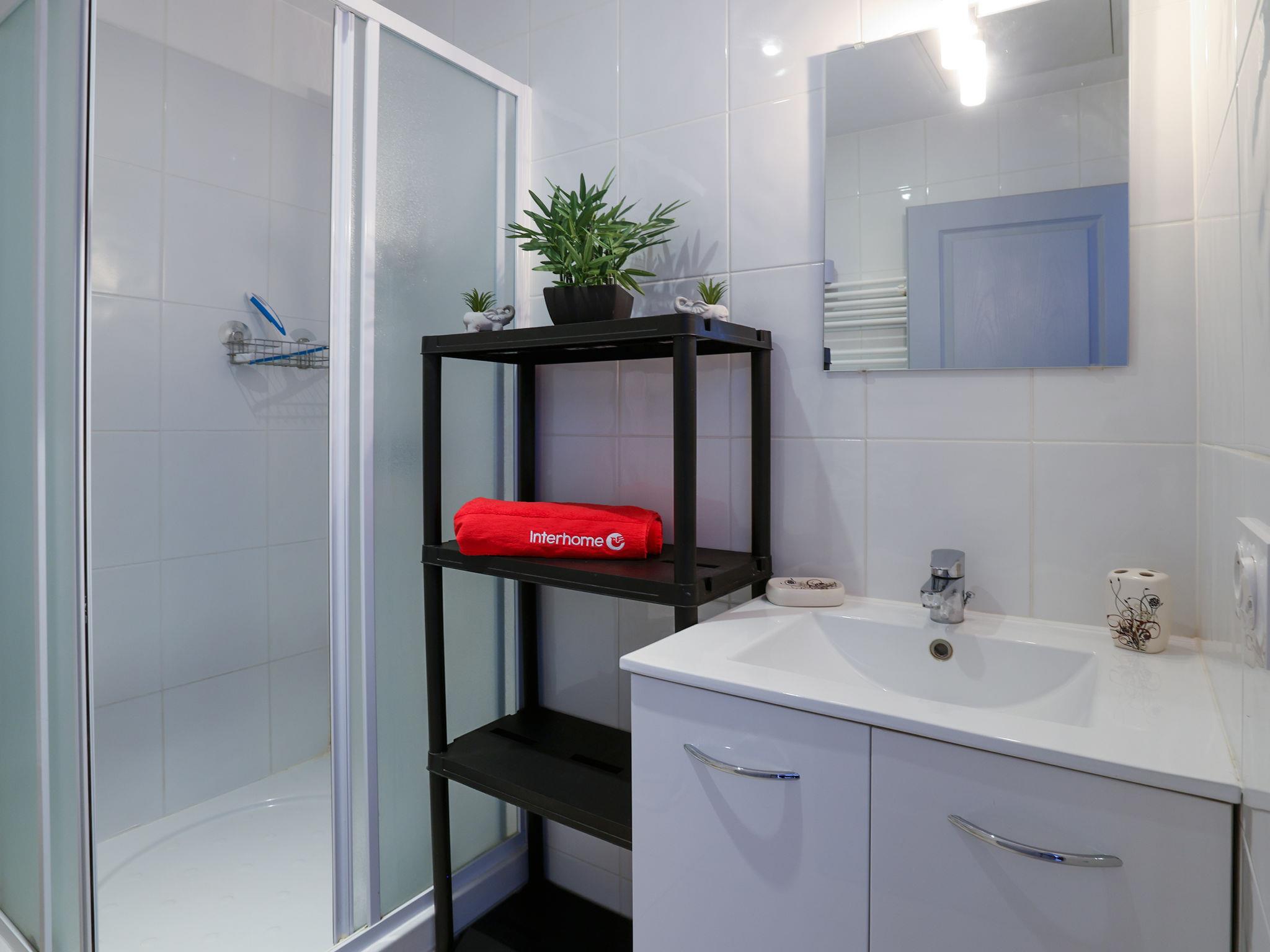 2-room apartment 28 m2 on 4th floor. Living/dining room with 1 double sofabed (140 cm, length 190 cm), TV (flat screen). Exit to the balcony. 1 room with 1 french bed (140 cm, length 190 cm). Kitchenette (oven, 2 induction hot plates, toaster, kettle, microwave, freezer, electric coffee machine). Shower/WC. Electric heating. Small balcony, north-east facing position. Balcony furniture. Side view of the sea. Facilities: washing machine. Internet (WiFi, extra). Parking at 900 m. Please note: smoke alarm. Offer by a private individual according to Art. 155, IV of CGI.