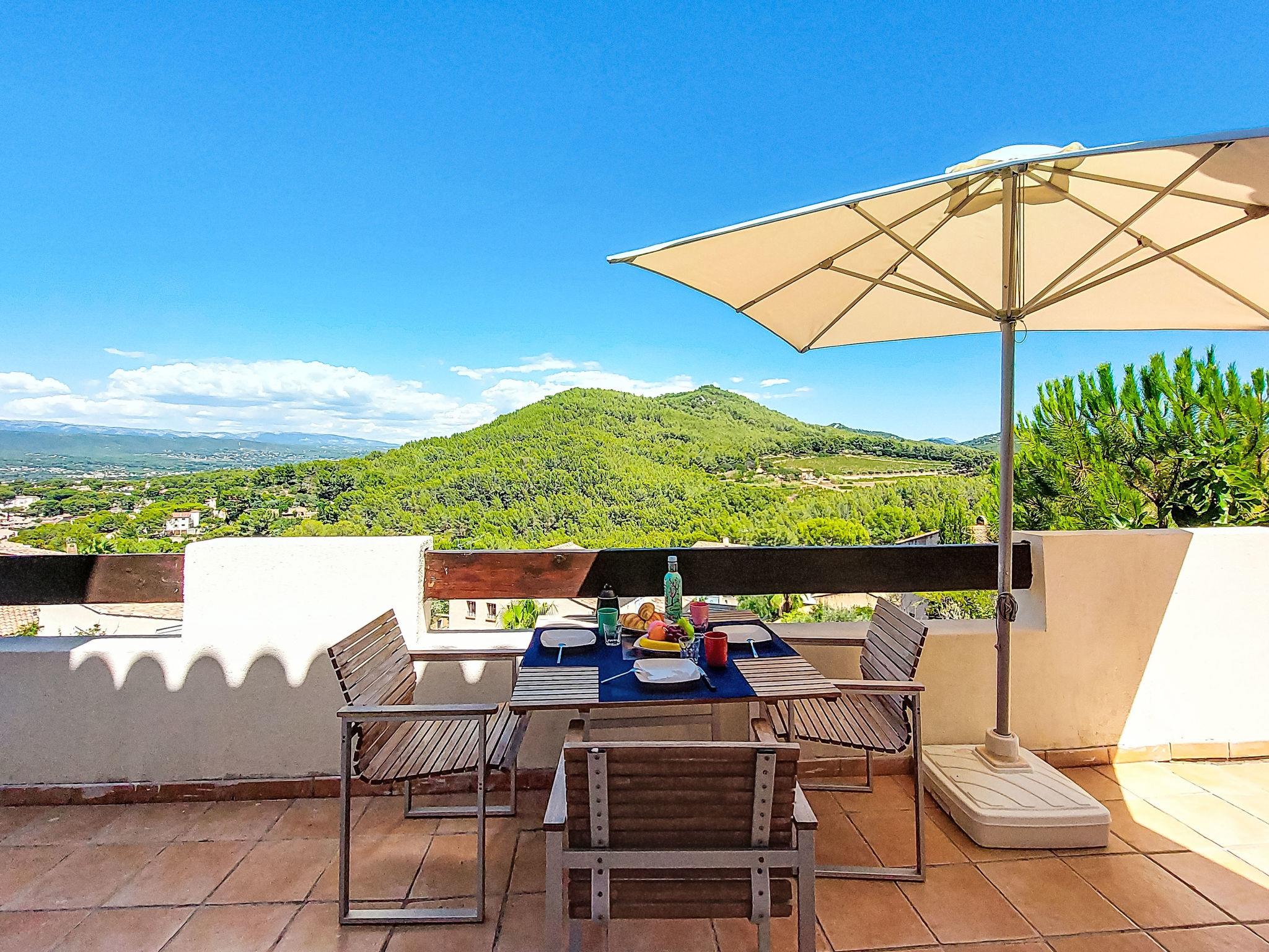 4-room house 120 m2 on 2 levels. Comfortable and beautiful furnishings: living/dining room with TV (flat screen). Exit to the terrace. 1 room with 1 french bed (160 cm, length 200 cm), bathroom. Kitchen (oven, dishwasher, 5 gas rings, toaster, kettle, microwave, freezer, electric coffee machine, Capsules for coffee machine (Nespresso) extra). Exit to the terrace. Sep. WC. Upper floor: 1 room with 2 beds (90 cm, length 200 cm). 1 room with 2 beds (90 cm, length 200 cm). Bath/WC. Electric heating. Large terrace 100 m2, south-east facing position and north-west facing position. Terrace furniture, barbecue. Very beautiful view of the mountains and the valley. Facilities: washing machine, iron. Internet (WiFi, free). Parking (2 cars). Please note: non-smoking house. TV only FR. Smoke alarm. Offer by a private individual according to Art. 155, IV of CGI. 83112001798H5