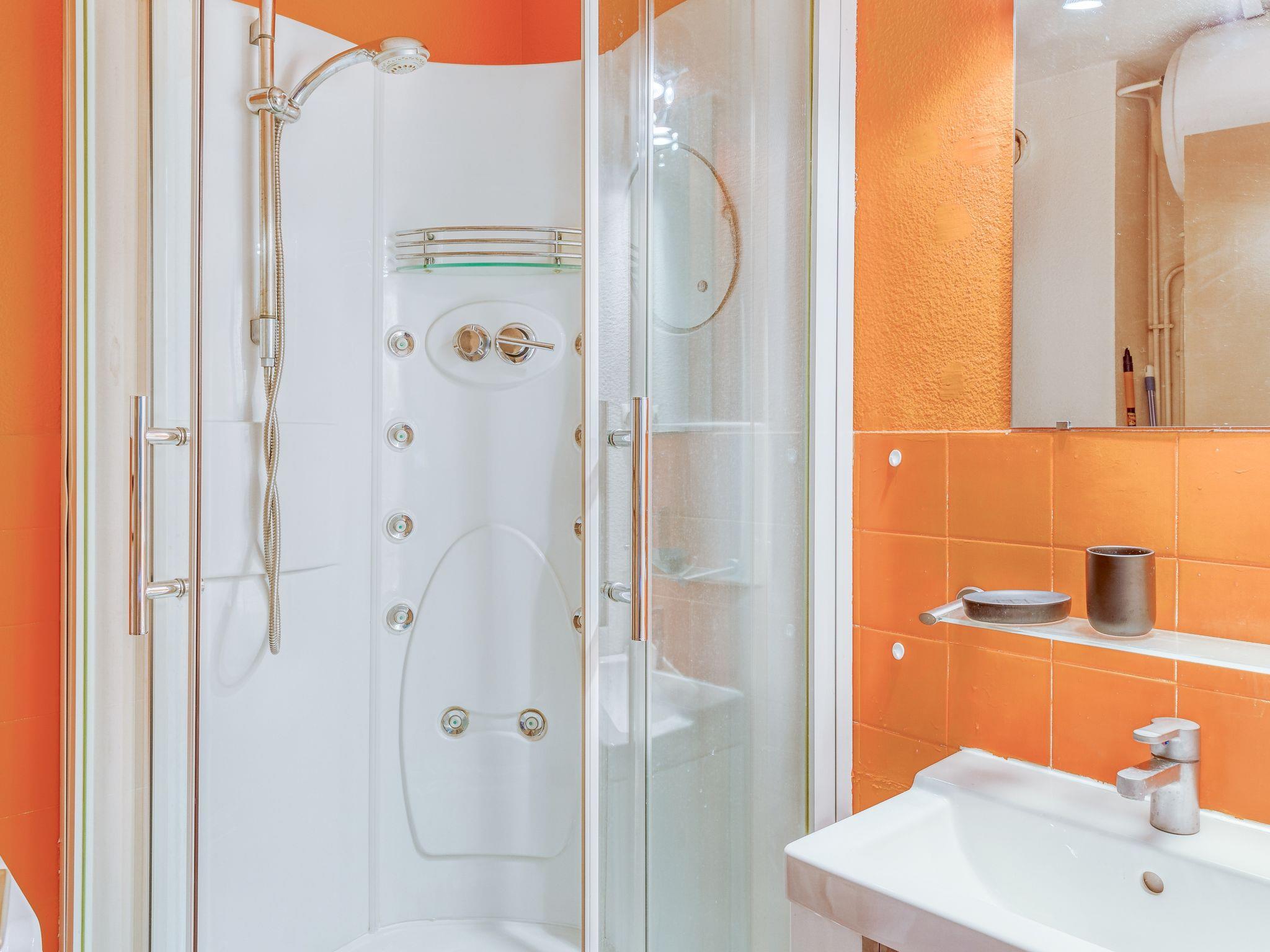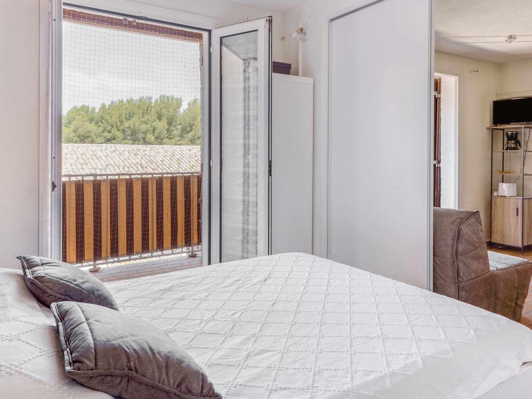 2-room apartment 33 m2 on 2nd floor. Comfortable and beautiful furnishings: living/dining room with 1 double sofabed (140 cm, length 190 cm), TV and air conditioning. Exit to the terrace. 1 room with sliding door with 1 french bed (140 cm, length 190 cm). Exit to the terrace. Kitchenette (oven, 4 ceramic glass hob hotplates, toaster, kettle, microwave, electric coffee machine). Shower/WC. Forced-air heating. Terrace 9 m2, north-west facing position. Terrace furniture, electric barbecue. Facilities: washing machine, dryer. Internet (WiFi, extra). Parking space n 649. Please note: TV only FR. Smoke alarm. 83112 000566 HM