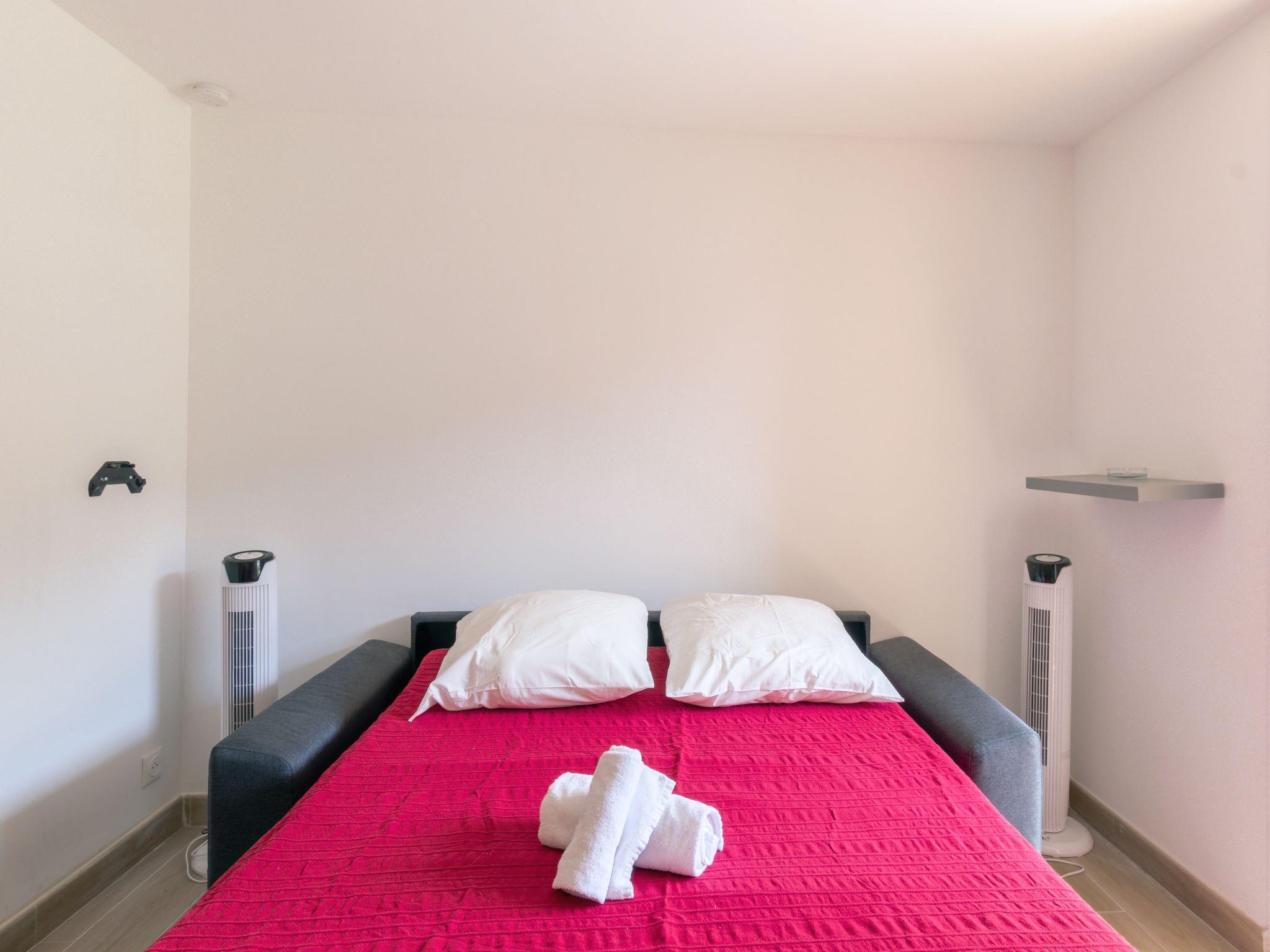1-room studio 20 m2 on 2nd floor. Object suitable for 2 adults + 2 children. Fully renovated in 2021, comfortable and beautiful furnishings: entrance hall, without window with 1 x 2 bunk beds (70 cm, length 180 cm). Living/dining room with 1 double sofabed (130 cm, length 180 cm), TV. Exit to the terrace. Kitchenette (2 ceramic glass hob hotplates, toaster, kettle, microwave, freezer, electric coffee machine, Capsules for coffee machine (Dolce Gusto) extra). Shower/WC. Electric heating. Terrace 6 m2, east facing position. Terrace furniture. Facilities: washing machine. Internet (WiFi, extra). Please note: TV only FR. Smoke alarm. Offer by a private individual according to Art. 155, IV of CGI. 83112000742IN