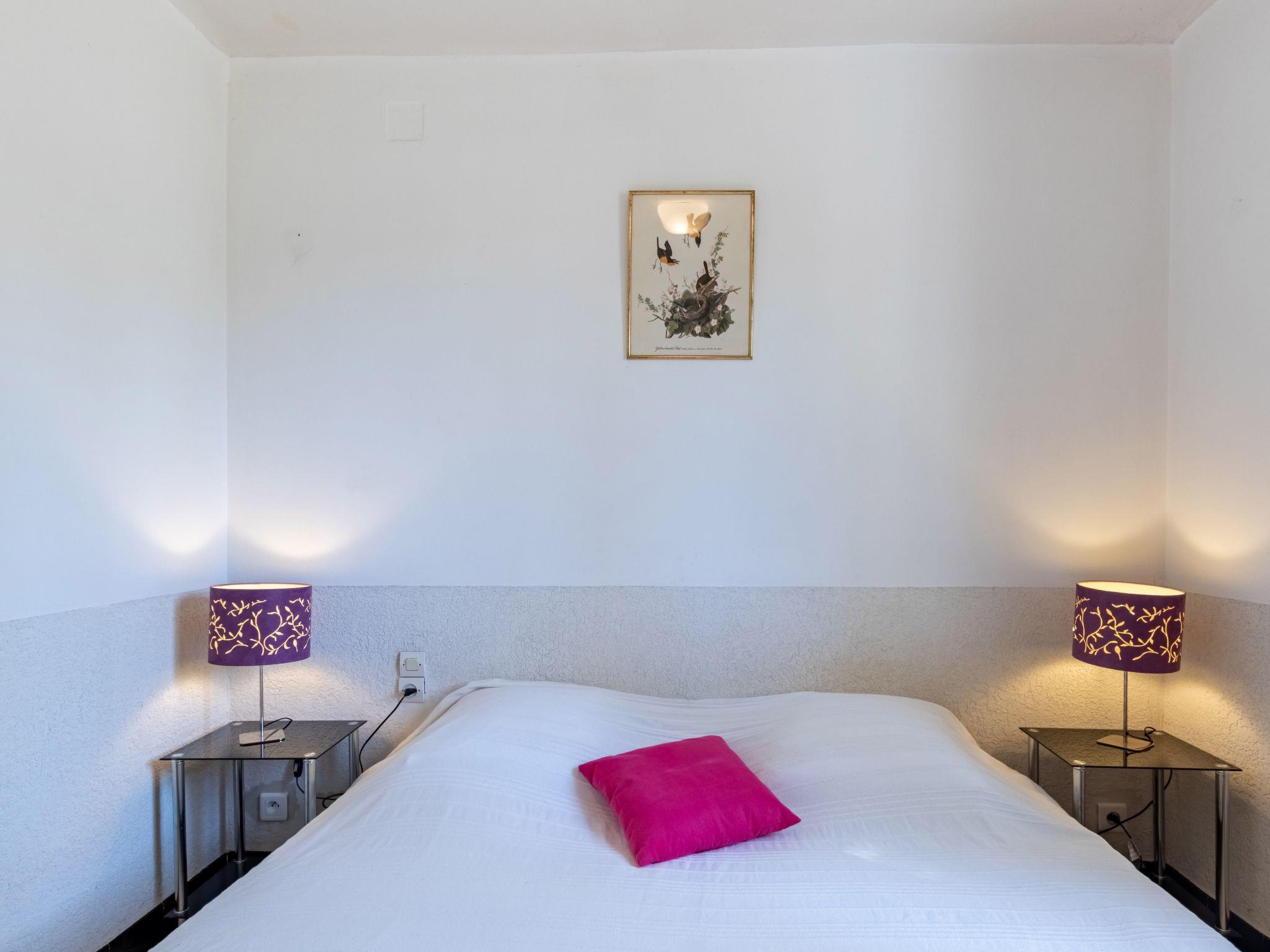 2-room apartment 36 m2, on the ground floor. Simple and practical furnishings: living/dining room with TV (flat screen). Exit to the terrace. 1 room with 2 beds (90 cm, length 190 cm). Kitchenette (2 hot plates, kettle, microwave, electric coffee machine). Shower, sep. WC. No heating option. Terrace 6 m2, south-east facing position. Terrace furniture. Facilities: Internet (WiFi, extra). Parking (1 car). Please note: not suitable for children under 3 years. TV only FR. Smoke alarm. 83112000683UA