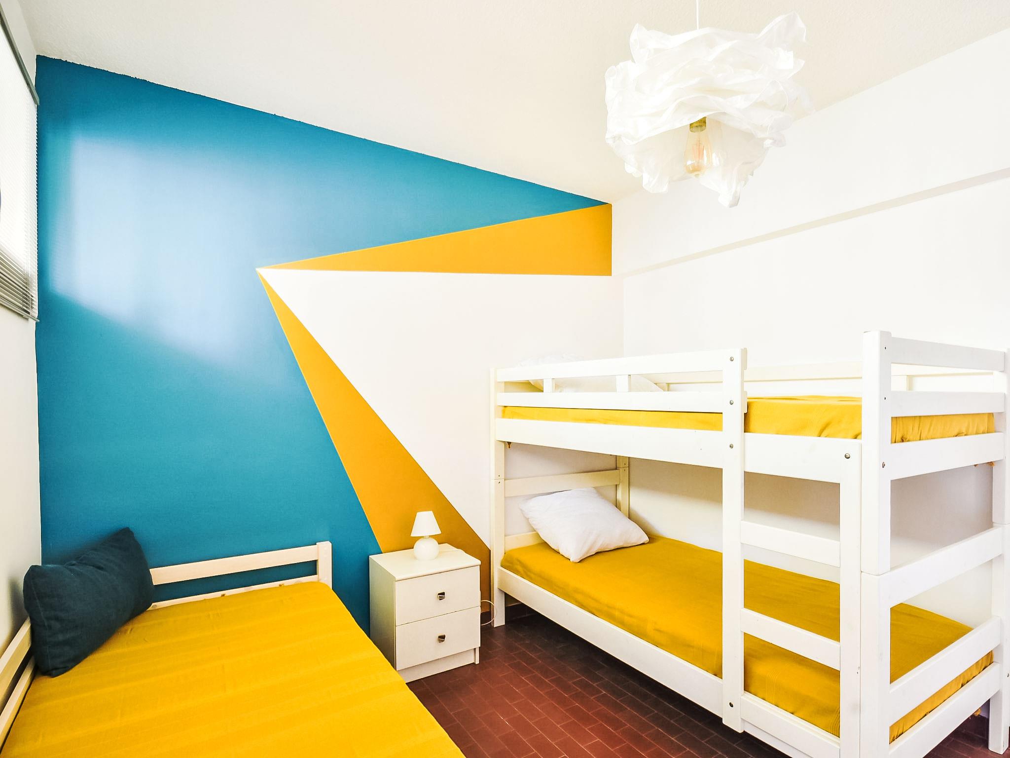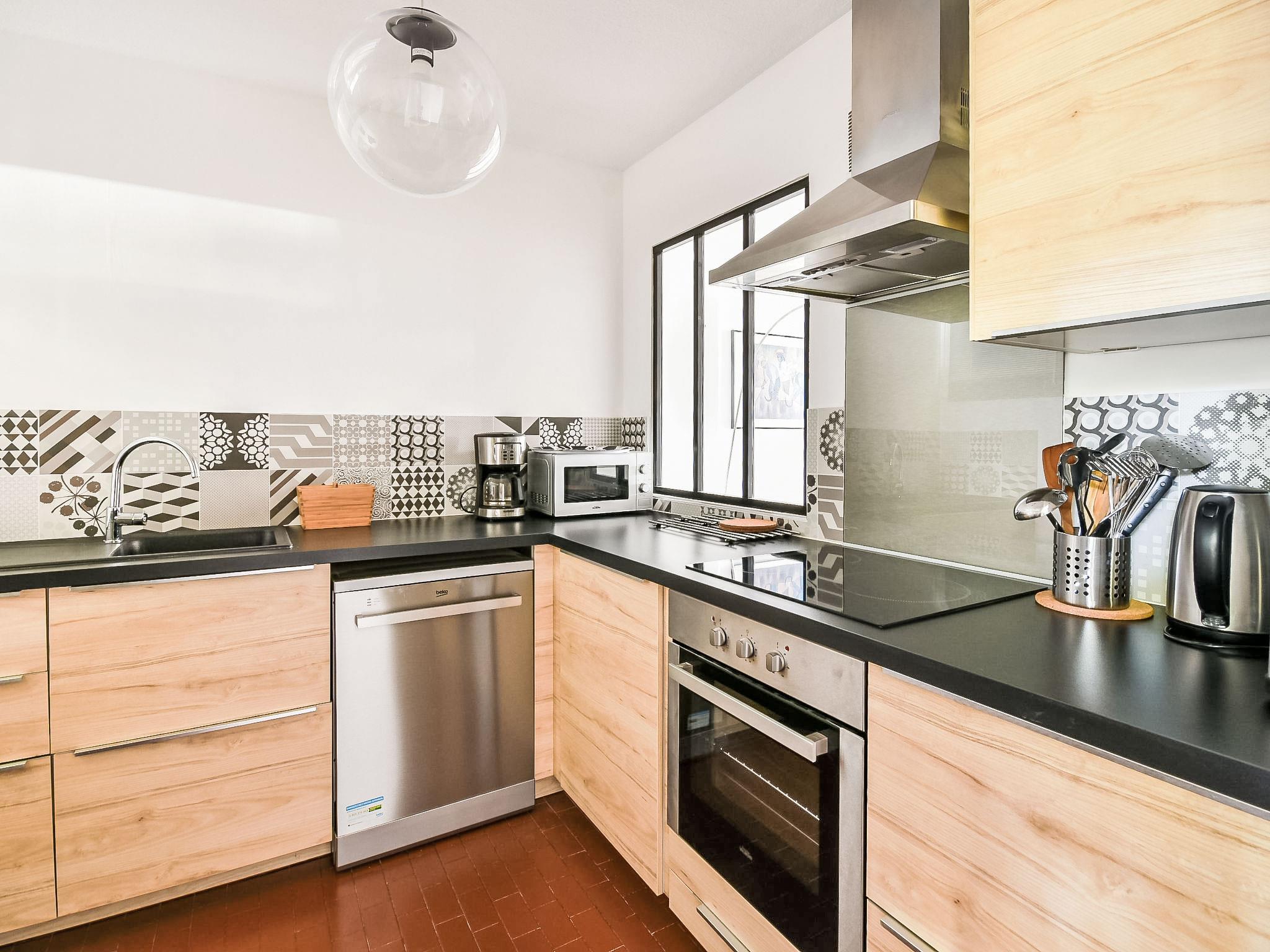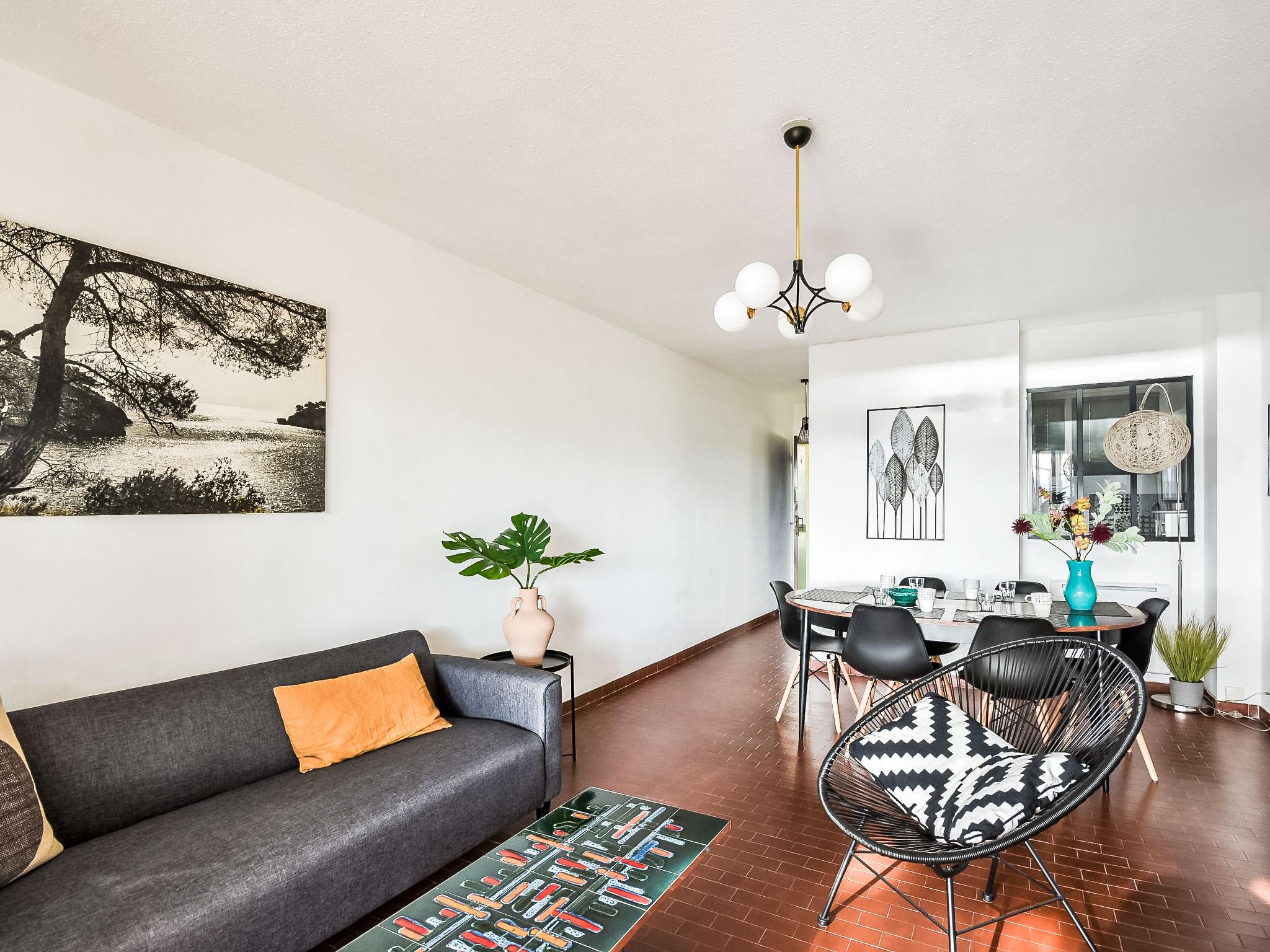 3-room apartment 65 m2 on 2nd floor. Renovated in 2018, comfortable and beautiful furnishings: living/dining room with TV (flat screen). Exit to the terrace. 1 room with 1 french bed (140 cm, length 190 cm). Exit to the terrace. 1 room with 1 x 2 bunk beds (90 cm, length 190 cm). Kitchen (oven, dishwasher, 3 induction hot plates, toaster, kettle, microwave, freezer, electric coffee machine, Capsules for coffee machine (Tassimo) extra). Shower, sep. WC. Electric heating. Terrace 12 m2 partly roofed, south facing position. Terrace furniture. Facilities: washing machine, iron. Internet (WiFi, extra). Parking space n 16. Please note: TV only FR. Smoke alarm. 83112 000025 KV