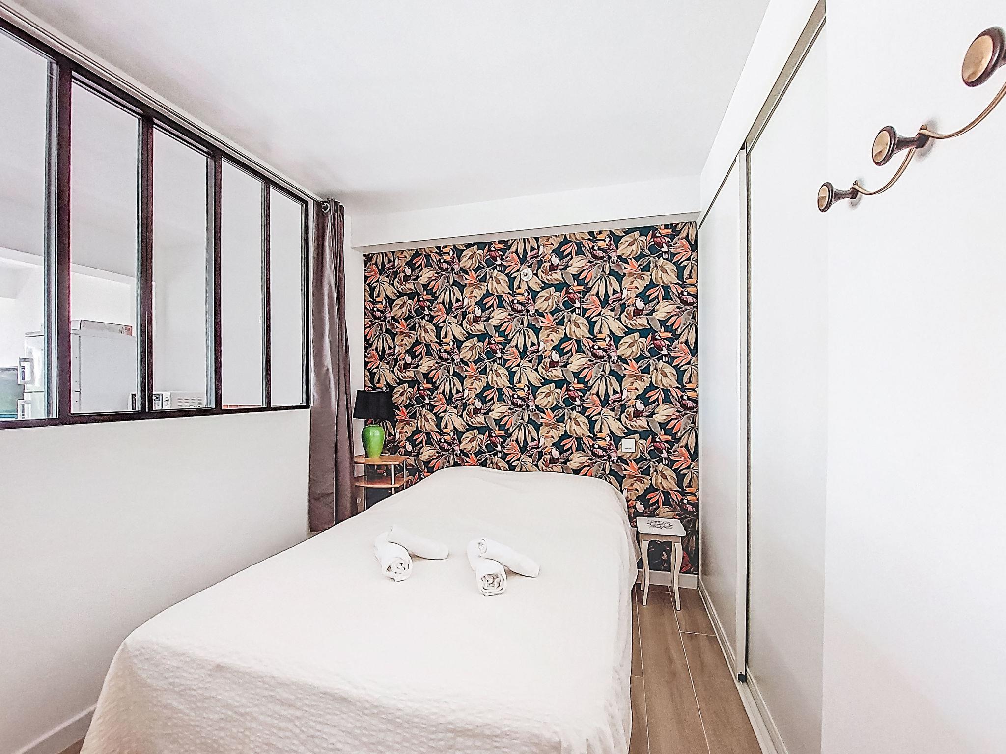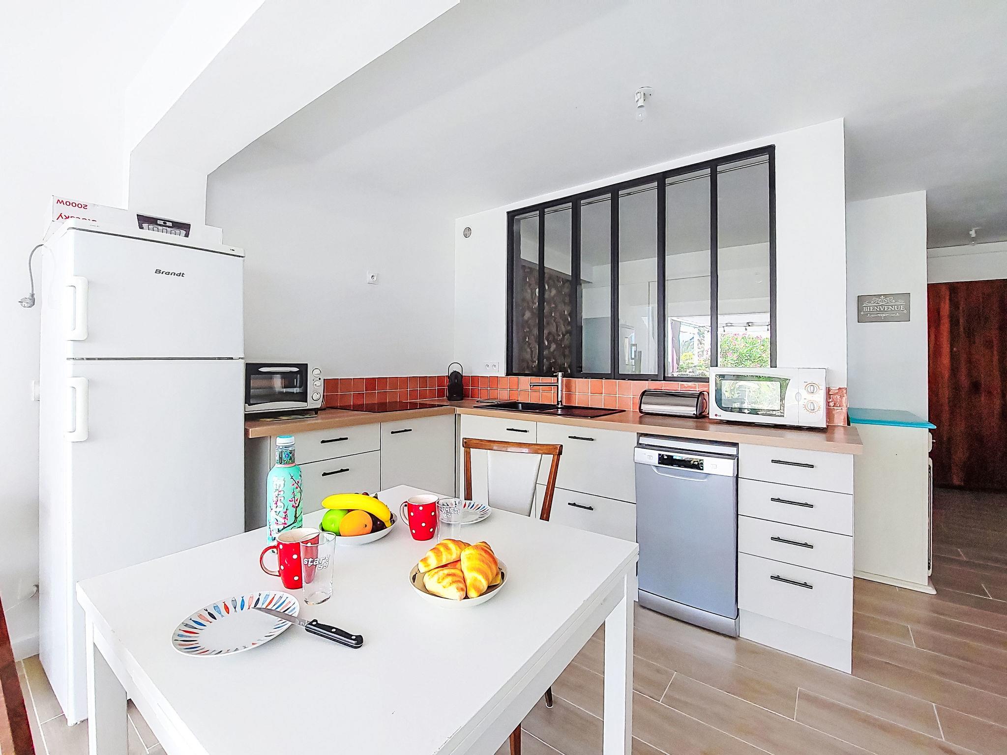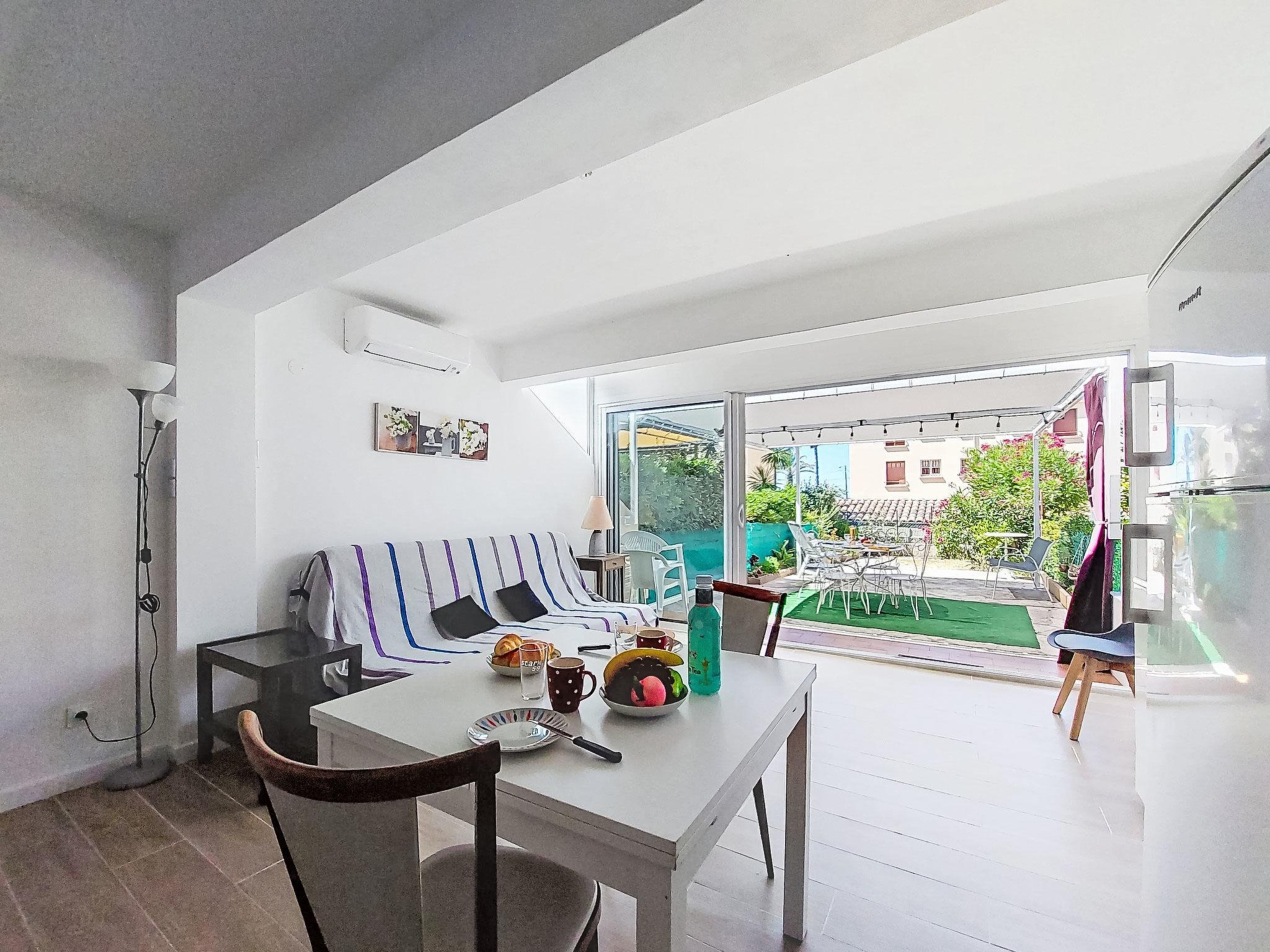 2-room apartment 35 m2, on the ground floor. Bright, comfortable and beautiful furnishings: living/dining room with 1 double sofabed (140 cm, length 200 cm), TV (flat screen), air conditioning. Exit to the terrace. 1 room with 1 french bed (140 cm, length 190 cm). Kitchenette (mini-oven, dishwasher, 3 induction hot plates, toaster, kettle, microwave, electric coffee machine). Shower/WC. Electric heating. Terrace 25 m2, south-east facing position. Terrace furniture, electric barbecue. Facilities: washing machine. Internet (WiFi, extra). Please note: non-smokers only. 1 small pet/ dog allowed. TV only FR. Smoke alarm. Offer by a private individual according to Art. 155, IV of CGI. 83112001795QC