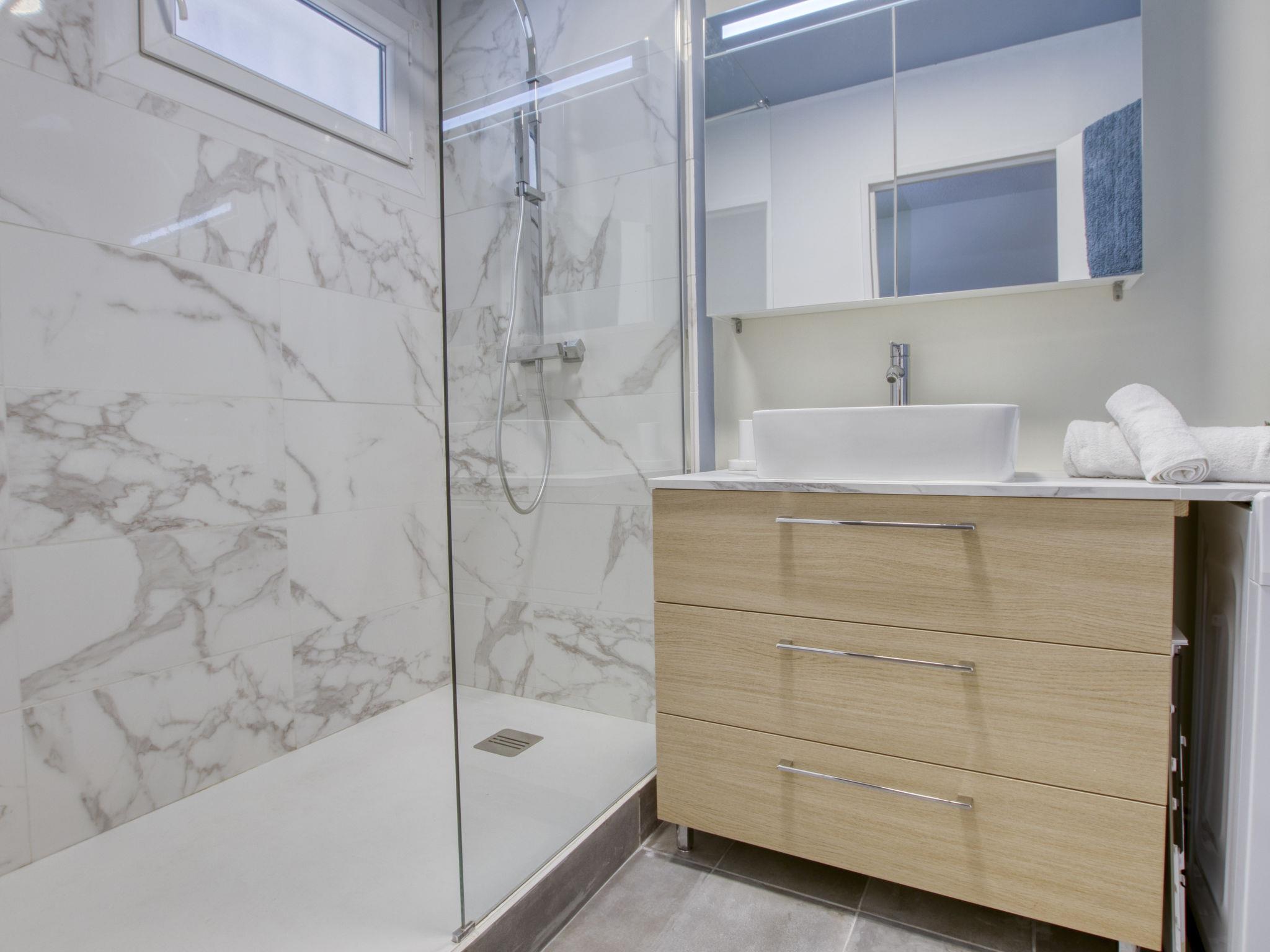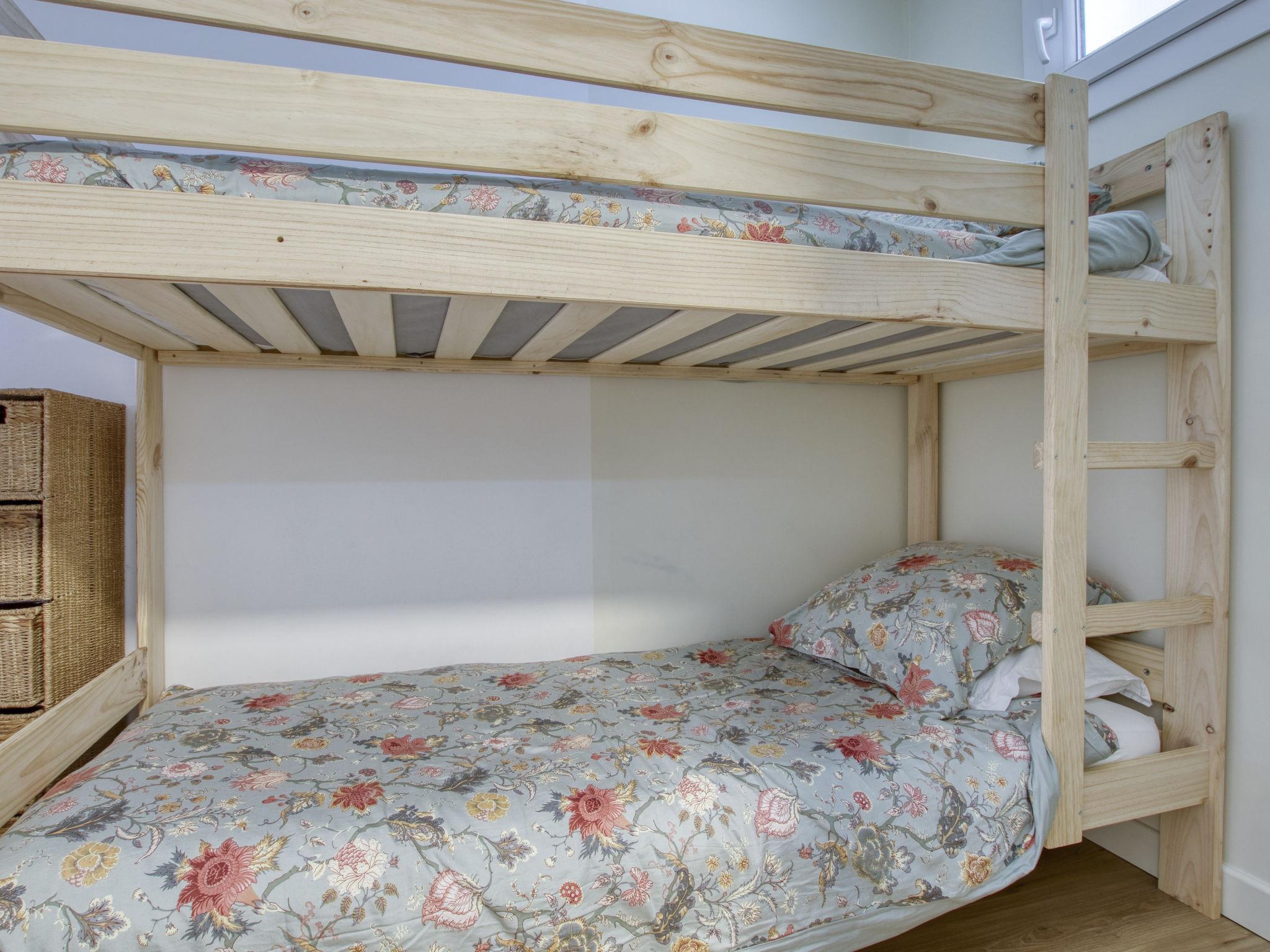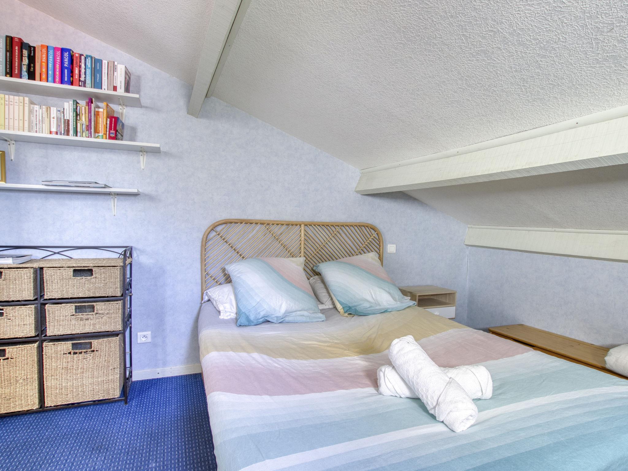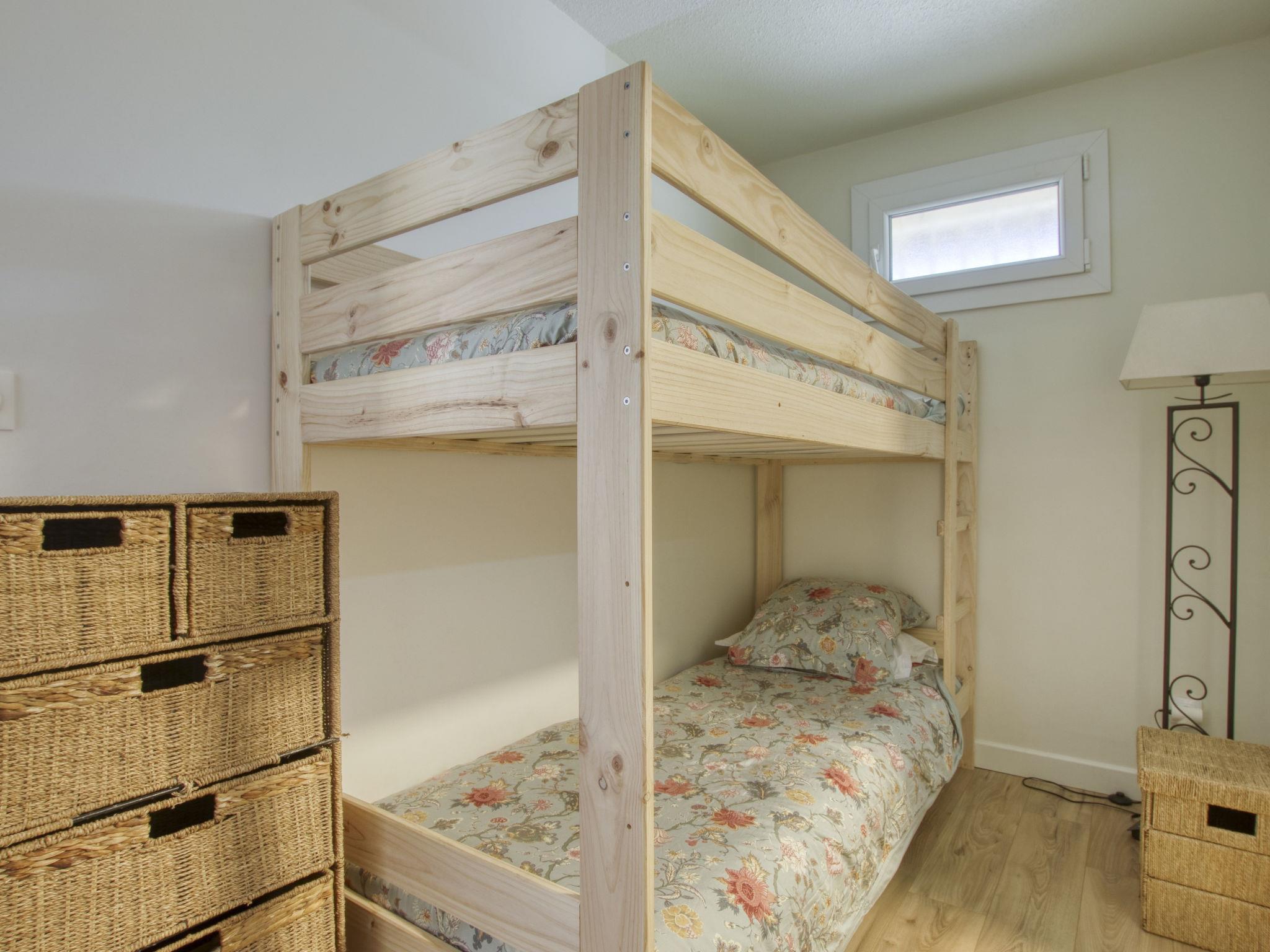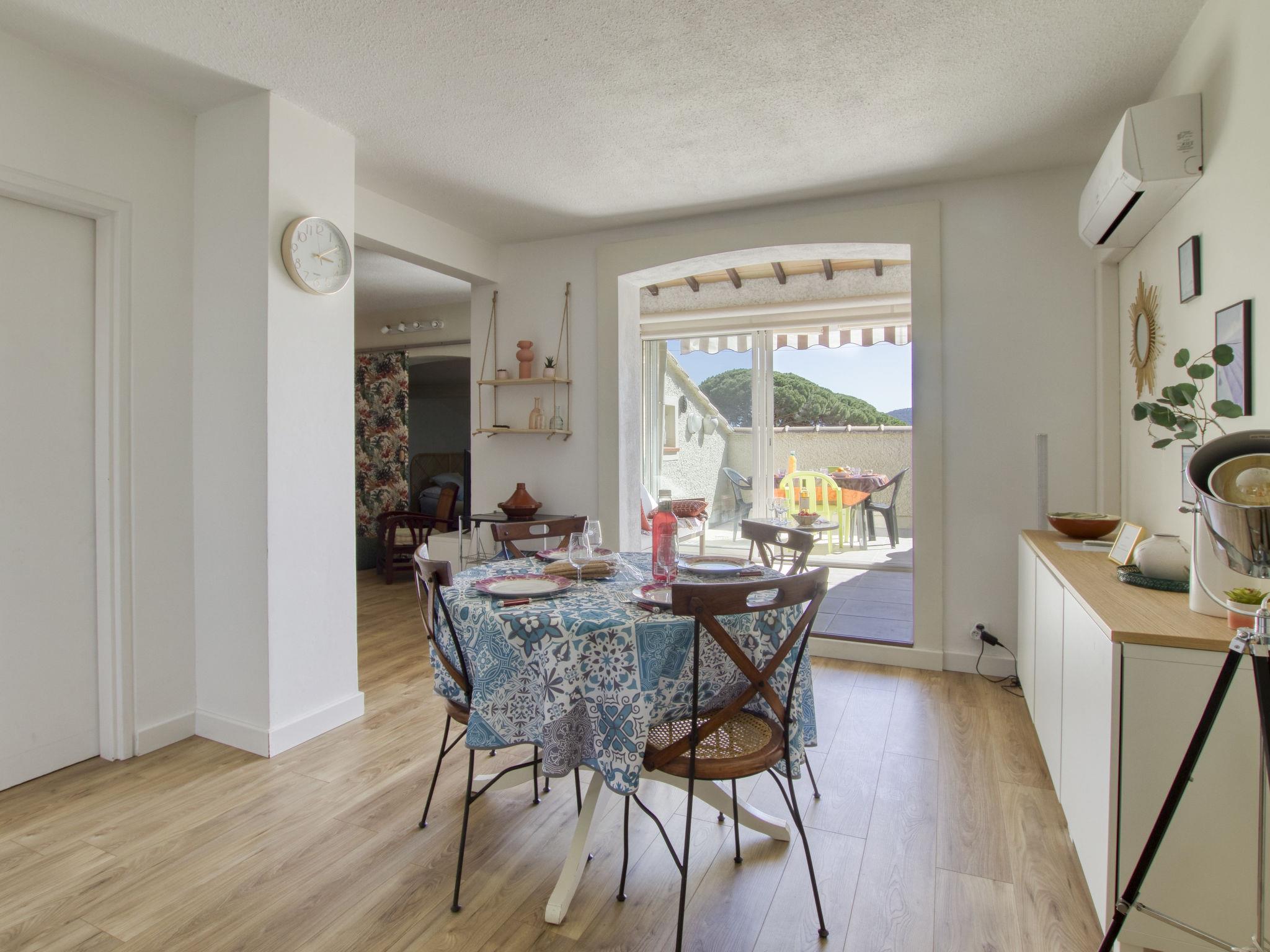 2-room apartment 51 m2 on 1st floor. Comfortable and beautiful furnishings: living/dining room with dining table and TV (flat screen), electric heating and air conditioning. Exit to the terrace. 1 room with sloping ceilings, ceiling height 110 - 240 cm with 1 french bed (140 cm, length 190 cm), electric heating. Alcove with 1 x 2 bunk beds (80 cm, length 190 cm). Open kitchen (oven, dishwasher, 4 induction hot plates, toaster, kettle, microwave, freezer, electric coffee machine, Capsules for coffee machine (Nespresso)). Shower, sep. WC. Forced-air heating. Terrace 15 m2. Terrace furniture. Distant view of the sea. Facilities: washing machine. Internet (WiFi, free). Parking space n 339. Please note: TV only FR. Smoke alarm. Instead of an enclosed bedroom, some sleeping areas are located in an open-plan area (gallery, alcove, etc.). Offer by a private individual according to Art. 155, IV of CGI. 83112000841S8