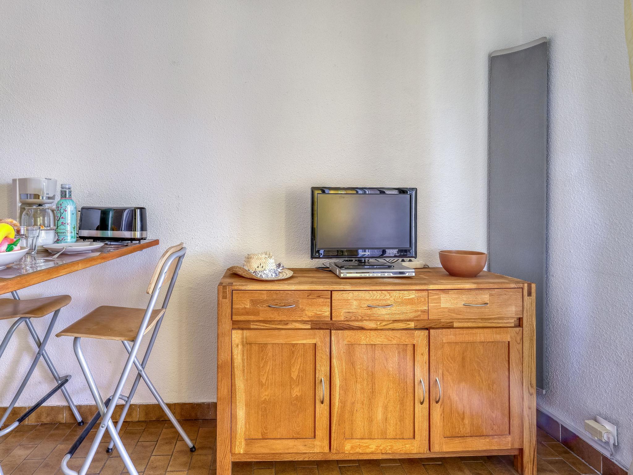 1-room studio 24 m2 on 1st floor. Comfortable and beautiful furnishings: entrance hall with 1 x 2 bunk beds (80 cm, length 190 cm). Living/dining room with 1 double sofabed (140 cm, length 190 cm), TV. Exit to the terrace. Kitchenette (2 ceramic glass hob hotplates, toaster, kettle, electric coffee machine, combination microwave). Shower/WC. Electric heating. Terrace 6 m2, roofed, south-east facing position. Terrace furniture. Facilities: washing machine. Internet (WiFi, extra). Parking space n 108. Please note: smoke alarm. Offer by a private individual according to Art. 155, IV of CGI. 831120014876O