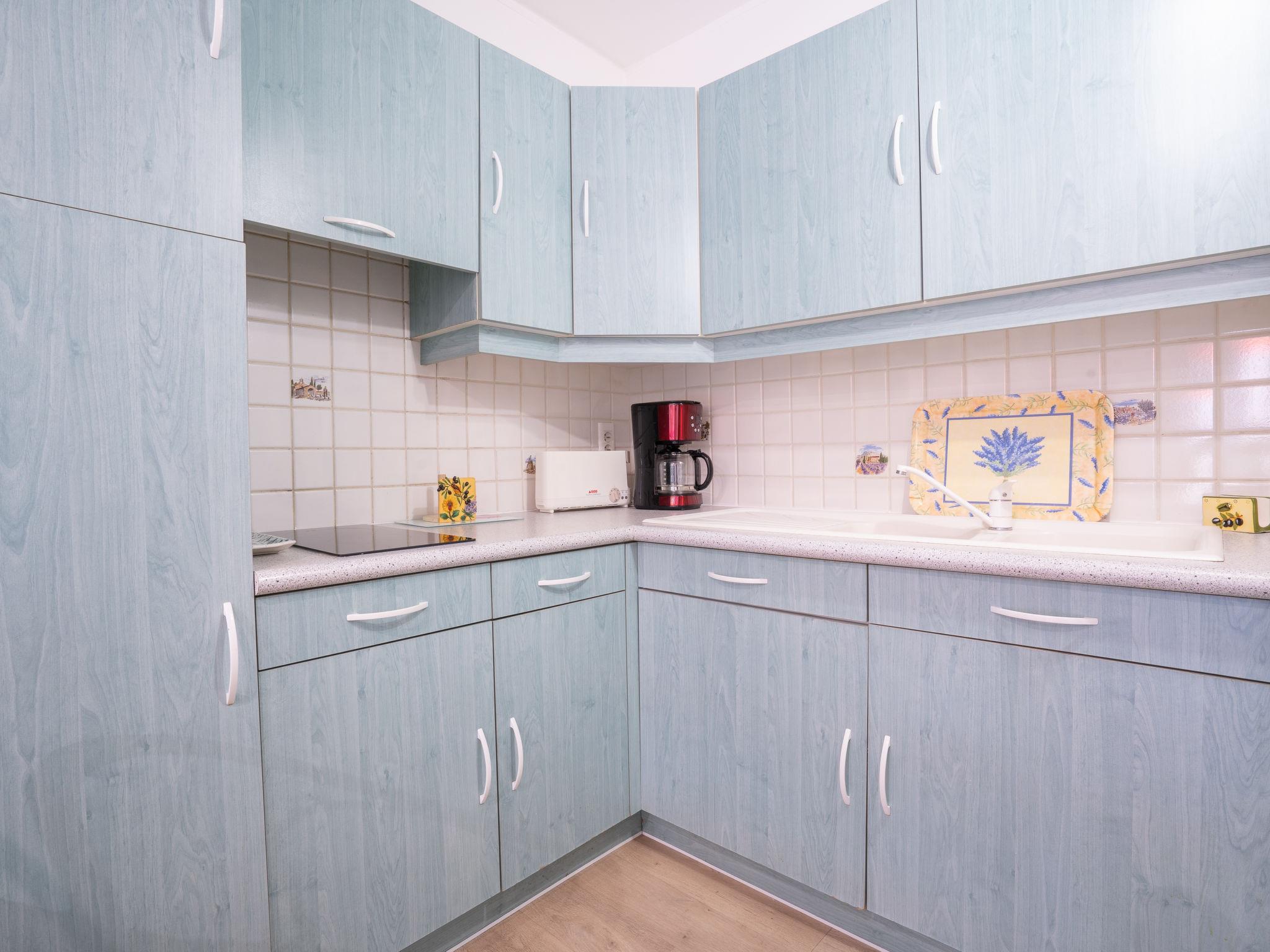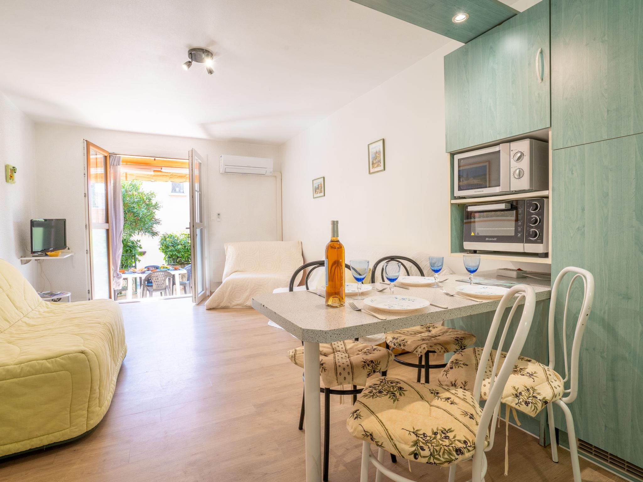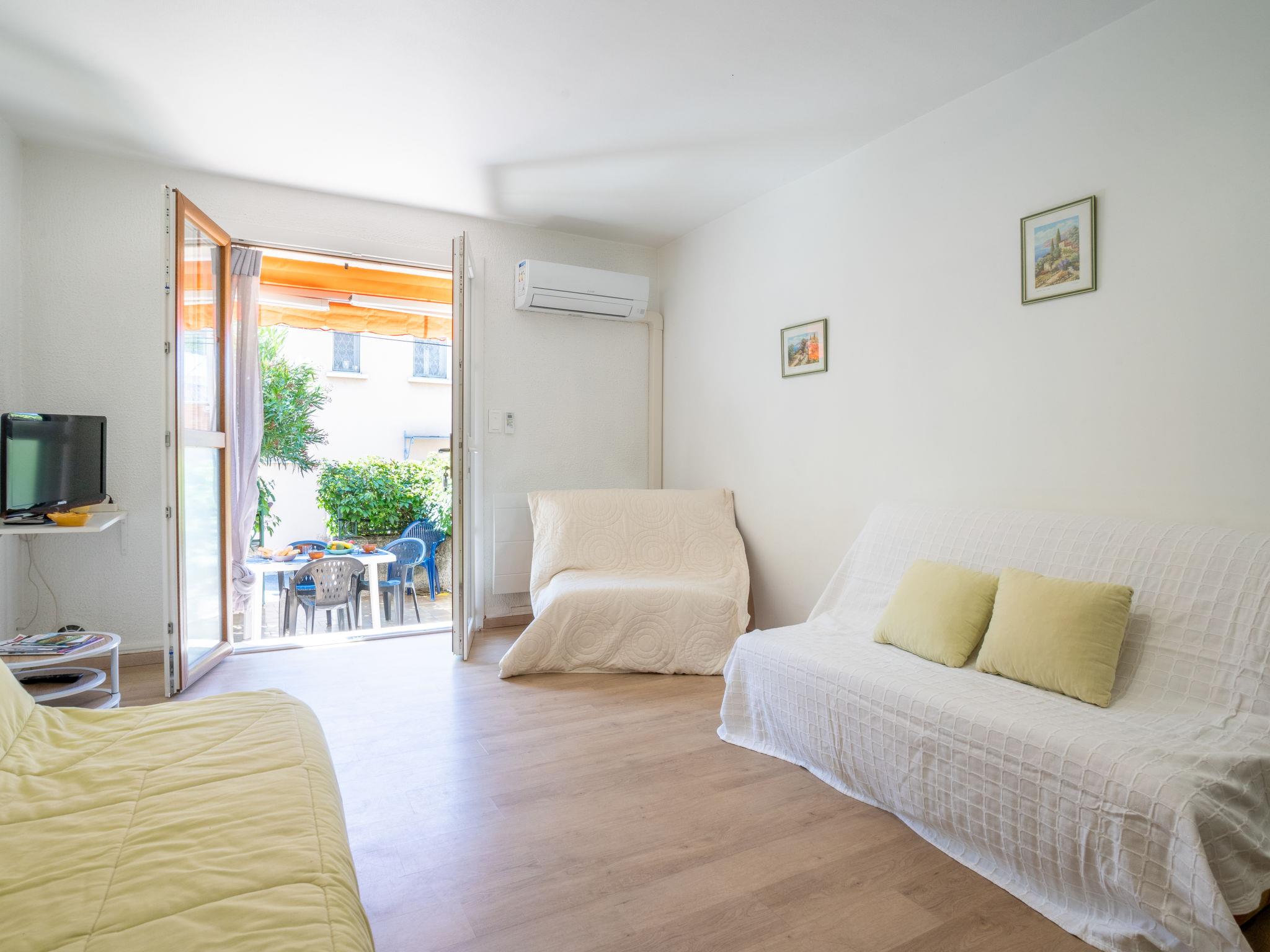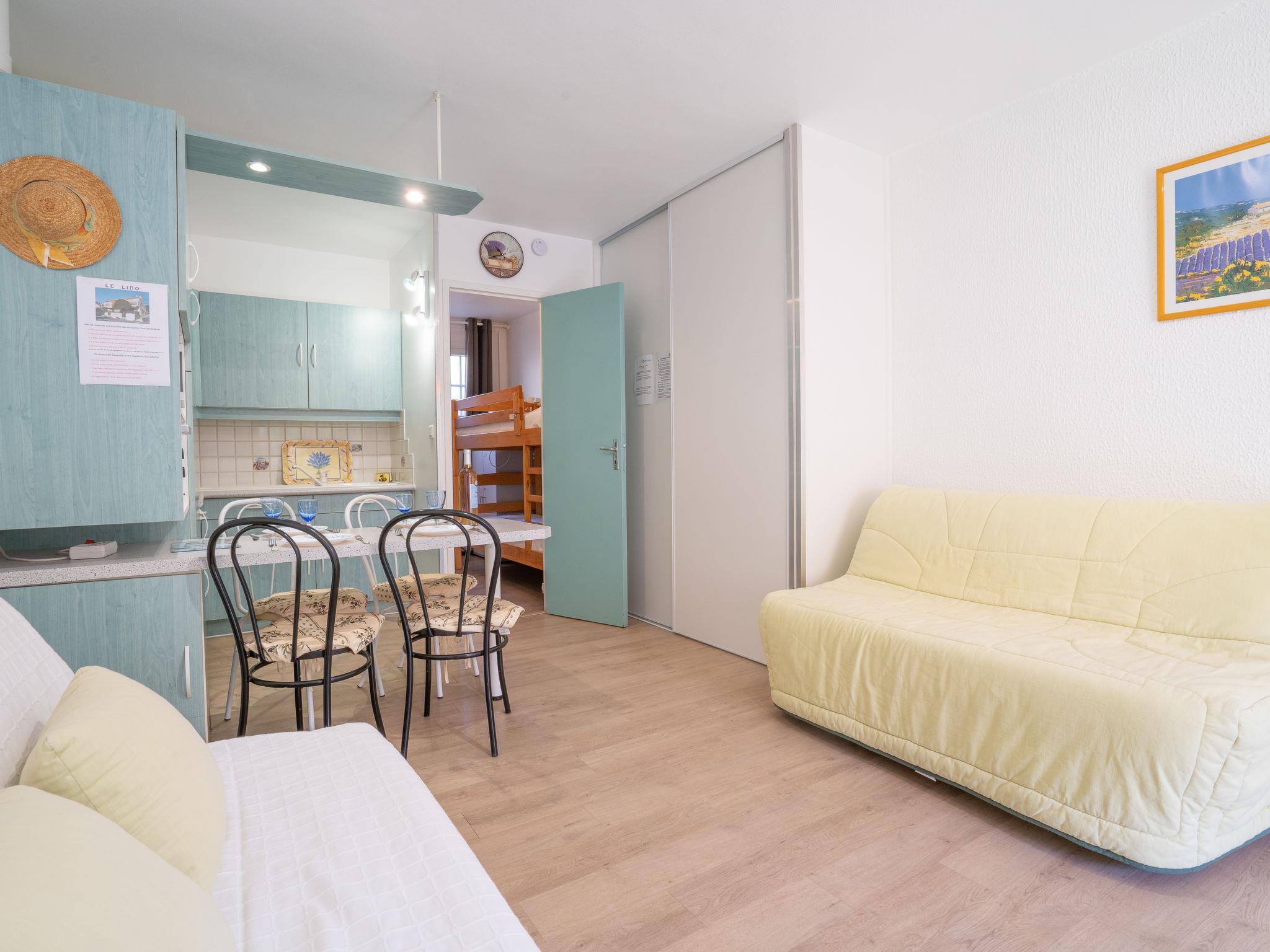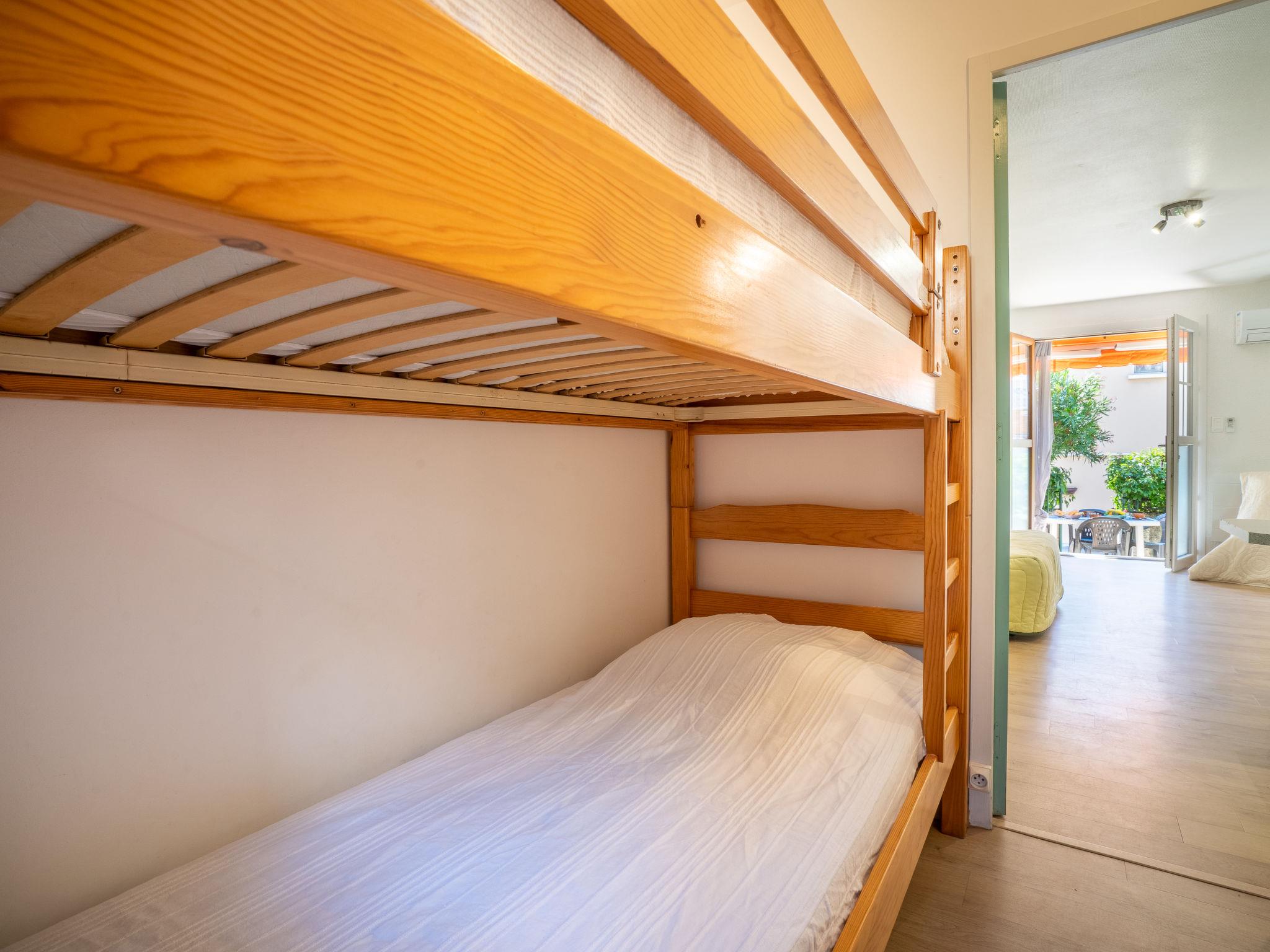 1-room apartment 30 m2, on the upper ground floor. Living/dining room with 1 double sofabed (140 cm, length 190 cm), TV (flat screen), air conditioning. Exit to the terrace. Sleeping alcove with 1 x 2 bunk beds (80 cm, length 190 cm). Open kitchen (mini-oven, 2 ceramic glass hob hotplates, toaster, kettle, microwave, freezer, electric coffee machine). Bath/WC. Forced-air heating. Terrace 13 m2, south-east facing position. Terrace furniture. Facilities: washing machine. Internet (WiFi, extra). Parking space n 3. Please note: suitable for families. TV only FR. Smoke alarm. Instead of an enclosed bedroom, some sleeping areas are located in an open-plan area (gallery, alcove, etc.). 83112 000189 09