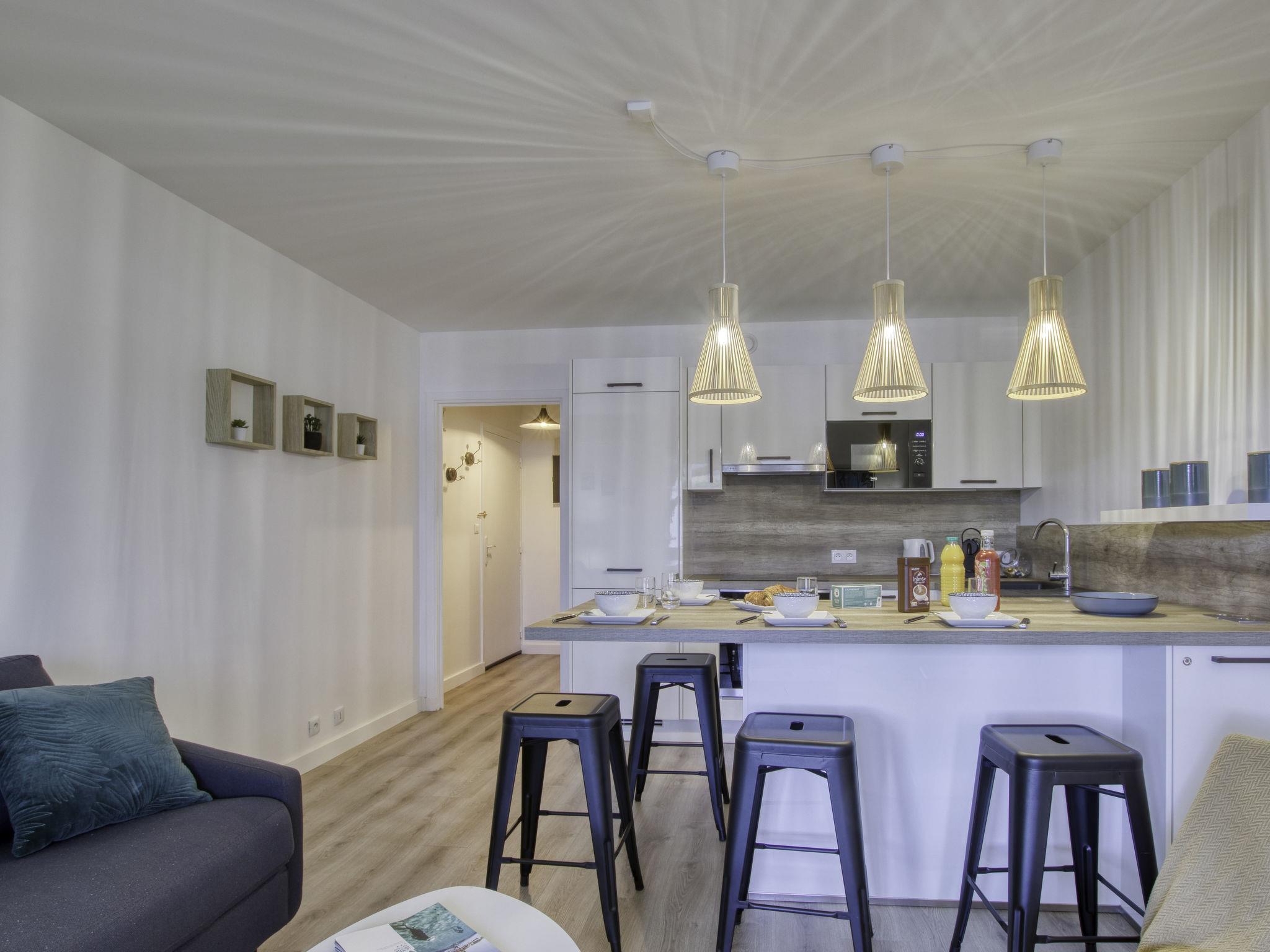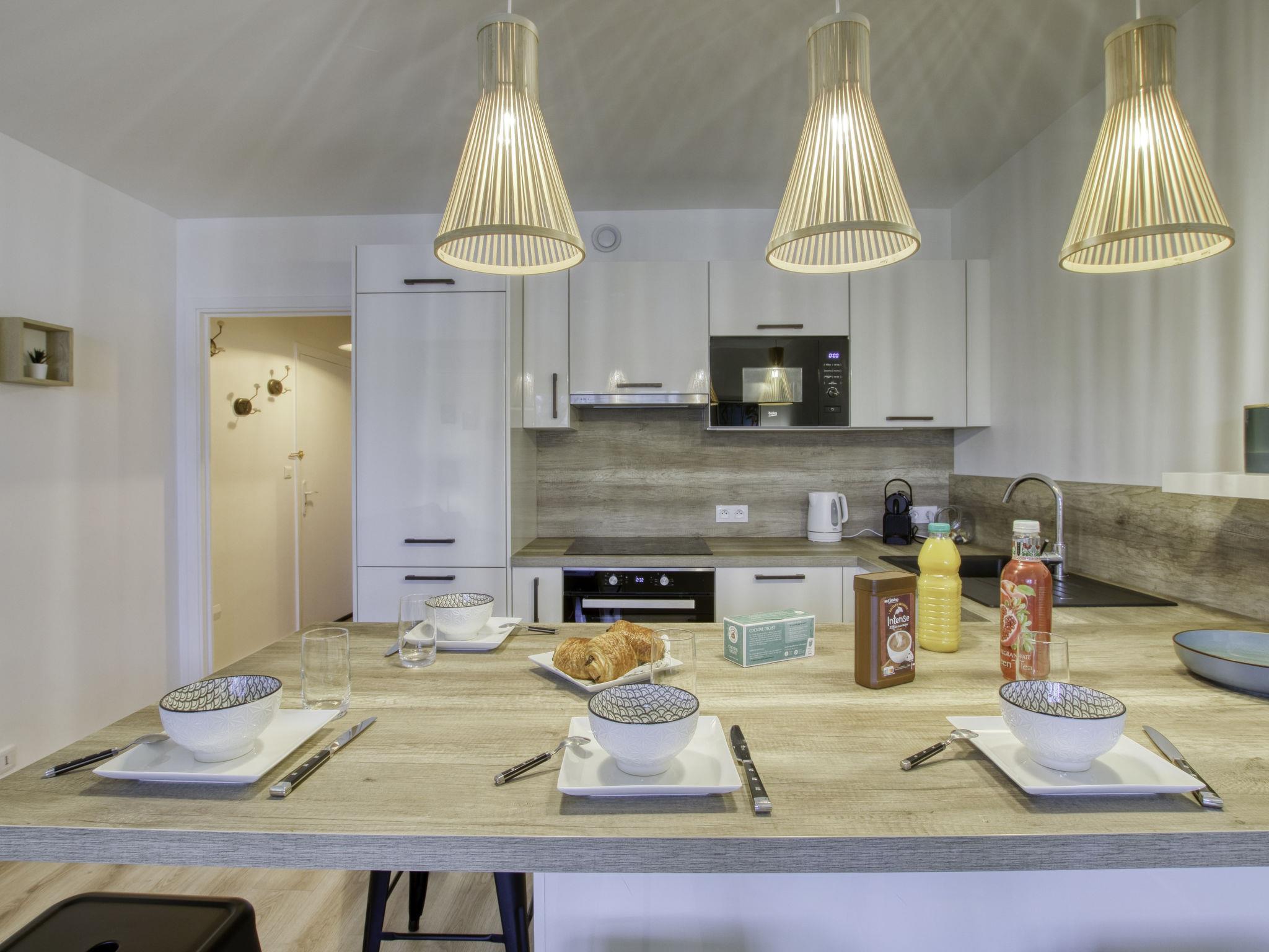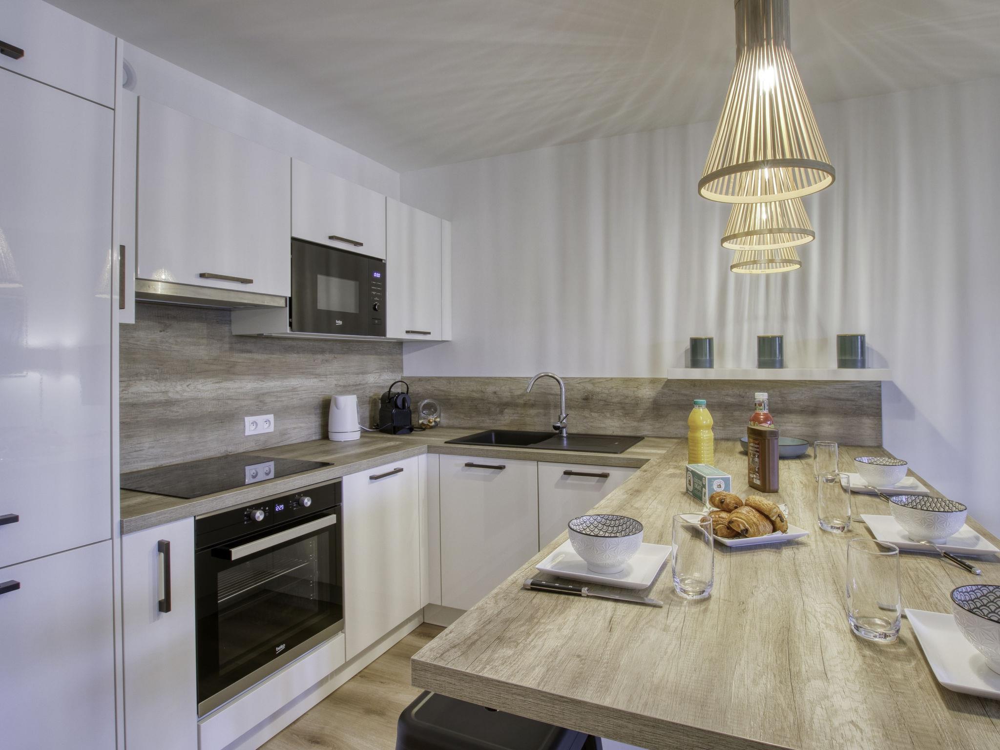 2-room apartment 37 m2 on 1st floor. Fully renovated in 2021, comfortable and beautiful furnishings: living/dining room with 1 double sofabed (140 cm, length 190 cm), TV (flat screen), air conditioning. Exit to the terrace. 1 room with 2 beds (90 cm, length 190 cm). Open kitchen (oven, dishwasher, 3 ceramic glass hob hotplates, toaster, kettle, microwave, electric coffee machine, Capsules for coffee machine (Nespresso + Filtre) extra). Shower, sep. WC. Forced-air heating. Terrace 7 m2, roofed, south-east facing position. Terrace furniture, electric barbecue. Facilities: washing machine, children's high chair, baby cot for up to 2 year olds. Internet (WiFi, extra). Parking at the house. Please note: TV only FR. Smoke alarm. Offer by a private individual according to Art. 155, IV of CGI. 83112000662FU