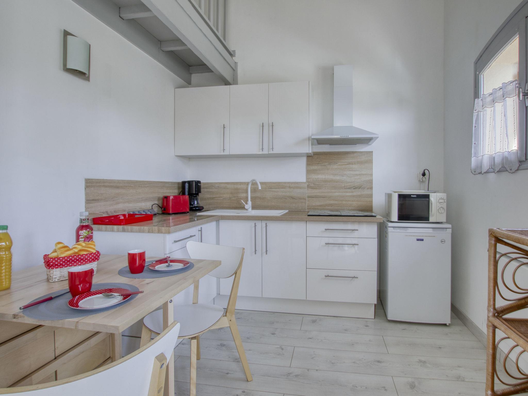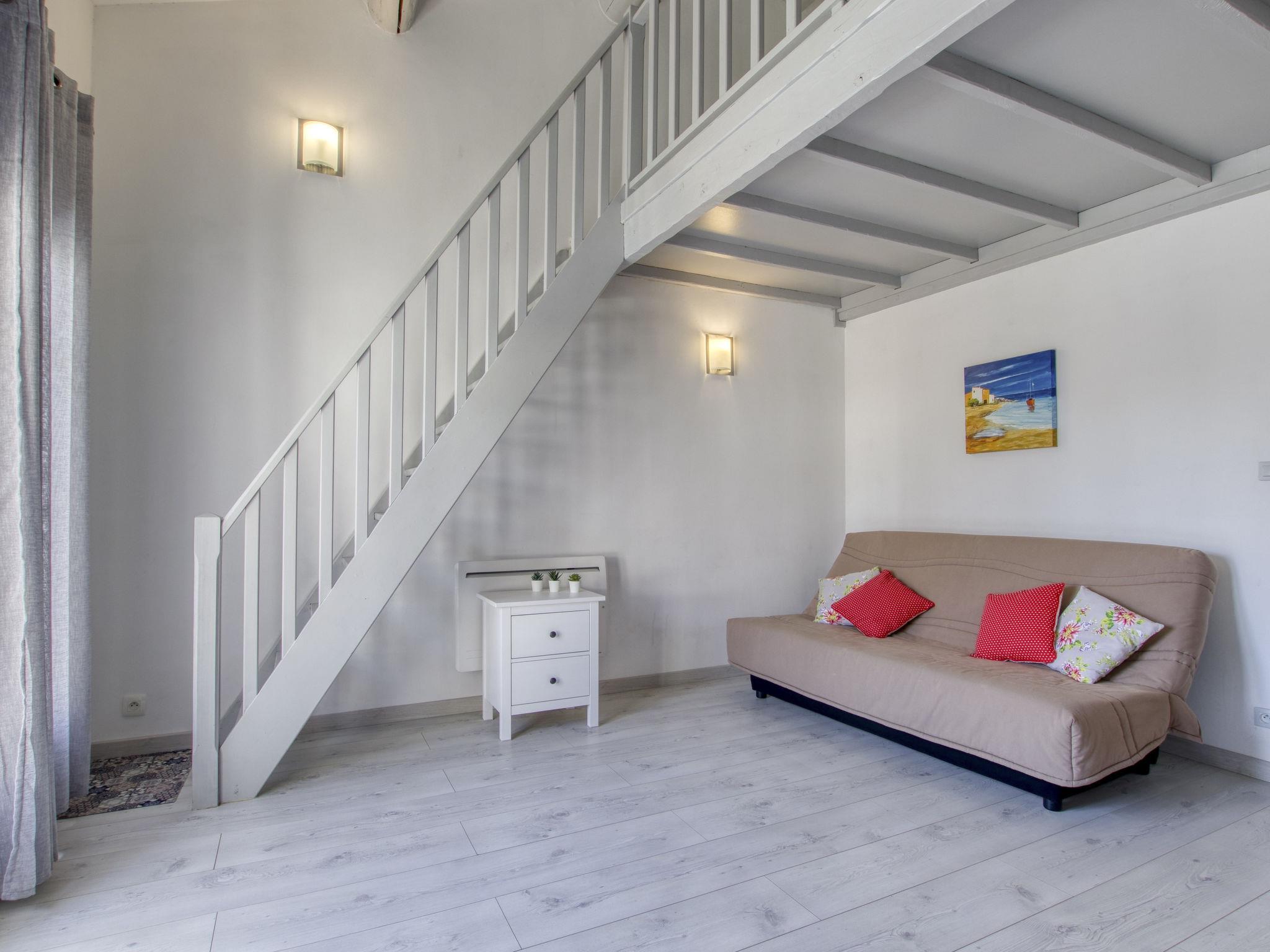 1-room apartment 38 m2 on 2 levels on 1st floor. Renovated in 2021, comfortable and beautiful furnishings: living/dining room with 1 double sofabed (130 cm, length 190 cm), TV (flat screen). Exit to the terrace. Kitchenette (4 induction hot plates, toaster, kettle, microwave, electric coffee machine). Shower, sep. WC. Electric heating. Upper floor: (steep stair) open gallery with sloping ceilings with 2 beds (90 cm, length 190 cm). Terrace 6 m2. Terrace furniture. Facilities: washing machine. Internet (WiFi, extra). Parking at the house. Please note: non-smokers only. TV only FR. Smoke alarm. Instead of an enclosed bedroom, some sleeping areas are located in an open-plan area (gallery, alcove, etc.). Offer by a private individual according to Art. 155, IV of CGI. 83112 001270 U6