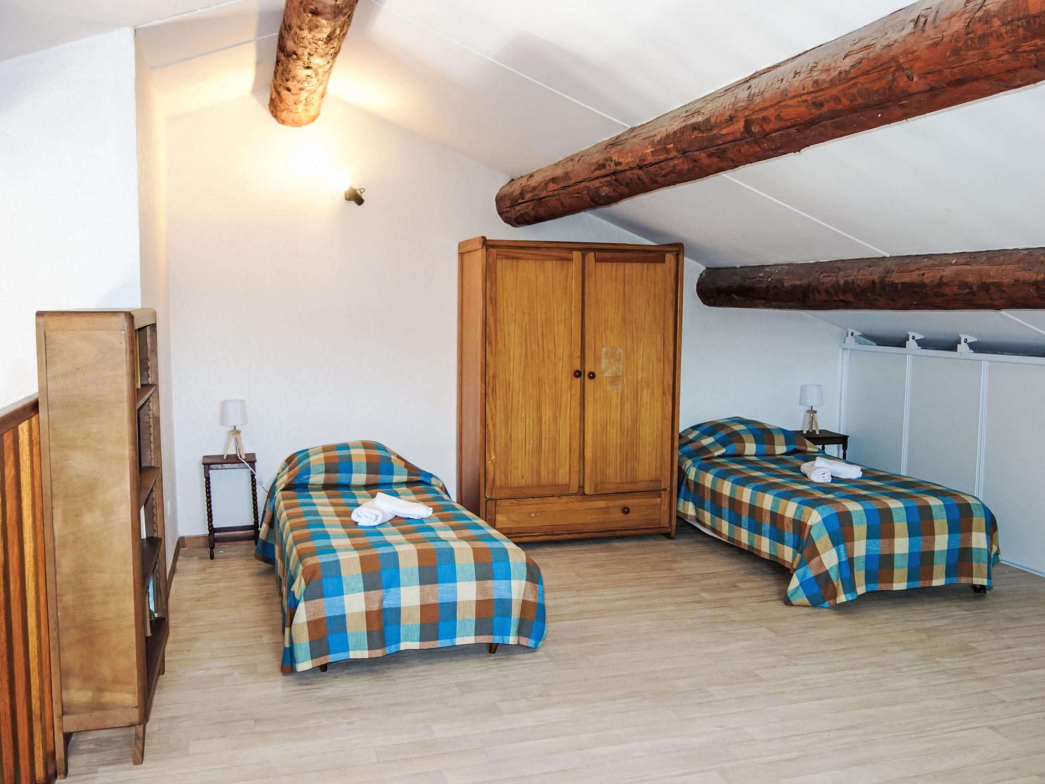 3-room apartment 77 m2 on 2nd floor. Comfortable and beautiful furnishings: living/dining room with TV (flat screen). Exit to the terrace. 1 room with 1 bed (100 cm, length 190 cm), 1 sleeping facility (80 cm, length 190 cm). Kitchen (mini-oven, dishwasher, 4 ceramic glass hob hotplates, toaster, microwave, freezer, electric coffee machine, Capsules for coffee machine (Dolce Gusto)). Exit to the balcony. Shower, sep. WC. Electric heating. Upper floor: (steep stair) large gallery with sloping ceilings, ceiling height 85 - 190 cm with 3 beds (80 cm, length 190 cm). Terrace 8 m2. Terrace furniture. Facilities: washing machine. Internet (WiFi, extra). Parking at the house. Please note: maximum 1 small pet/ dog allowed. TV only FR. Smoke alarm. Offer by a private individual according to Art. 155, IV of CGI. 83112001641ON