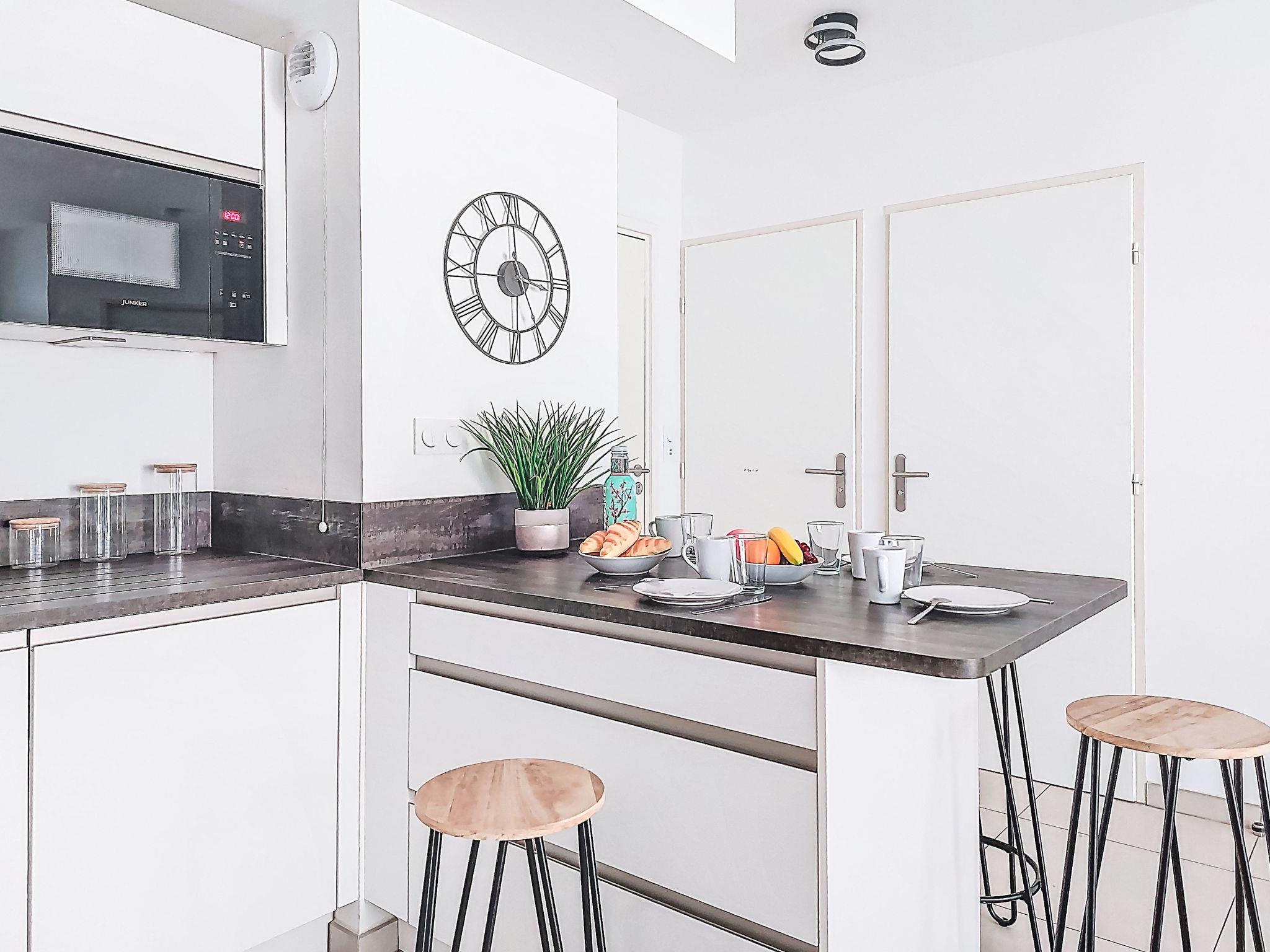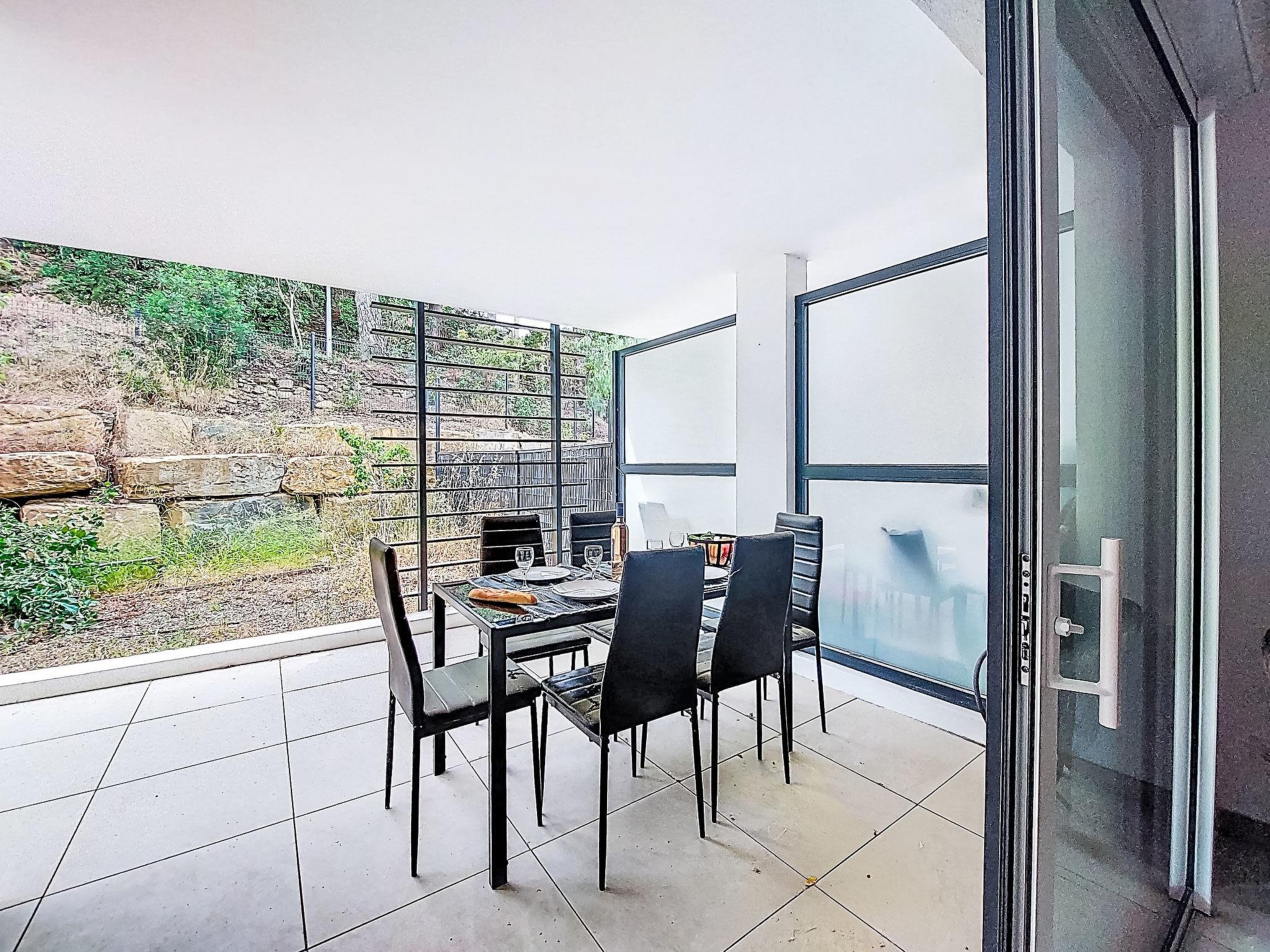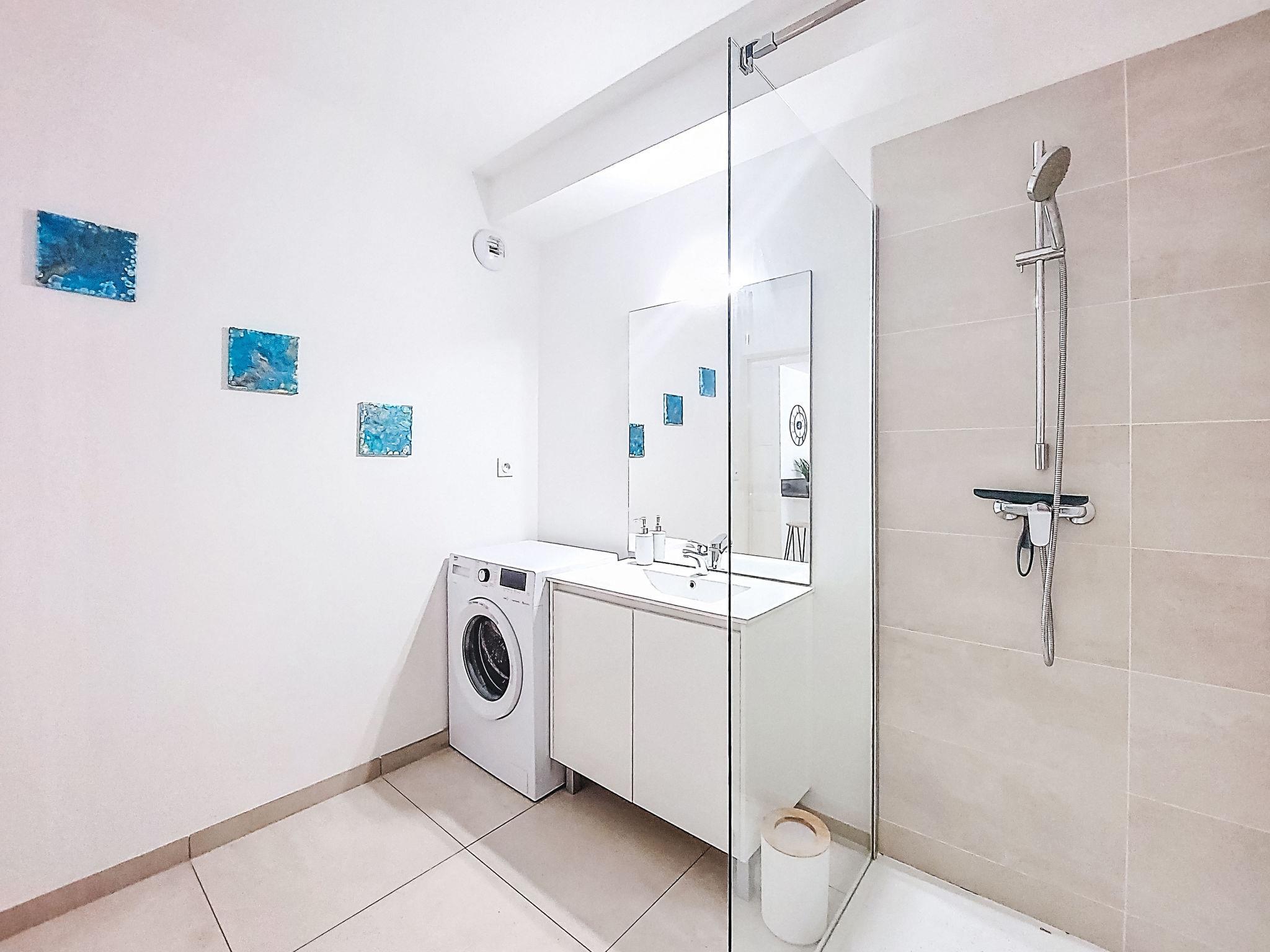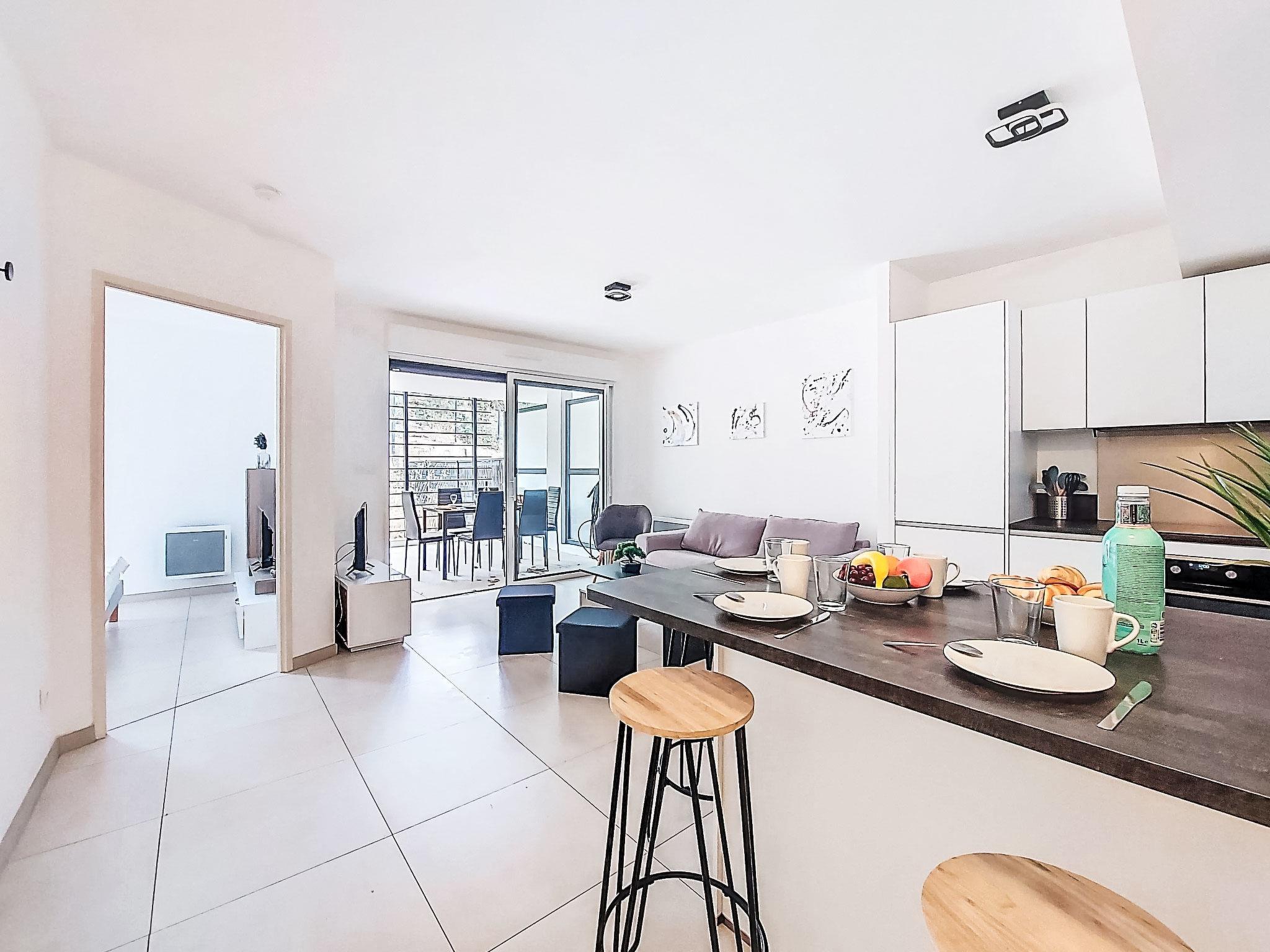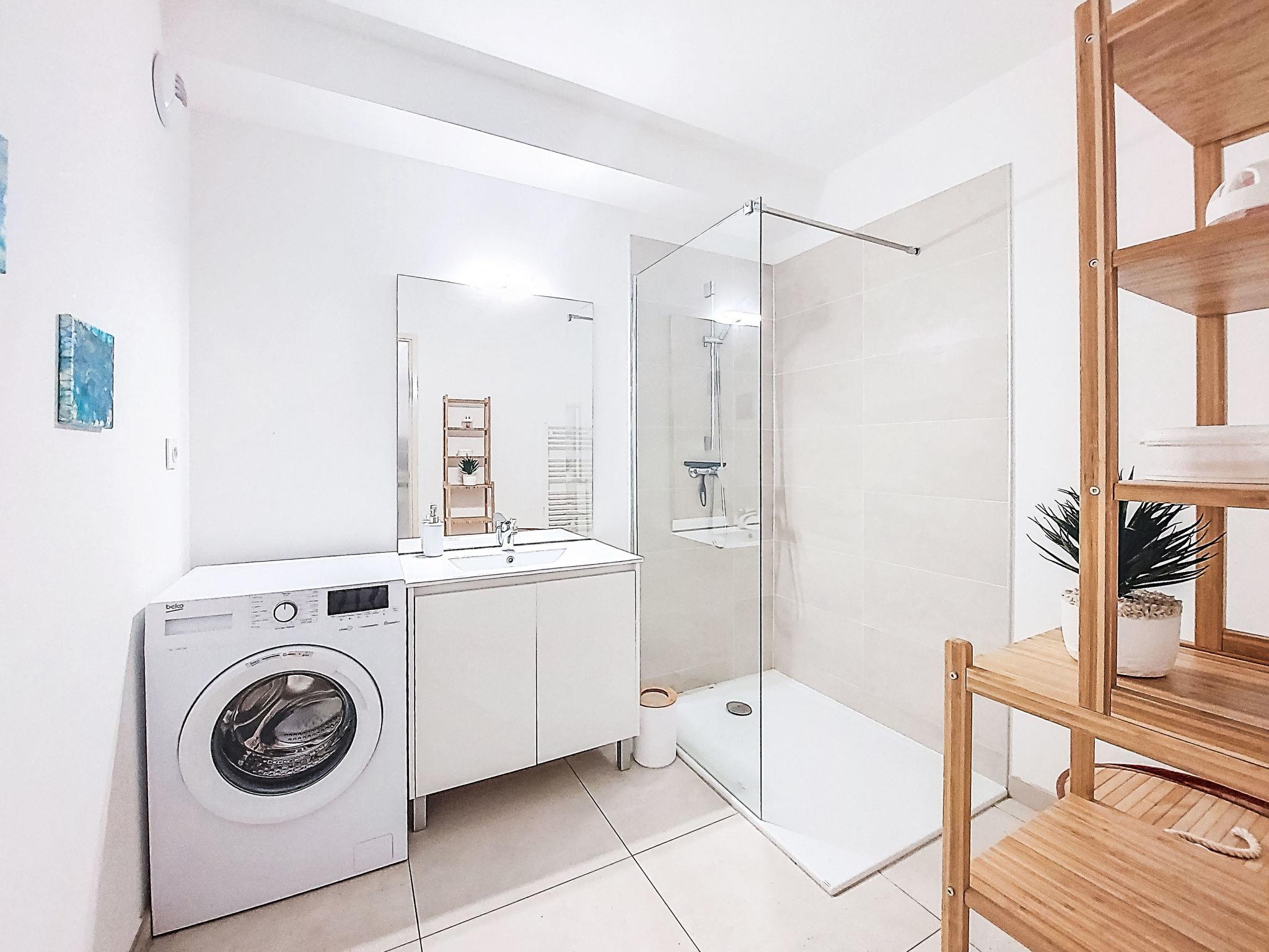 2-room apartment 41 m2, on the upper ground floor. Bright, comfortable and beautiful furnishings: living/dining room with 1 sofabed (140 cm, length 190 cm), TV (flat screen). Exit to the terrace. 1 room with 1 french bed (140 cm, length 200 cm), TV. Exit to the garden. Open kitchen (oven, dishwasher, 3 induction hot plates, toaster, kettle, freezer, electric coffee machine, Capsules for coffee machine (Nespresso) extra). Shower, sep. WC. Electric heating. Terrace 13 m2, garden 34 m2. Terrace furniture. Facilities: washing machine. Internet (WiFi, extra). Parking space n 18 (roofed, 1 car). Please note: non-smokers only. TV only FR. Smoke alarm. Offer by a private individual according to Art. 155, IV of CGI. 83112001752EZ