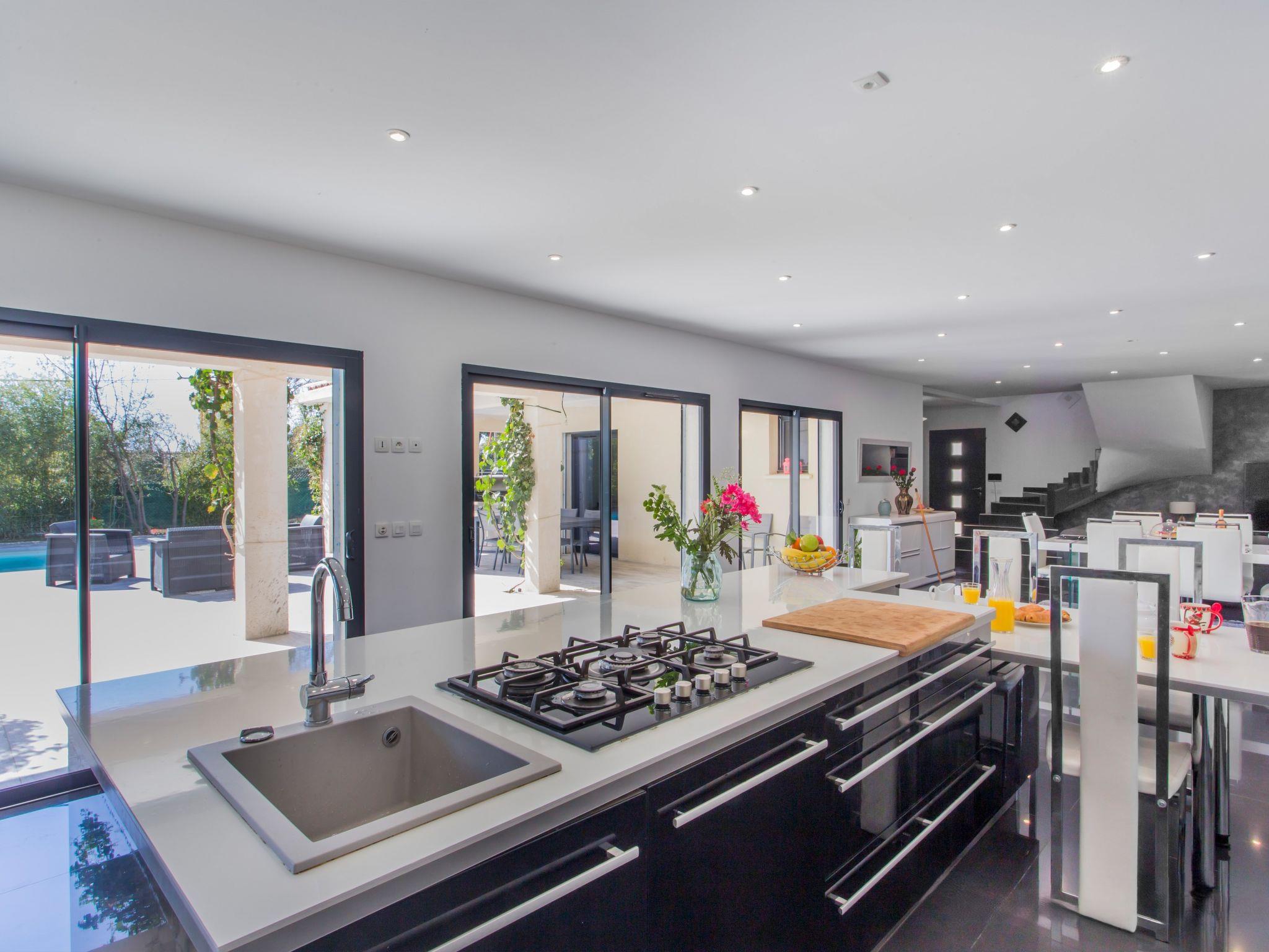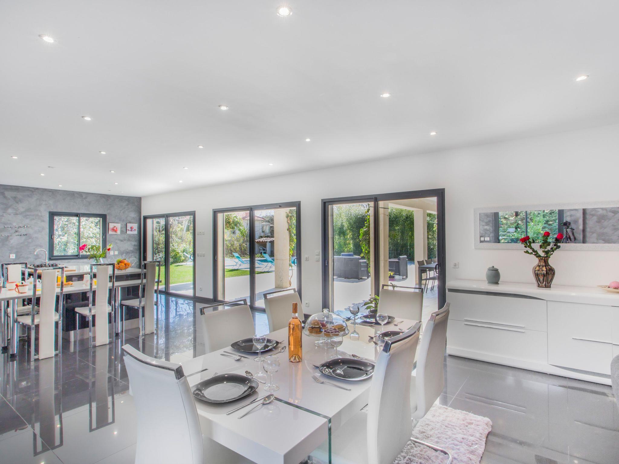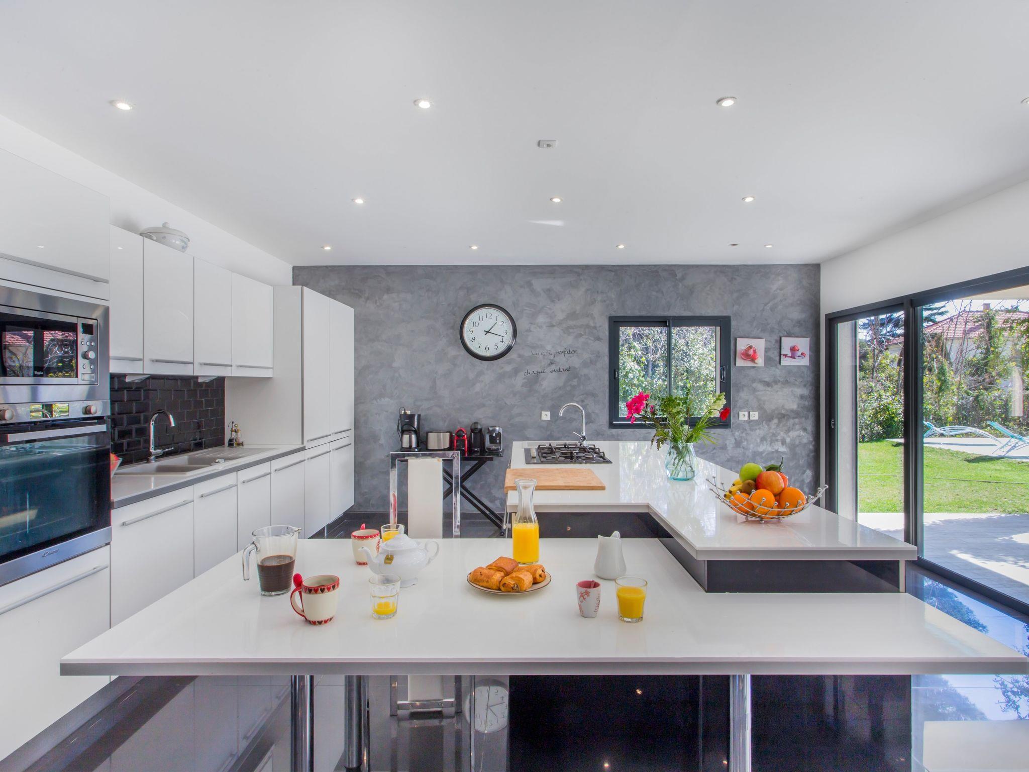 "Villa", 7-room villa 250 m2 on 2 levels. Comfortable and beautiful furnishings: living/dining room with 1 double sofabed (200 cm, length 200 cm), dining table and TV. 1 room with Dressing room with 1 french bed (160 cm, length 200 cm), shower. Large, open kitchen (oven, dishwasher, 4 induction hot plates, toaster, kettle, microwave, freezer, electric coffee machine). Exit to the terrace. Sep. WC. Upper floor: 1 room with 2 beds (90 cm, length 190 cm). 1 room with 1 french bed (160 cm, length 200 cm). Exit to the balcony. 1 room with 1 french bed (140 cm, length 190 cm), shower. Bath/shower, sep. WC. Electric heating, air-conditioning. Large terrace roofed. Terrace furniture, balcony furniture, barbecue, deck chairs (6). Facilities: washing machine, iron, baby cot for up to 3 year olds. Internet (WiFi). Please note: non-smoking house. Smoke alarm. The pool mentioned in the description is for private use. Studio adjoining the house comprising: living room with double sofa bed (140 x 190cm) flat screen TV, dining table, kitchen area with 2 hotplates, kettle, electric coffee maker, microwave oven, 1 bedroom with 1 double bed (140 x 190) Shower/WC. Offer by a private individual according to Art. 155, IV of CGI. 83112000148LV
