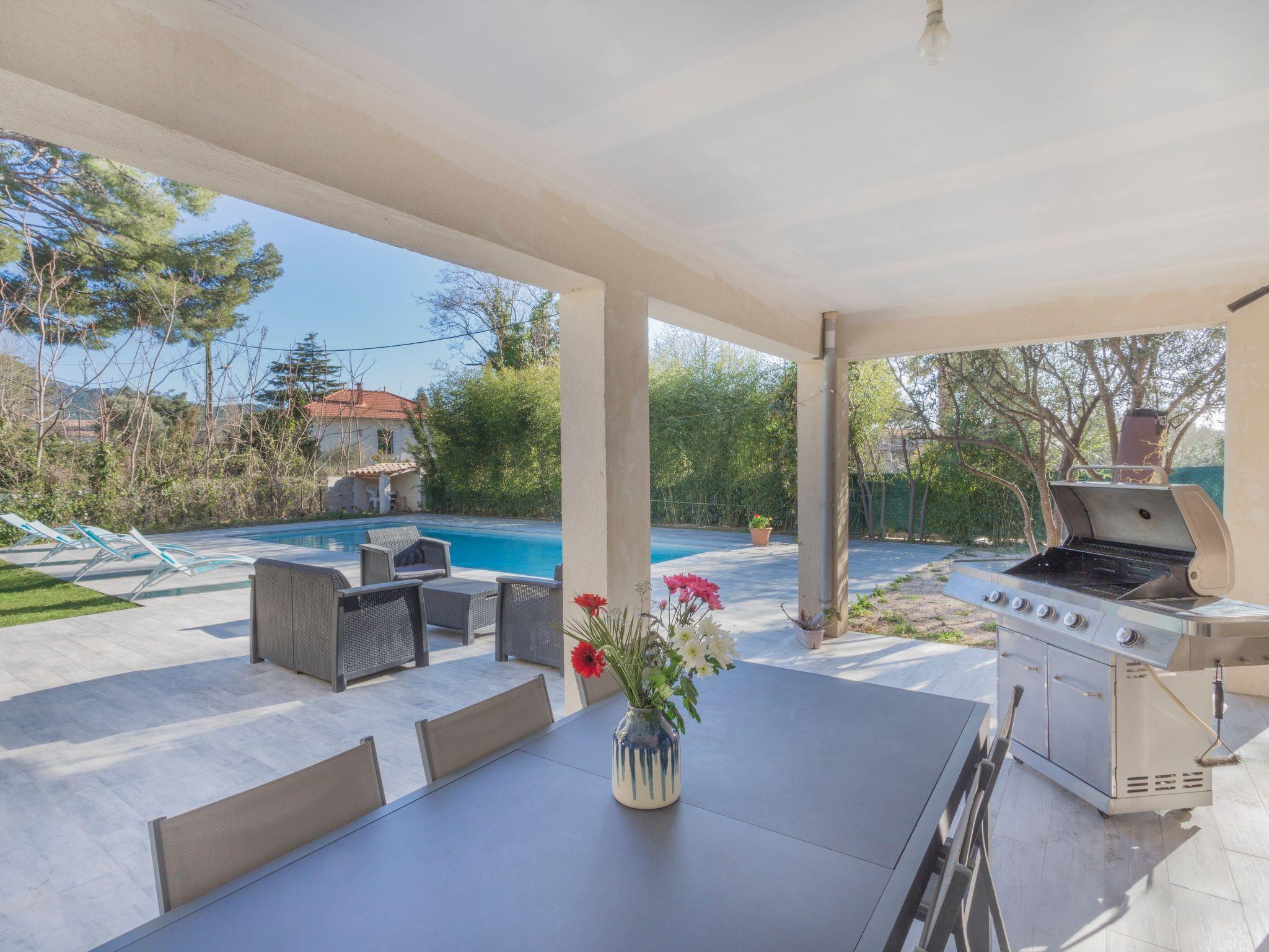 2 km from the centre of Saint Cyr sur Mer, 9 km from the centre of La Ciotat, 10 km from the centre of Bandol, in the residential district, 400 m from the sea. Private: well-kept garden 700 m2 (fenced), swimming pool angular (10 x 5 m, depth 120 - 168 cm, seasonal availability: 01.Apr. - 01.Nov.). Parking (for 3 cars) on the premises. Shop, restaurant, bar, bakery, café 400 m, bus stop 350 m, railway station "Saint Cyr" 1.6 km, sandy beach "Les Lecques" 400 m. Sports harbour 1 km. Nearby attractions: Aqualand Saint Cyr 1.5 km, Calanques de Cassis, Iles de Porquerolles, Iles des Embiez. Hiking paths: Parc National des calanques. The owner does not accept any youth groups. Pool equipped with a safety cover Noise-sensitive environment Parties prohibited. balcony without railings.