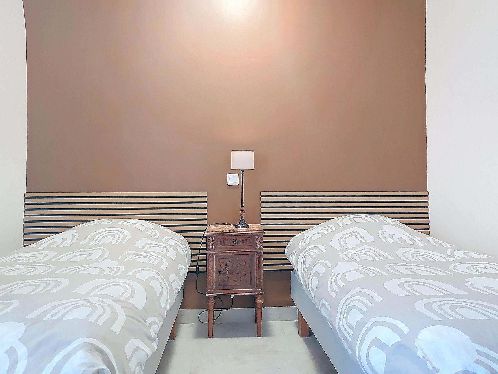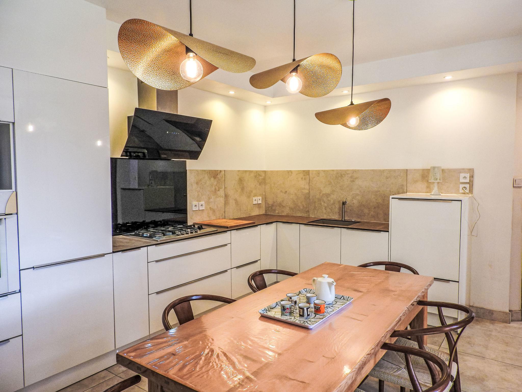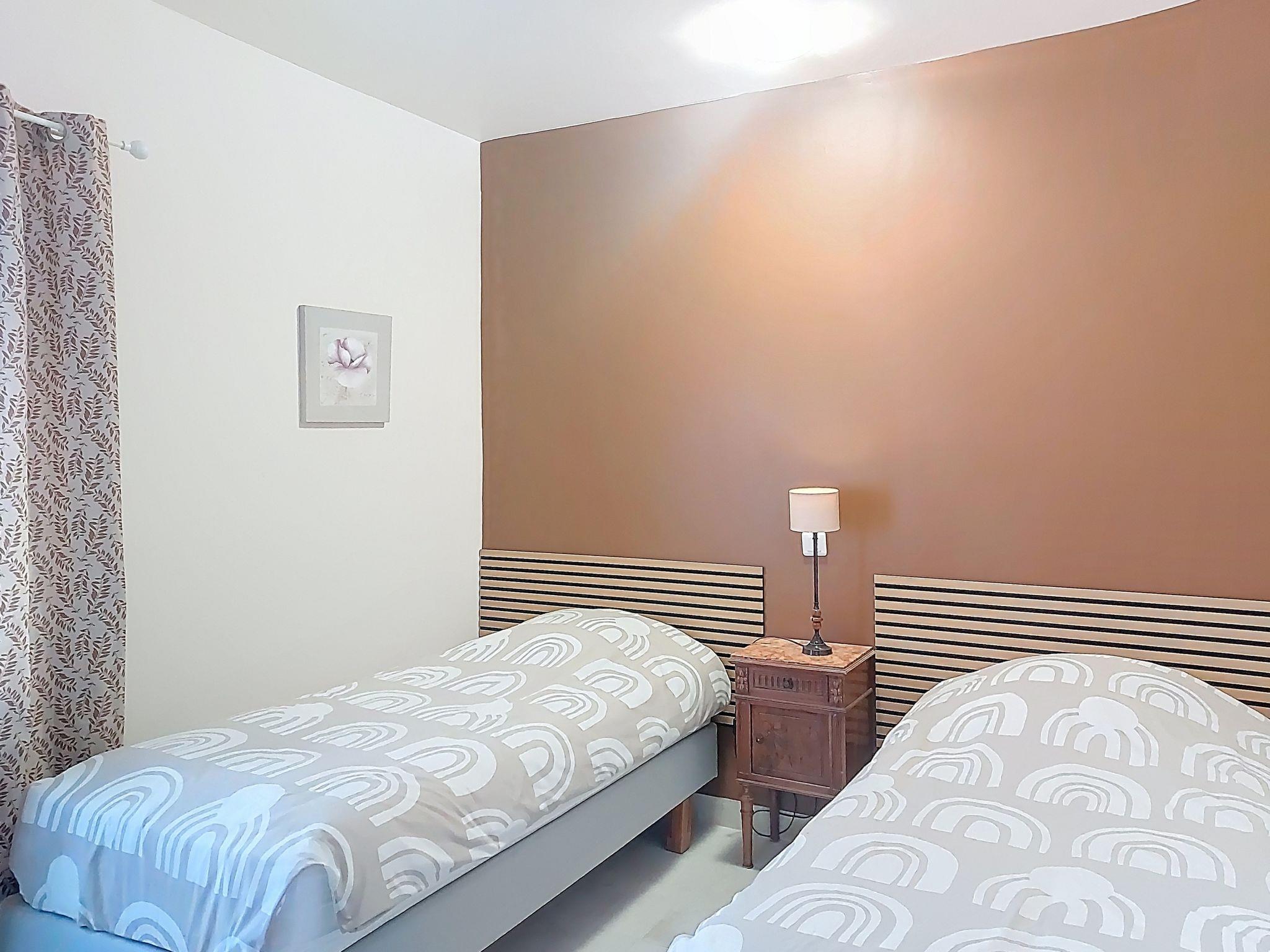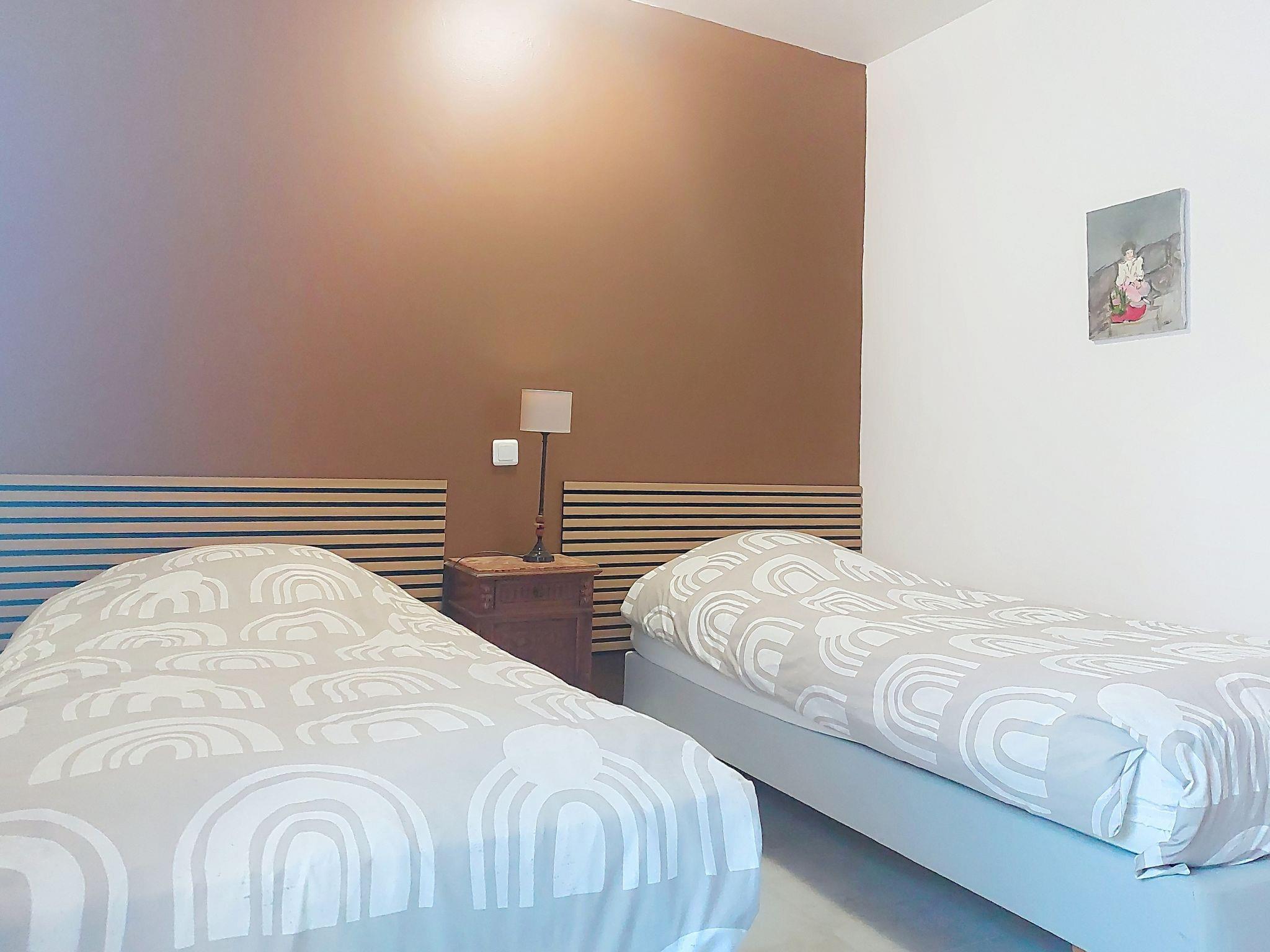 "La Bastide Neuve", 5-room apartment 100 m2, on the ground floor. Beautiful and cosy furnishings: living room with open-hearth fireplace (only for decoration), satellite TV and wood-burning stove. Exit to the terrace. 1 room with 1 french bed (160 cm). Exit to the terrace. 1 room with 1 french bed (160 cm). 1 room with 2 beds. Studio with 1 french bed (160 cm), shower/WC. Kitchen (oven, dishwasher, 5 gas rings, toaster, kettle, microwave, freezer, electric coffee machine) with dining table. Shower, sep. WC. Terrace. Terrace furniture, barbecue, deck chairs (6). Beautiful view of the garden and the countryside. Facilities: washing machine, children's high chair, baby cot. Internet (WiFi, free). Please note: one double bedroom is outside the apartment. Non-smoking house. Smoke alarm. No internal connecting door between the separated properties. When there are less than the maximum number of guests staying at the property, not all of the bedrooms will be available for use. 83112000399NQ