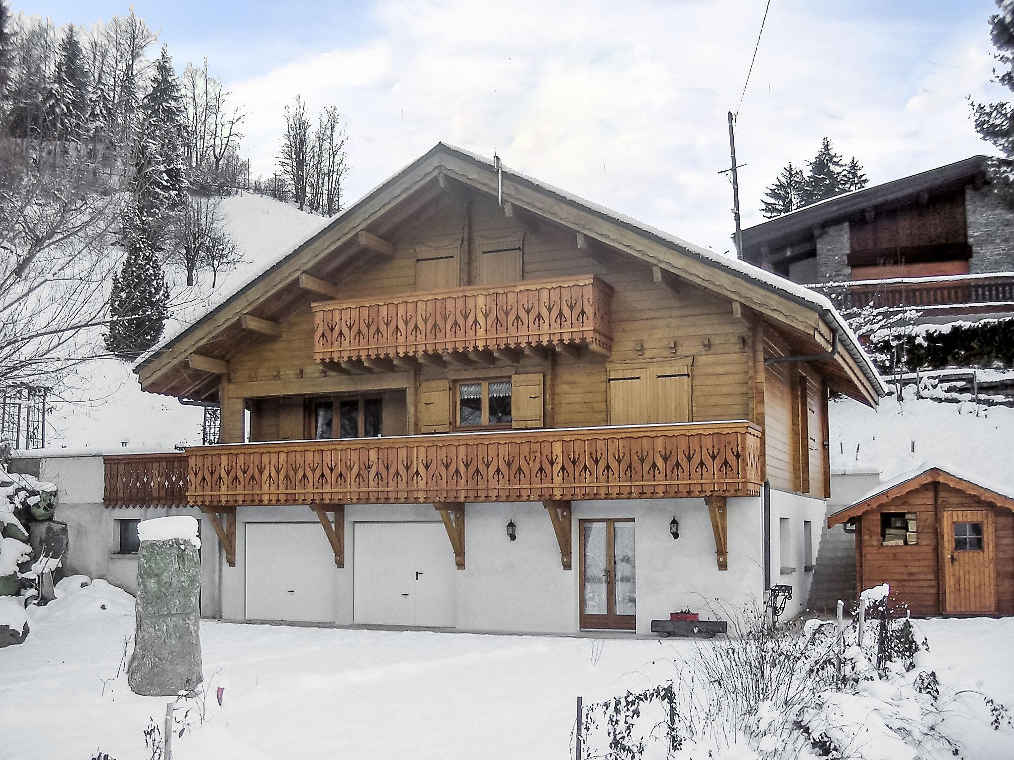 2-room apartment 45 m2, on the ground floor, south-east facing position. Living/dining room with 1 double sofabed (140 cm), TV and hi-fi system. Exit to the garden. 1 room with 1 french bed (140 cm). Open kitchen (oven, dishwasher, toaster, kettle, microwave, electric coffee machine, raclette grill). Shower, sep. WC. Oil heating. Terrace furniture. Very beautiful view of the mountains. Facilities: iron, hair dryer. Parking. Please note: non-smokers only. Smoke alarm.