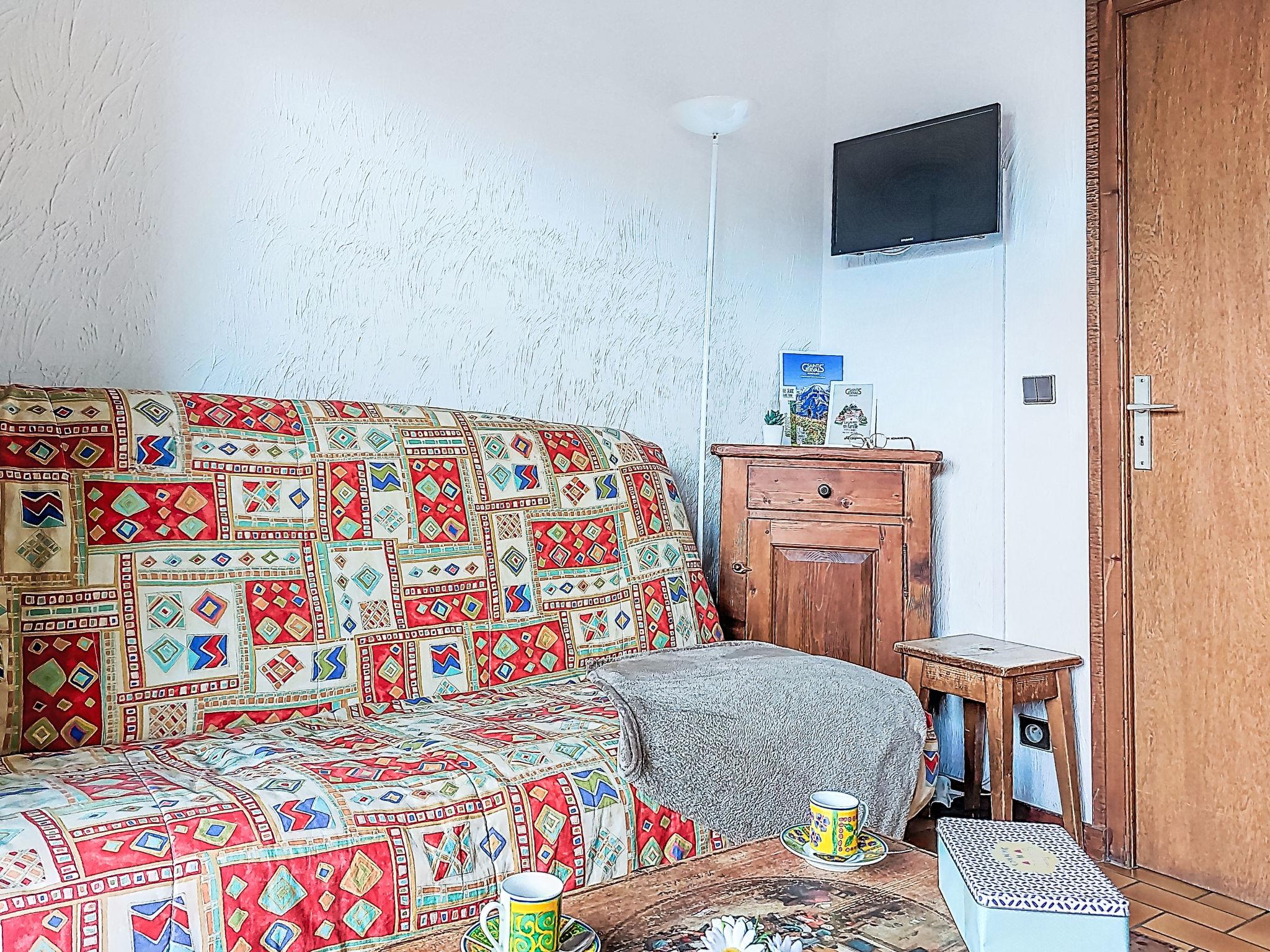 "Les Grets", 1-room studio 27 m2. Entrance hall with 1 x 2 bunk beds (80 cm, length 190 cm). Living/dining room with 1 sofabed (140 cm, length 190 cm), TV (flat screen). Exit to the balcony. Kitchenette (2 hot plates, toaster, kettle, microwave, electric coffee machine, raclette grill, fondue Set (cheese)). Bath/WC. Electric heating. Small balcony 3 m2, east facing position. Balcony furniture. Very beautiful view of the mountains and the swimming pool. Facilities: Internet (WiFi, extra). Please note: maximum 1 small pet/ dog allowed. TV only FR. Smoke alarm, no lift. Offer by a private individual according to Art. 155, IV of CGI.